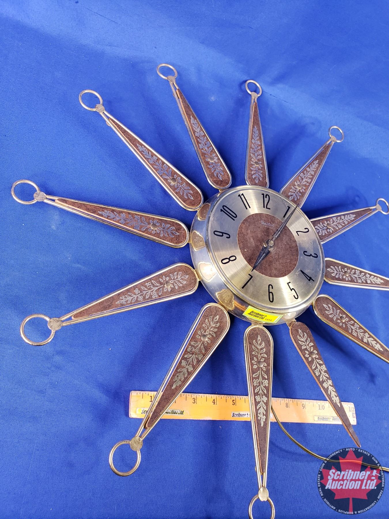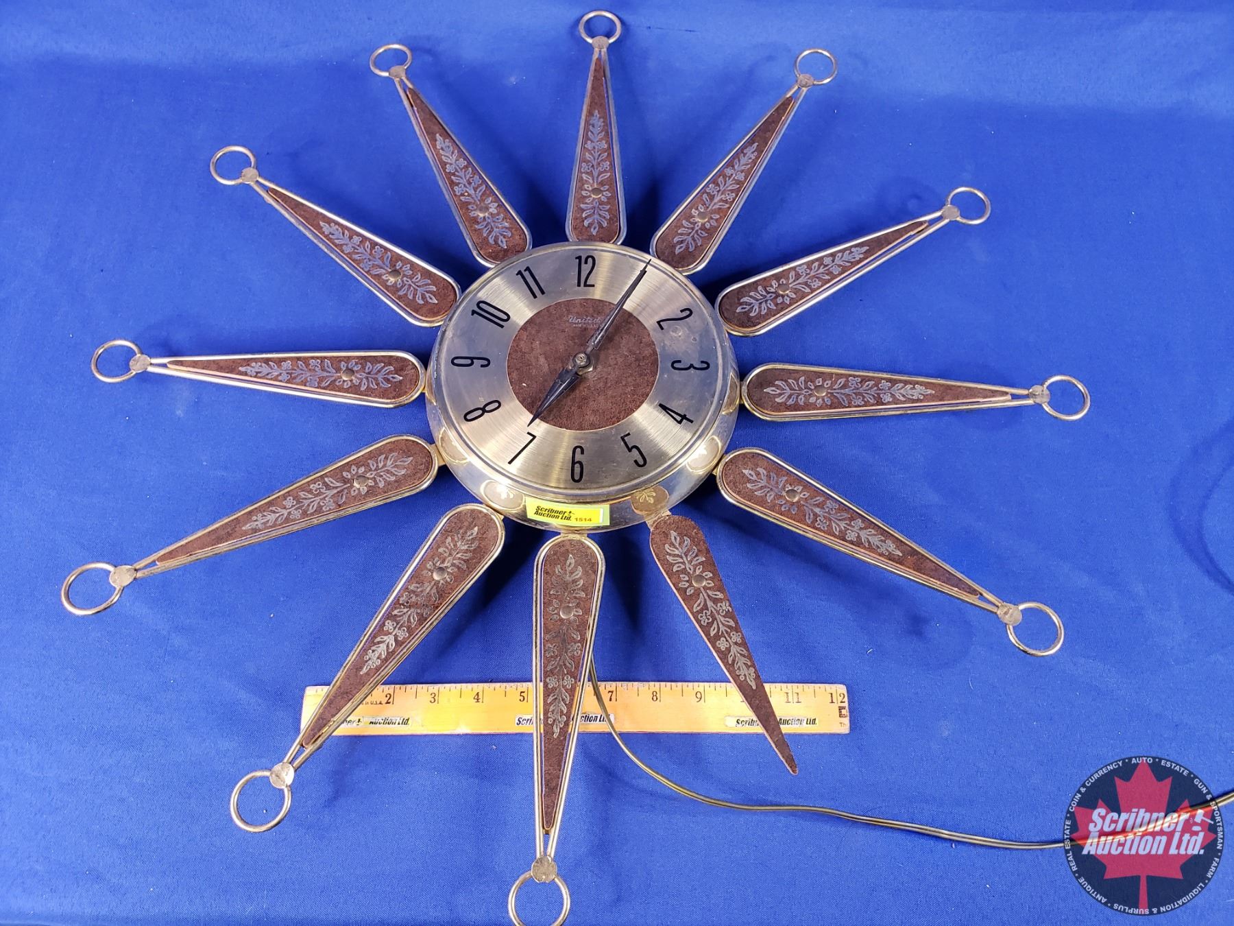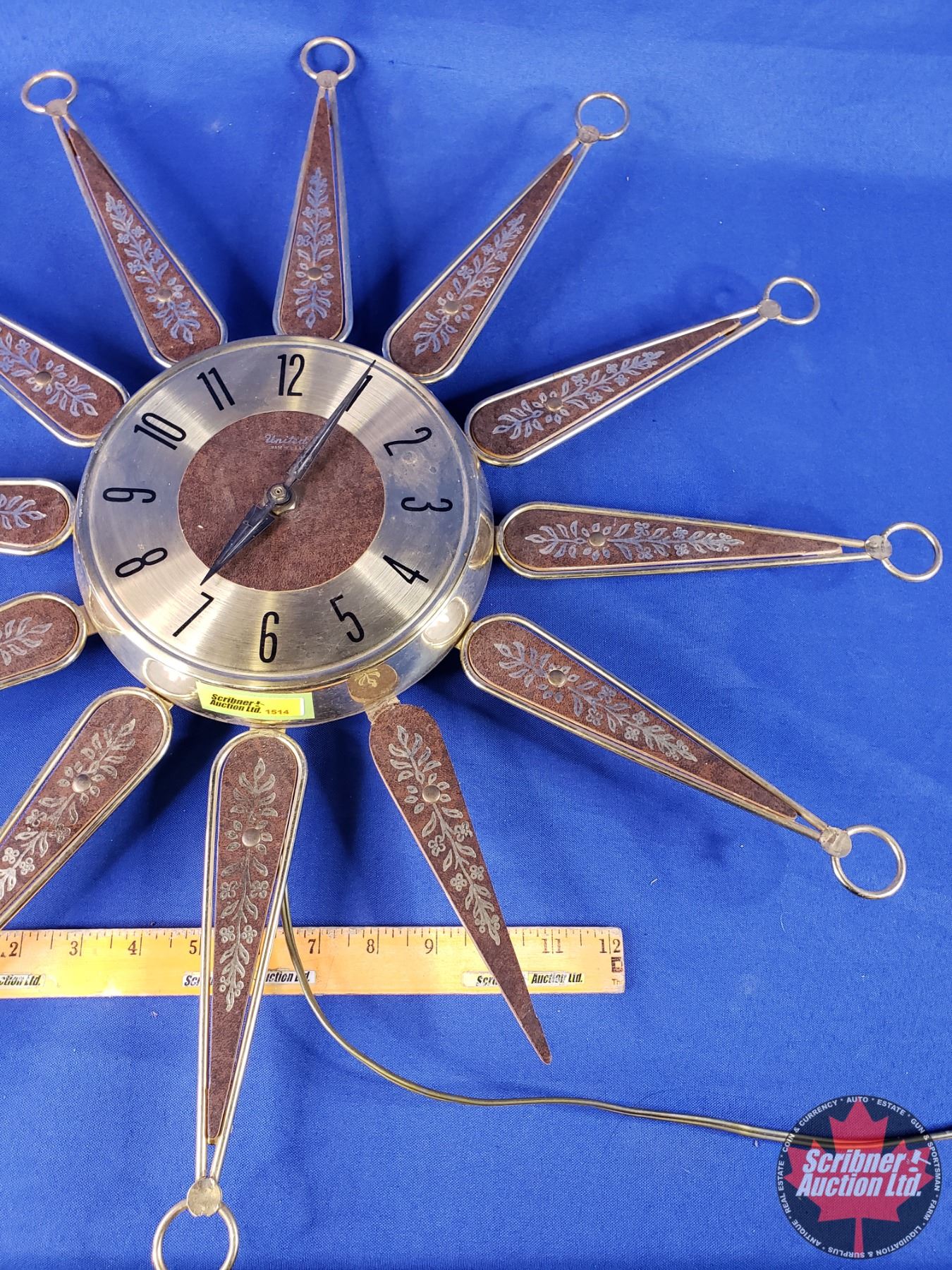 Mid Century Wall Clock "United" (Missing Trim on One Arm) (25") (SEE PICS!)