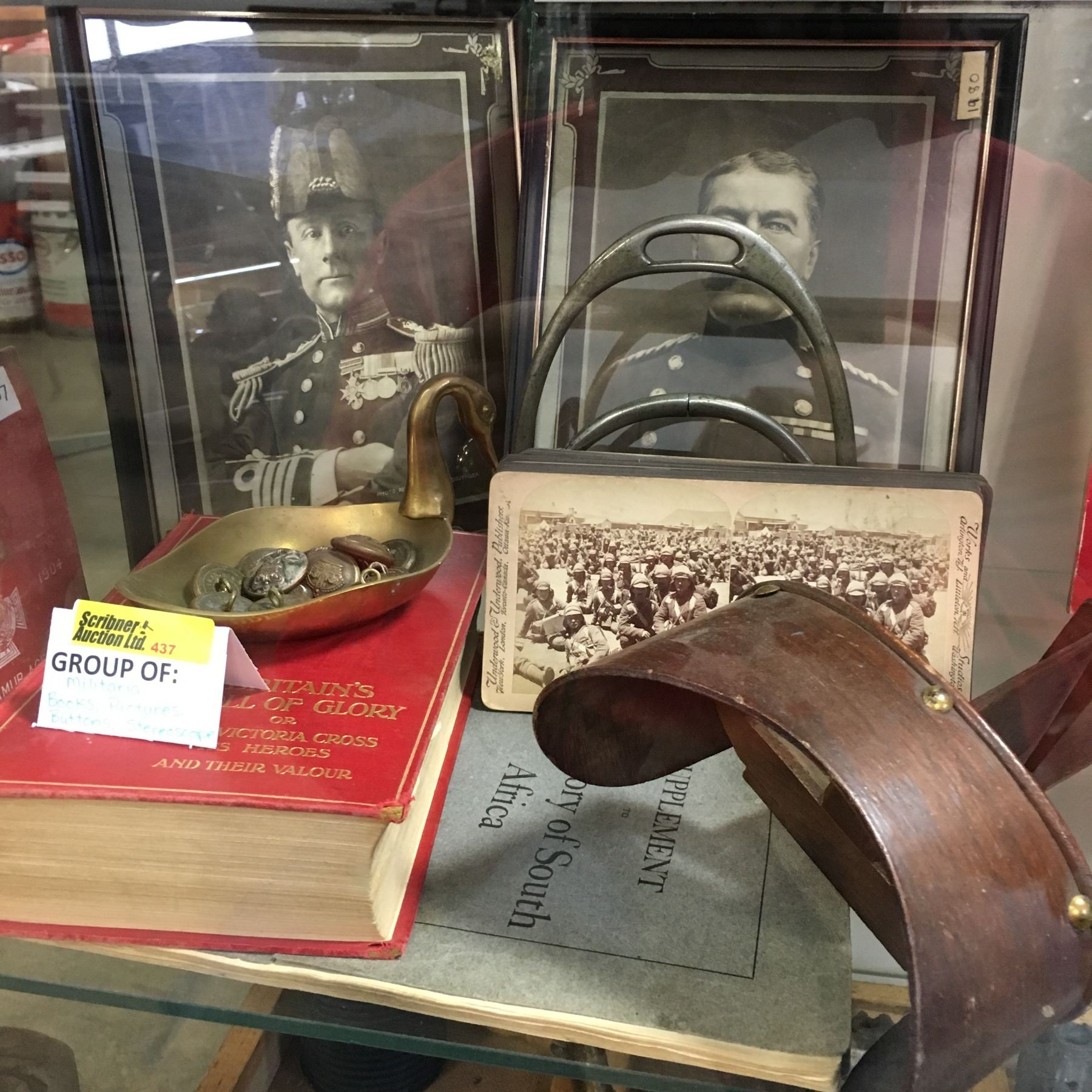 Militaria: Boer War Buttons, Books (3), Stereoscope & War Slides, & Framed Prints "Admiral & Field
