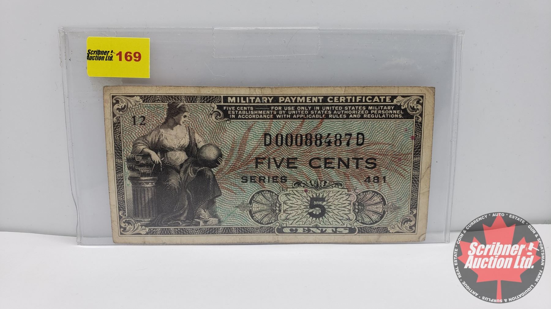 Military Payment Certificate - Five Cents "Series 481" S/N#D00088487D