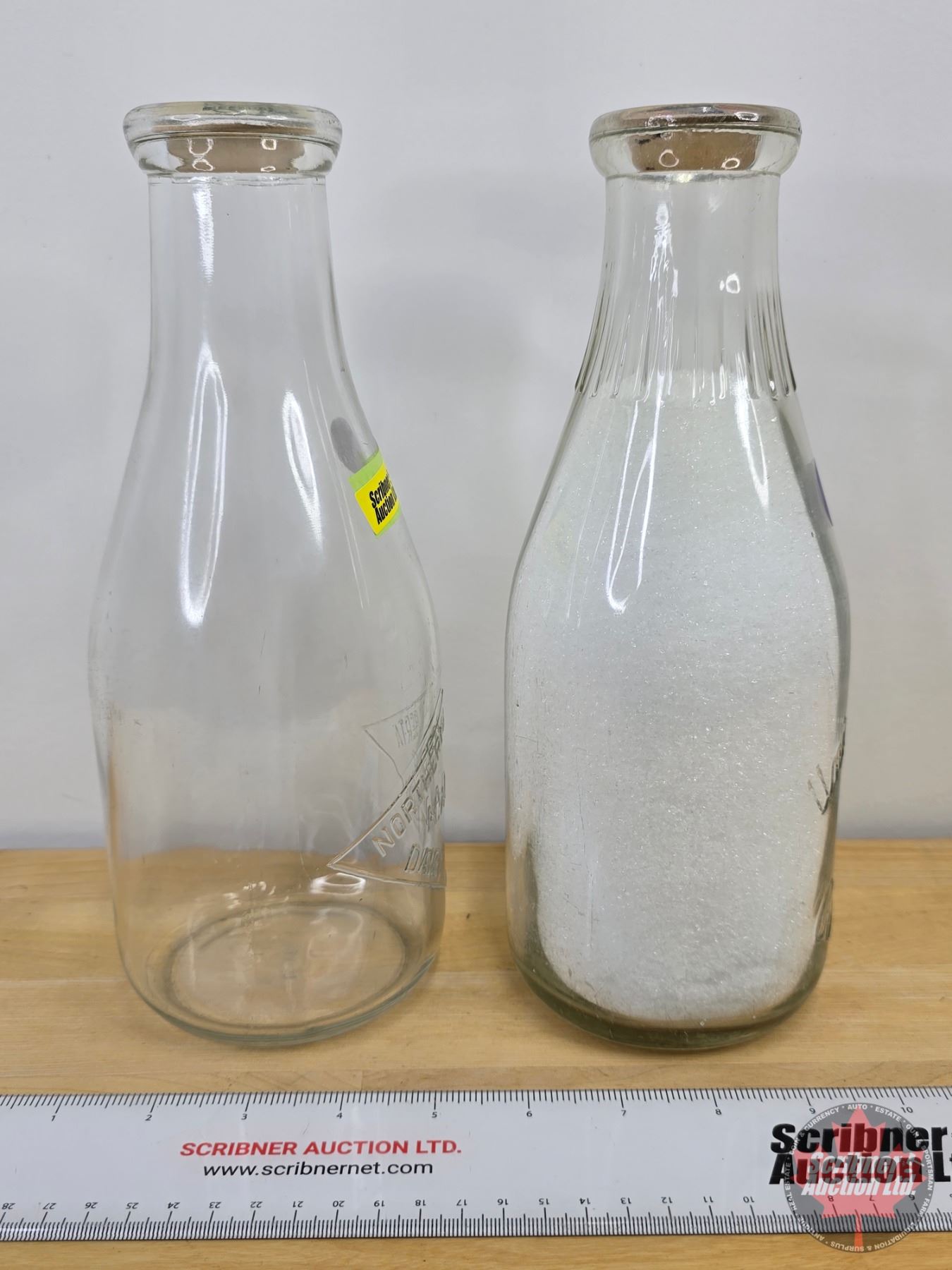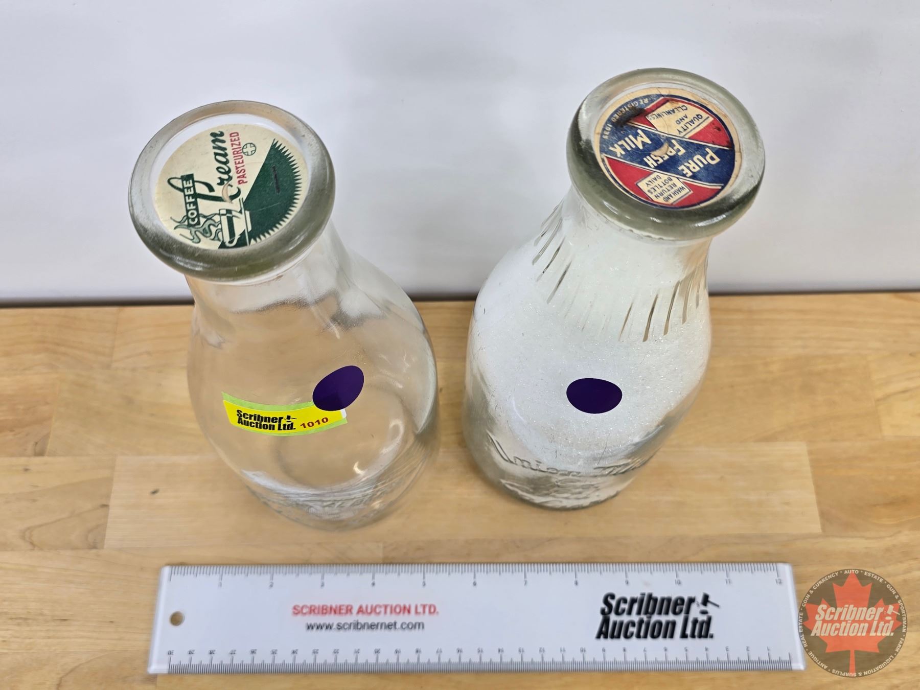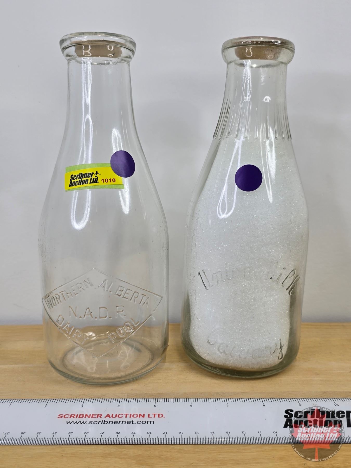 Milk Bottles (2): Northern Alberta Dairy Pool NADP & Union Milk Calgary (Both : 10-1/4"H) (SEE PICS!)
