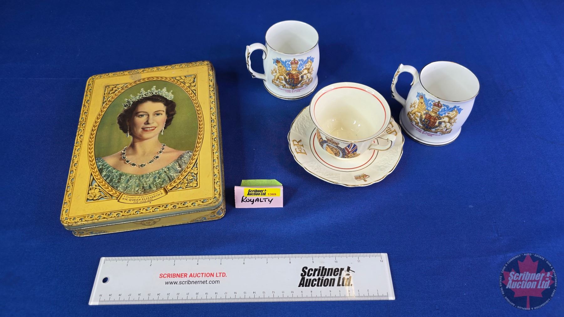 Monarch/Royalty "Queen Elizabeth II" Collector Group : Tin; Mugs (2) ; Cup/Saucer