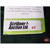 THURSDAY & FRIDAY & SATURDAY & SUNDAY: Purchases will be packaged up after the auction and shipped via Canada Post or PUROLATOR (for dangerous goods) within 12-16 days of the auction sale. Please contact us via email (scribner.auction@gmail.com) or call 780-842-5666 prior to the auction if you wish to arrange alternate shipping. Shipping & Handling Charges will be charged to your credit card at the time of shipping. Most packages shipped via Canada Post come with $100 insurance. Please review Canada Post Terms & Conditions for Canada Post Insurance Policies. Scribner Auction Ltd. will not be responsible for any damage or breakage to any item for any reason (shipping, handling or otherwise). If you wish to arrange for Pick Up at our Wainwright, AB location, please call our office to make an appointment 780-842-5666. You MUST schedule an appointment (NO DROP INS PLEASE!)