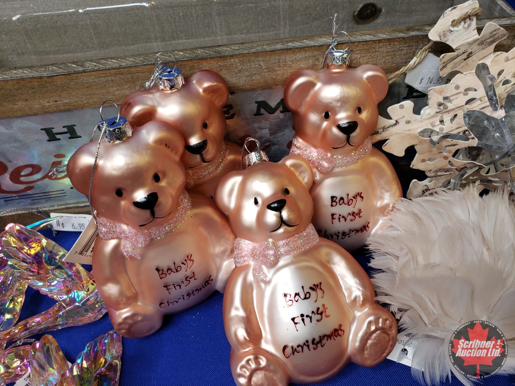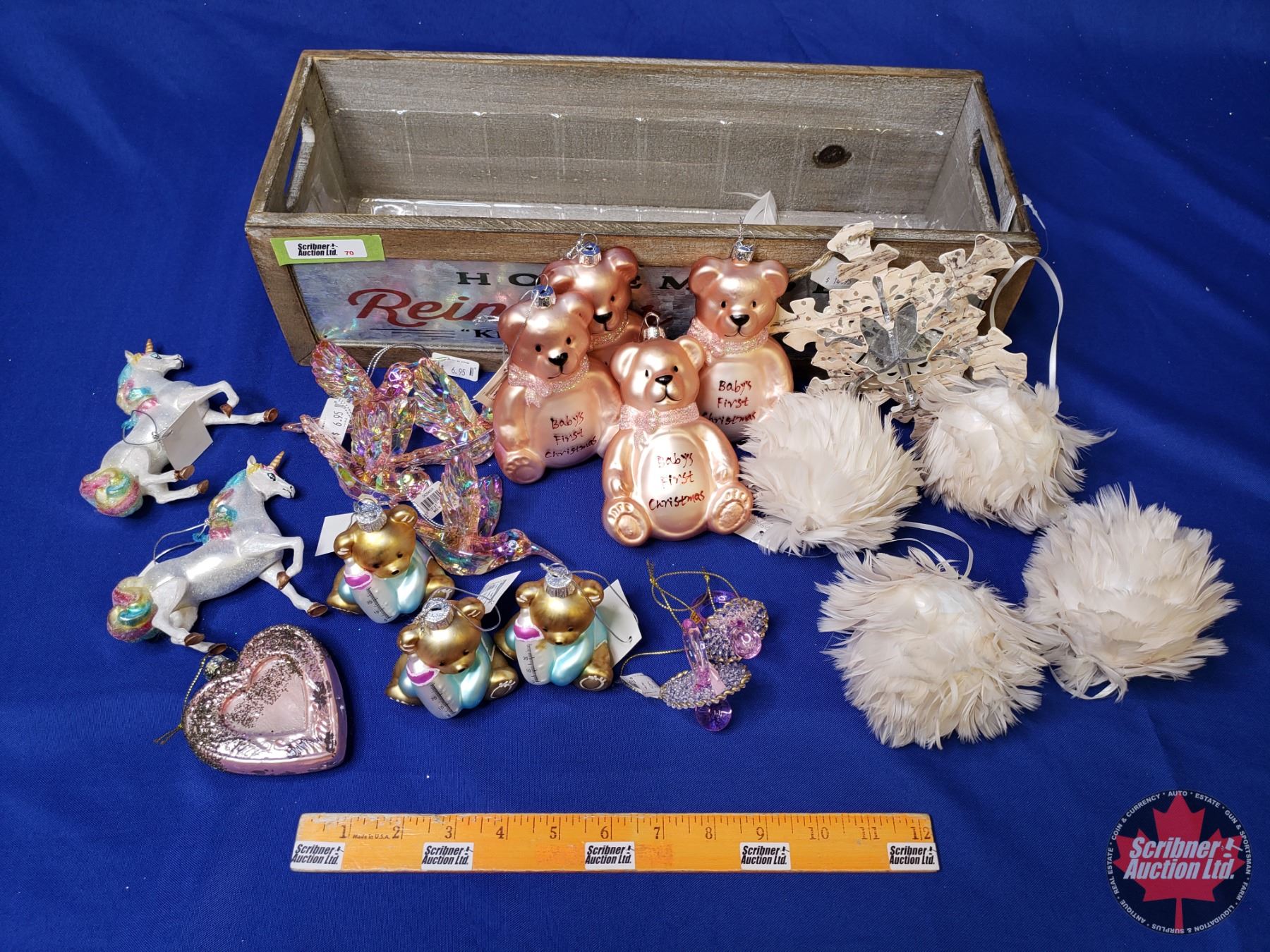NEW STOCK: Combo Décor Group ~ Wood Box "HomeMade Reindeer Treats"; Baby's First Christmas Ornaments; Variety Ornaments (21) (Box Measures: 5"H x 18"W x 7"D) (SEE PICS!)
