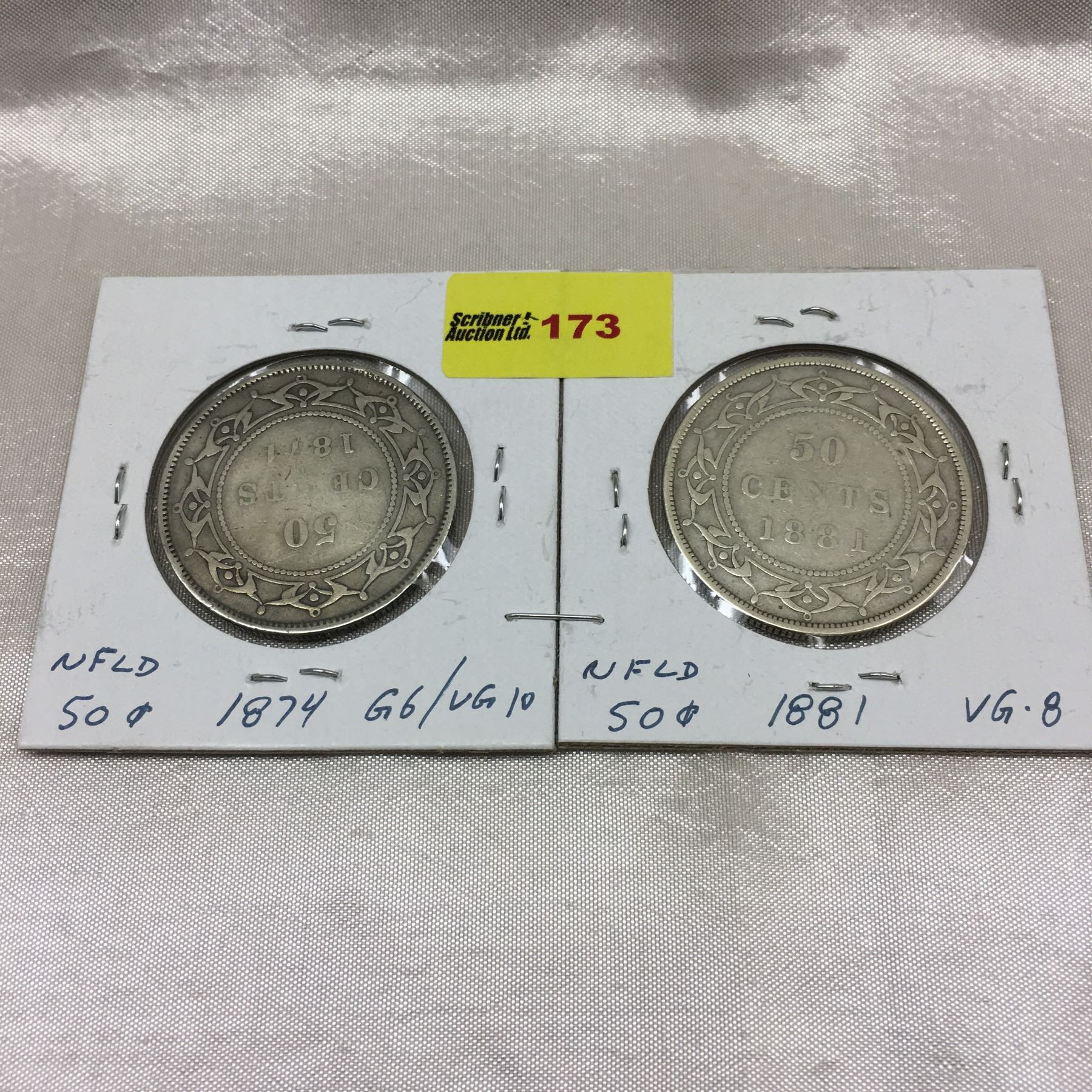 NFLD Fifty Cent - Strip of 2: 1874; 1881