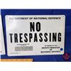 "NO TRESPASSING" Single Side Tin Signs (2) "Department of National Defense" 1986 (9"H x 13"W) (SEE PICS!)