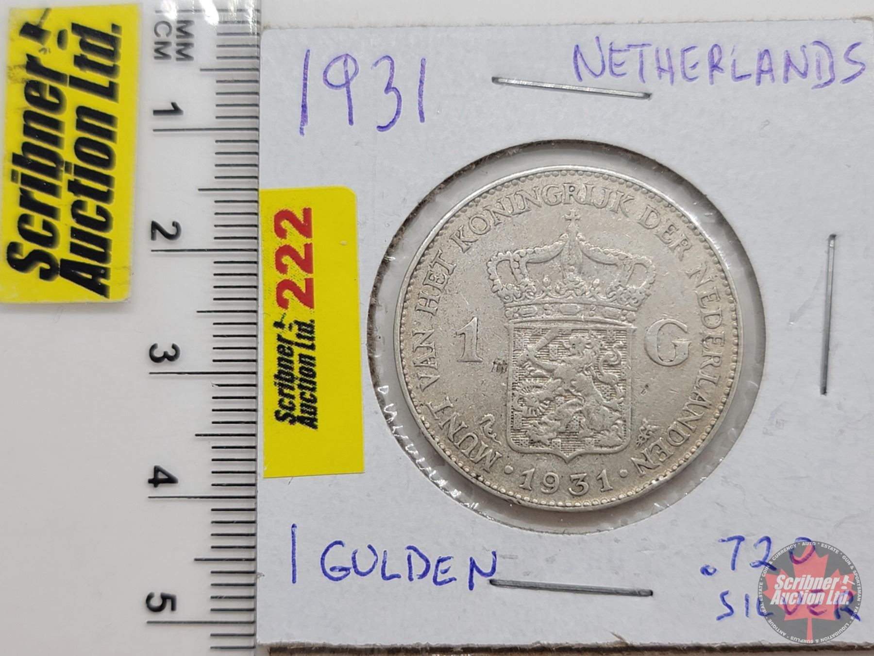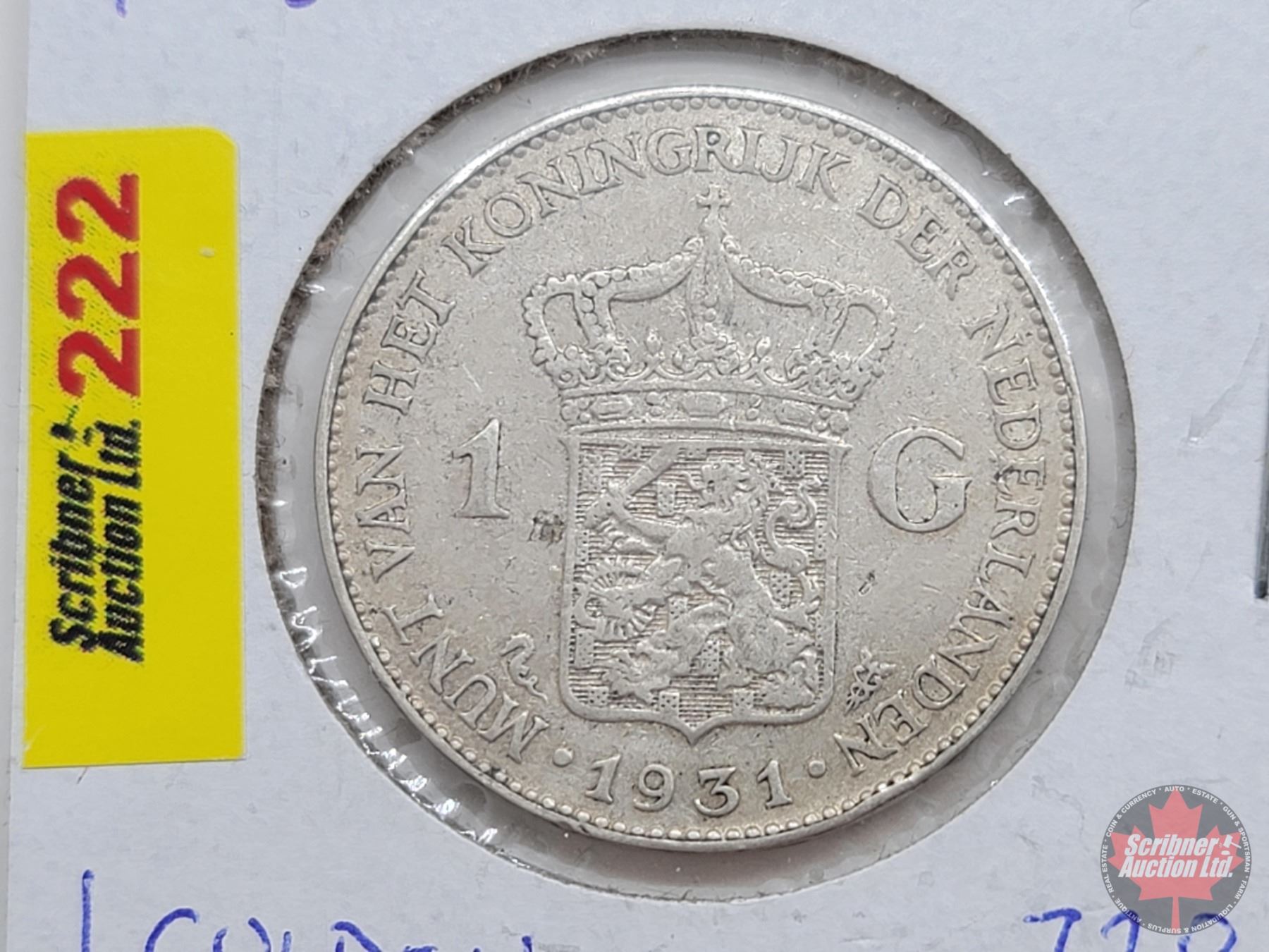 Netherlands 1931 : One Gulden (Composition .720 Silver) (Non-Magnetic) (SEE PICS!)