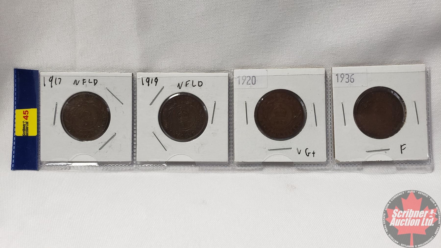 Newfoundland Large Cent - Strip of 4: 1917; 1919; 1920; 1936