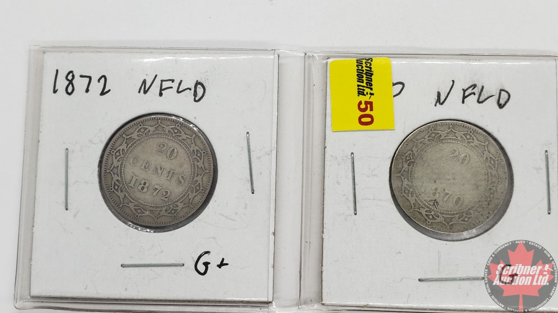 Newfoundland Twenty Cent - Strip of 2: 1870; 1872