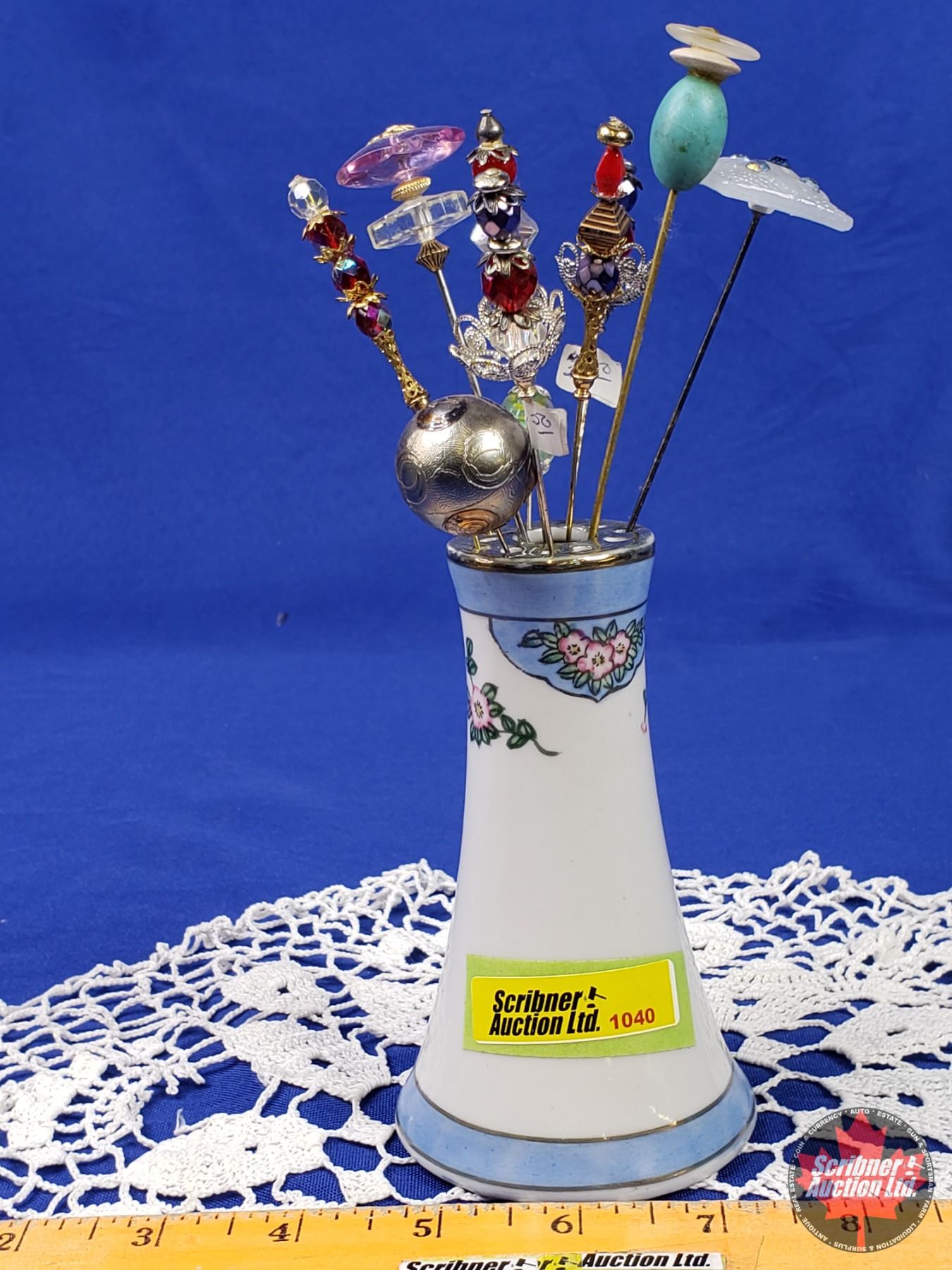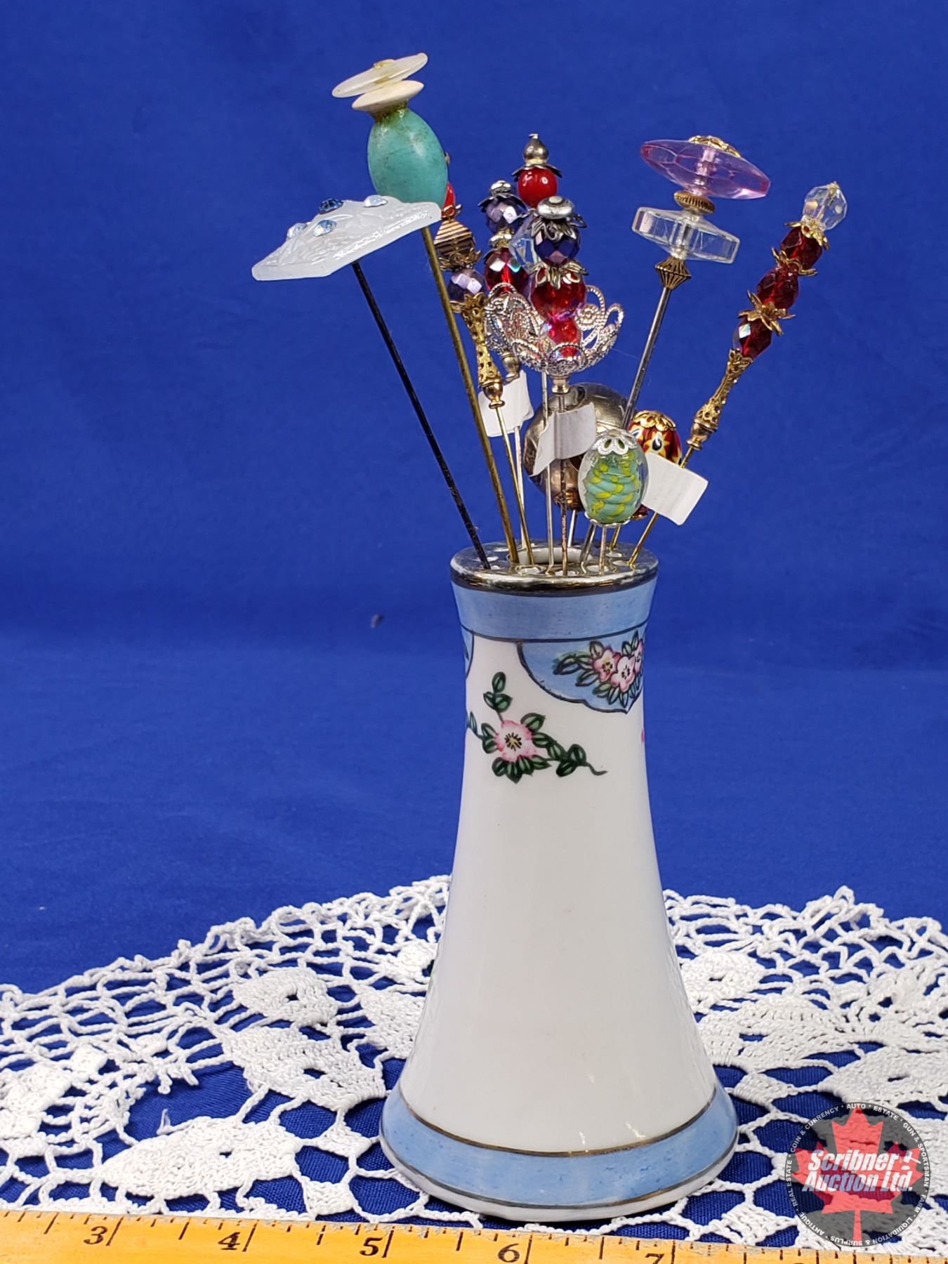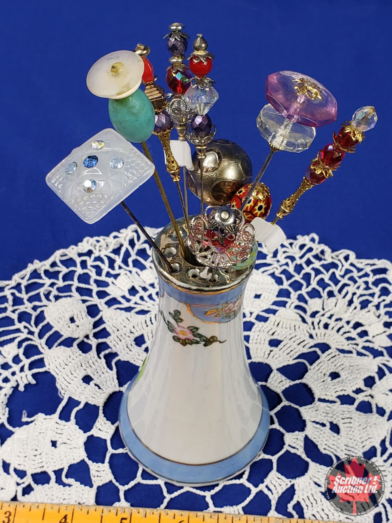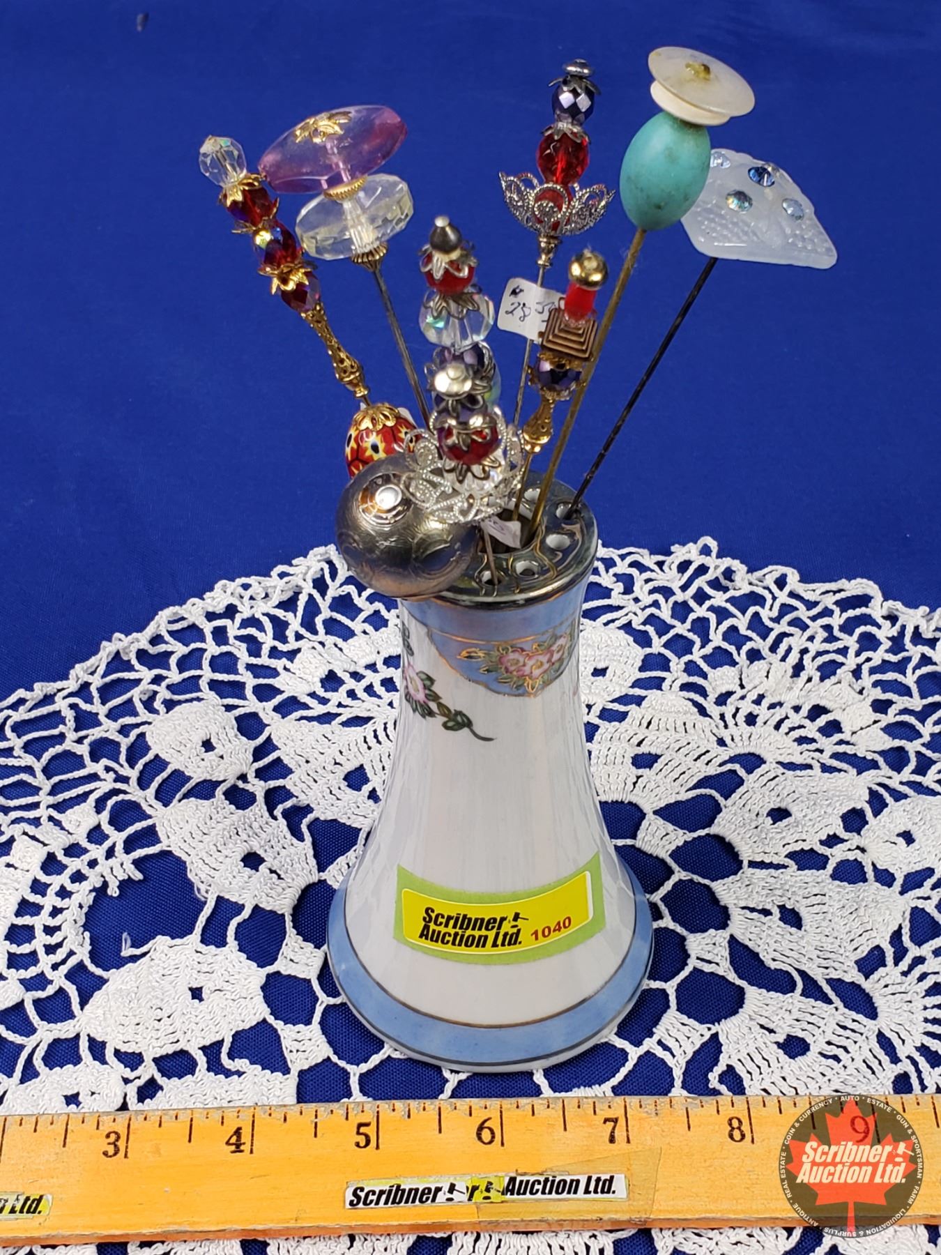 "Nippon" Bud Vase/Hat Pin Holder with Hat Pin Selection (Vase 5"H x 3"Dia) (SEE PICS!)