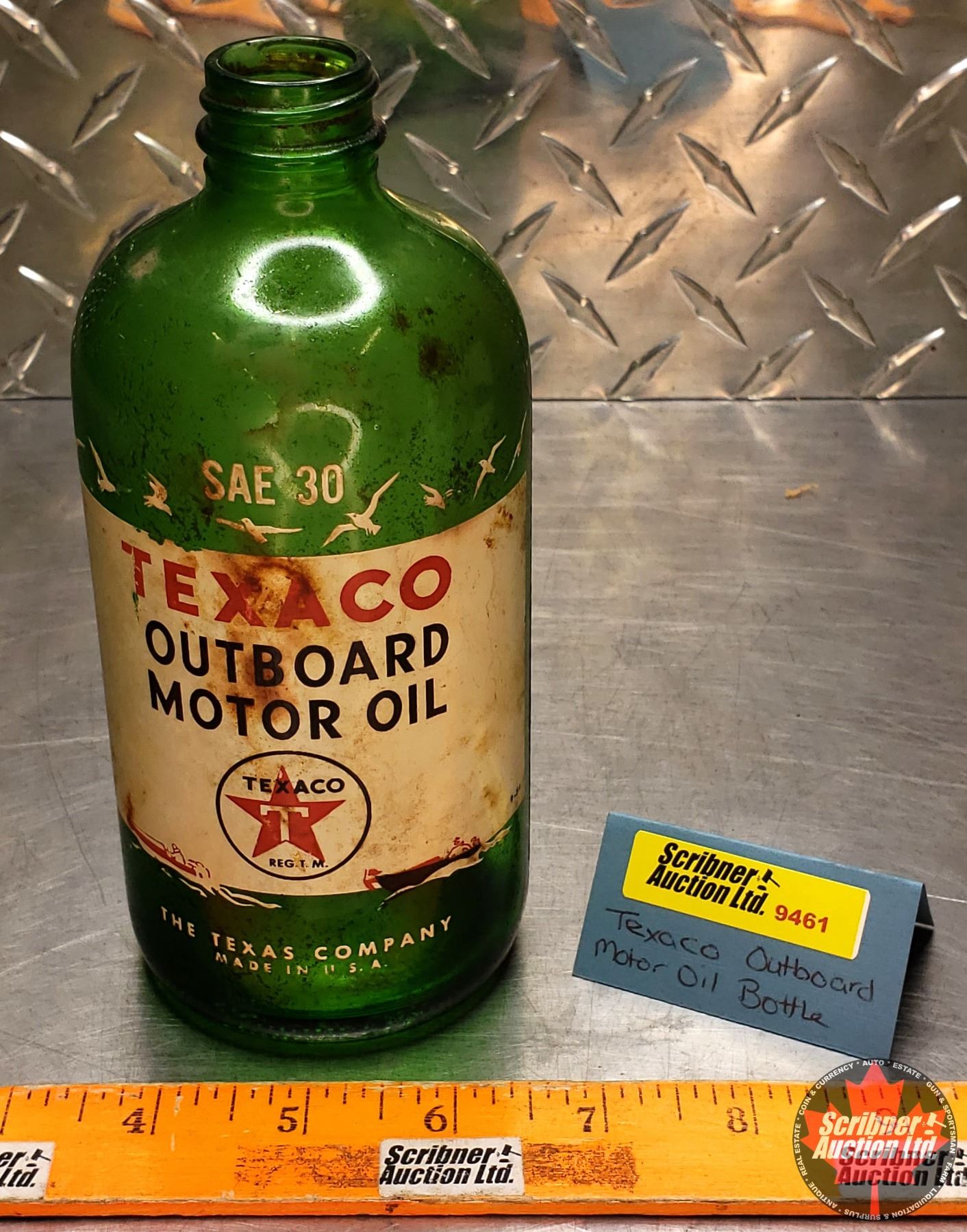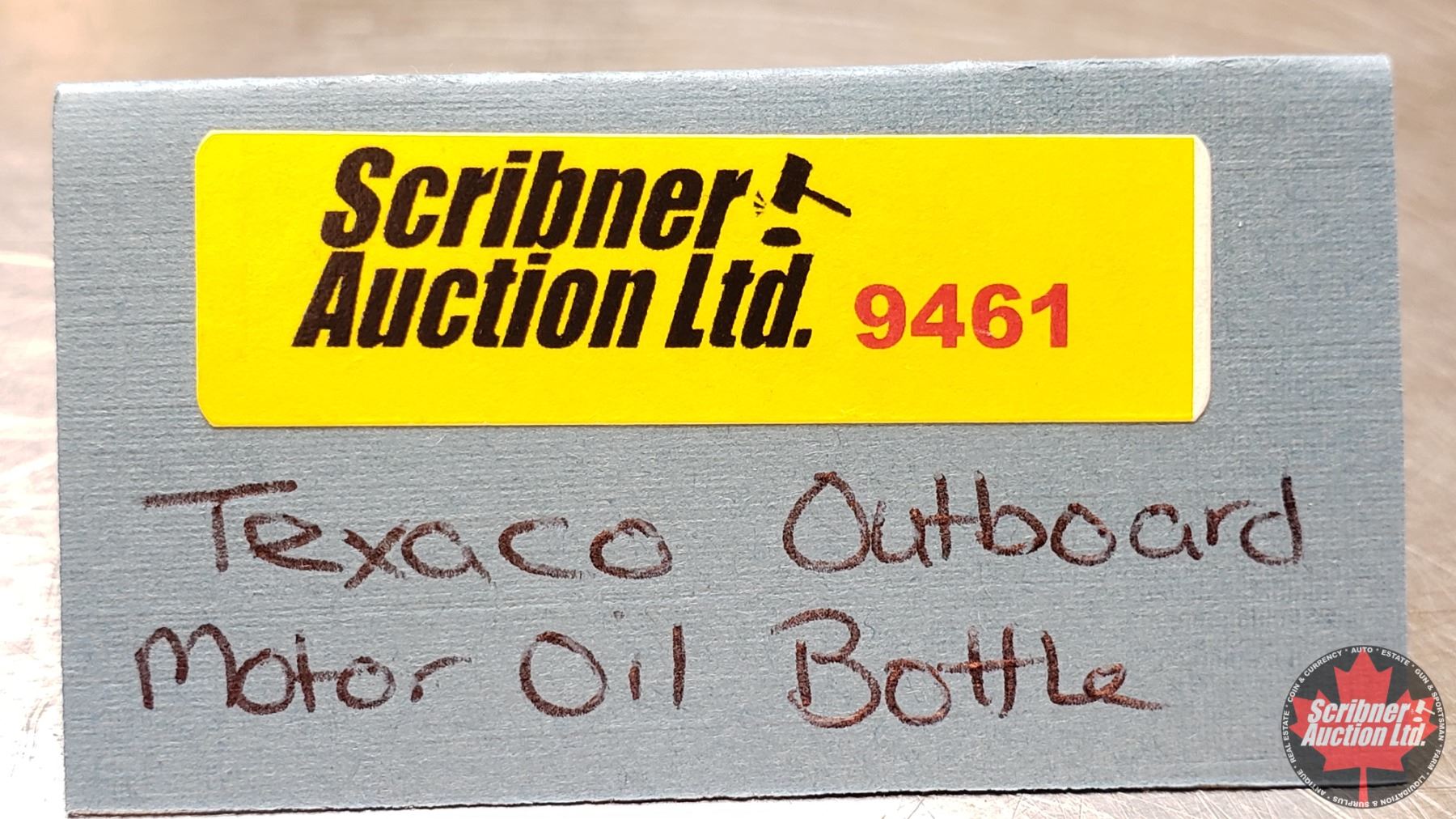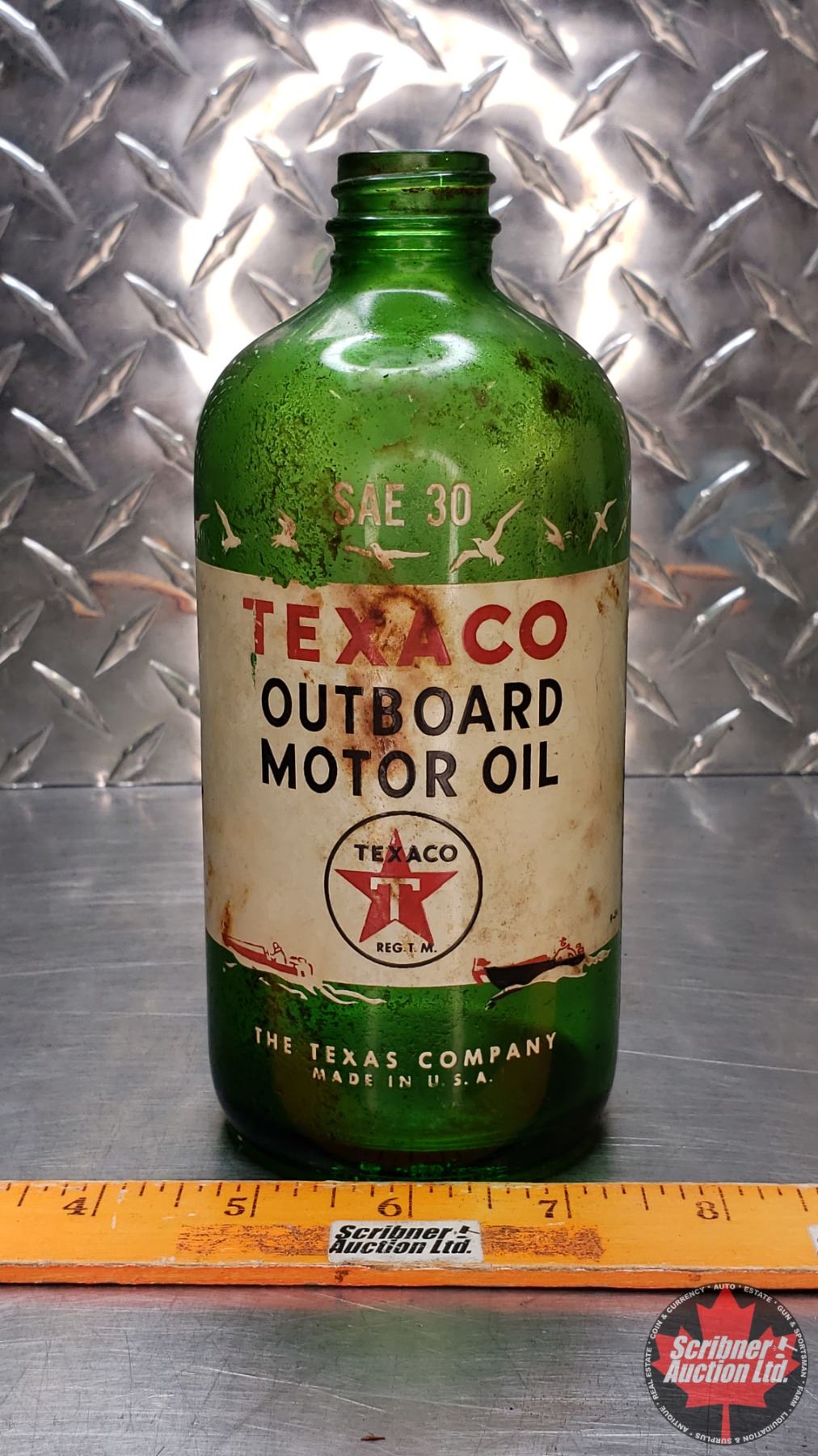 OIL BOTTLE : Texaco Outboard Motor Oil SAE 30 c.1950's (7"H) (SEE PICS!)