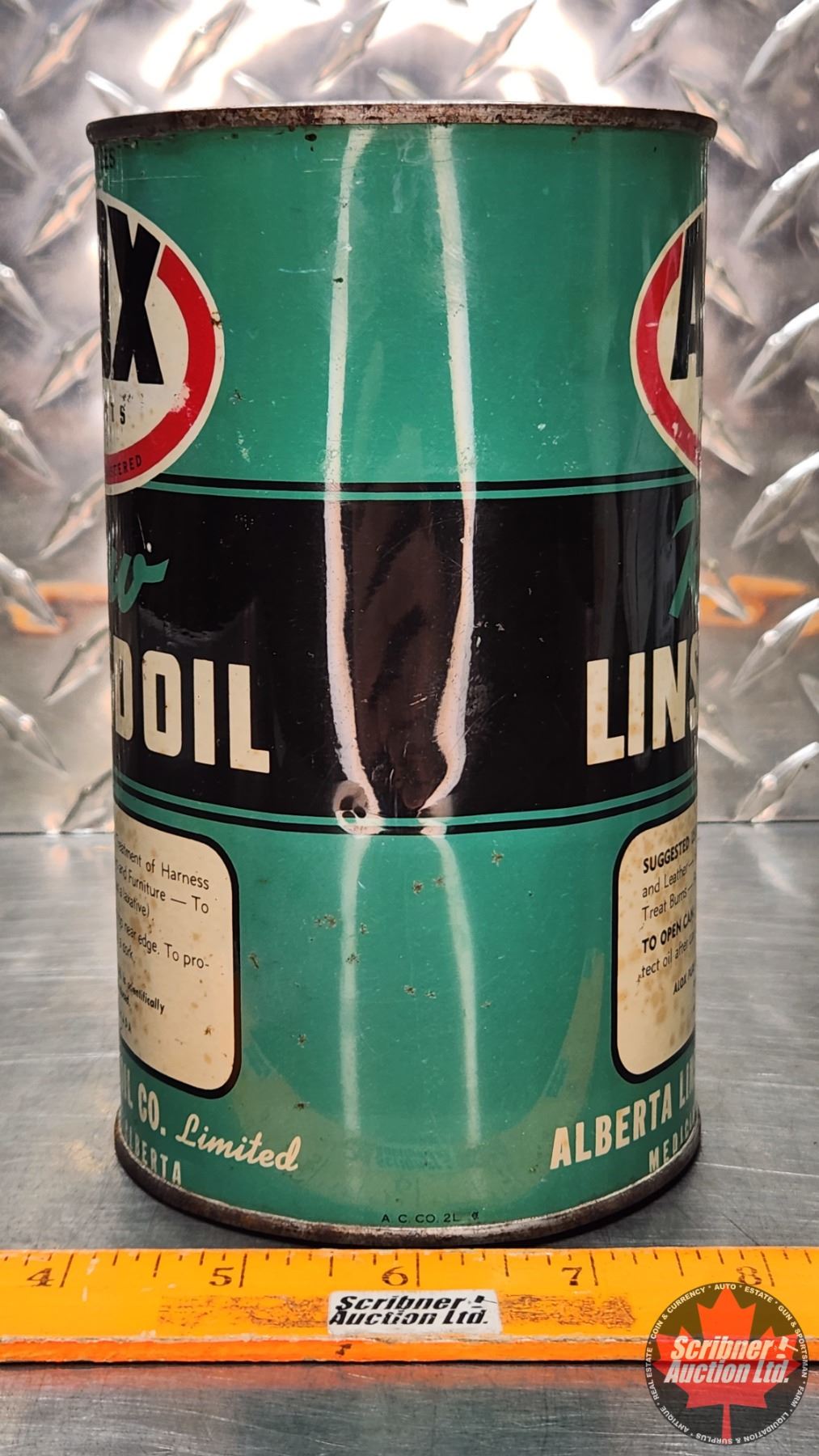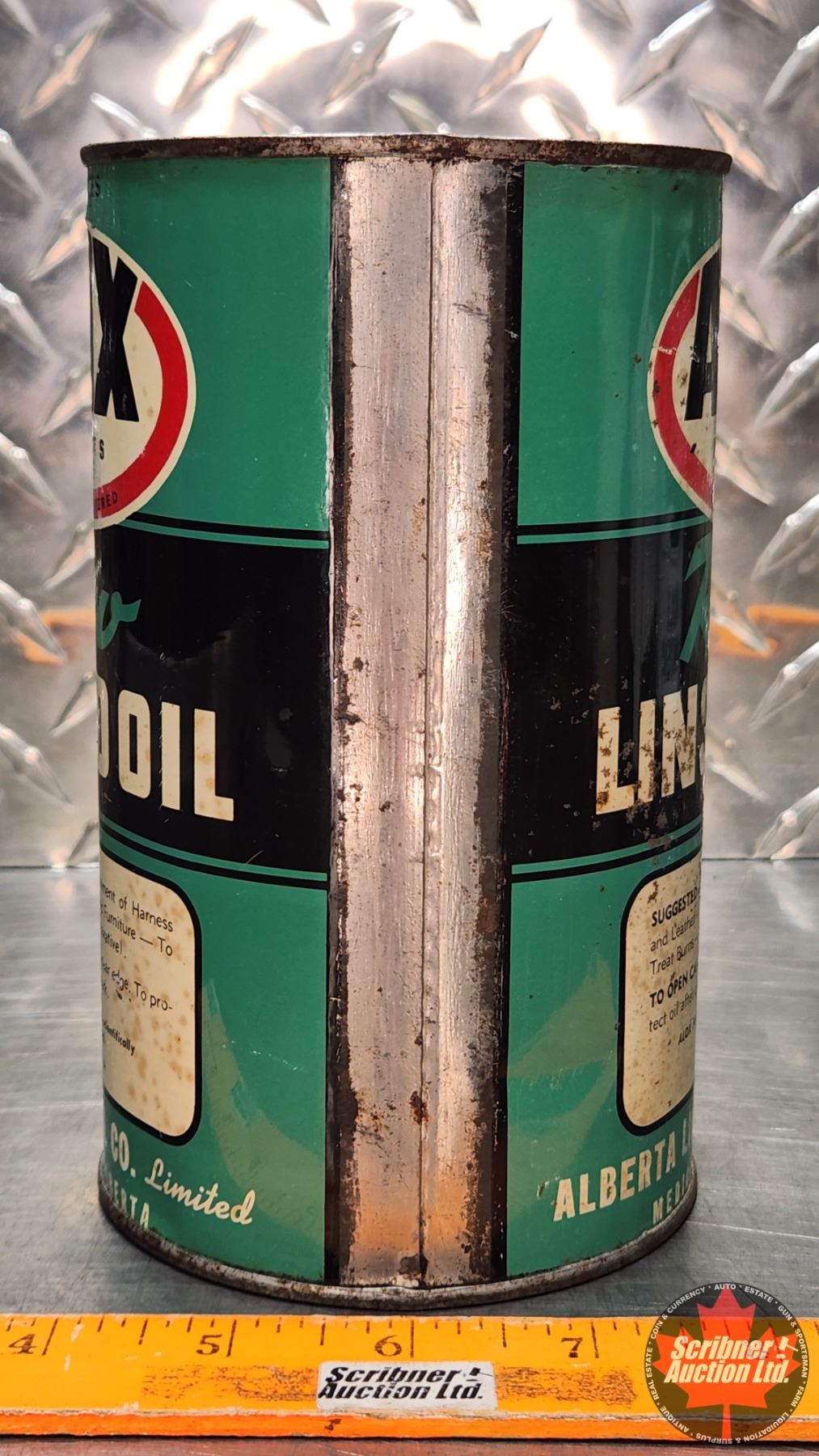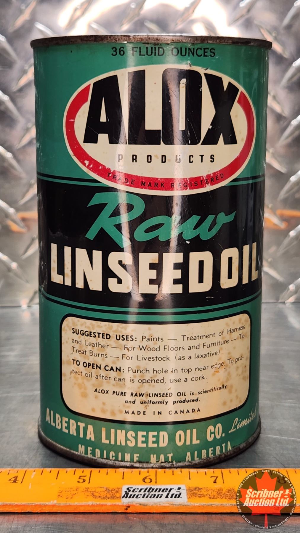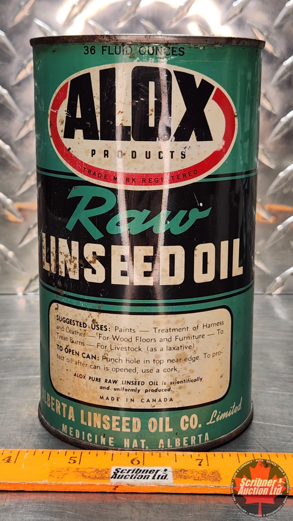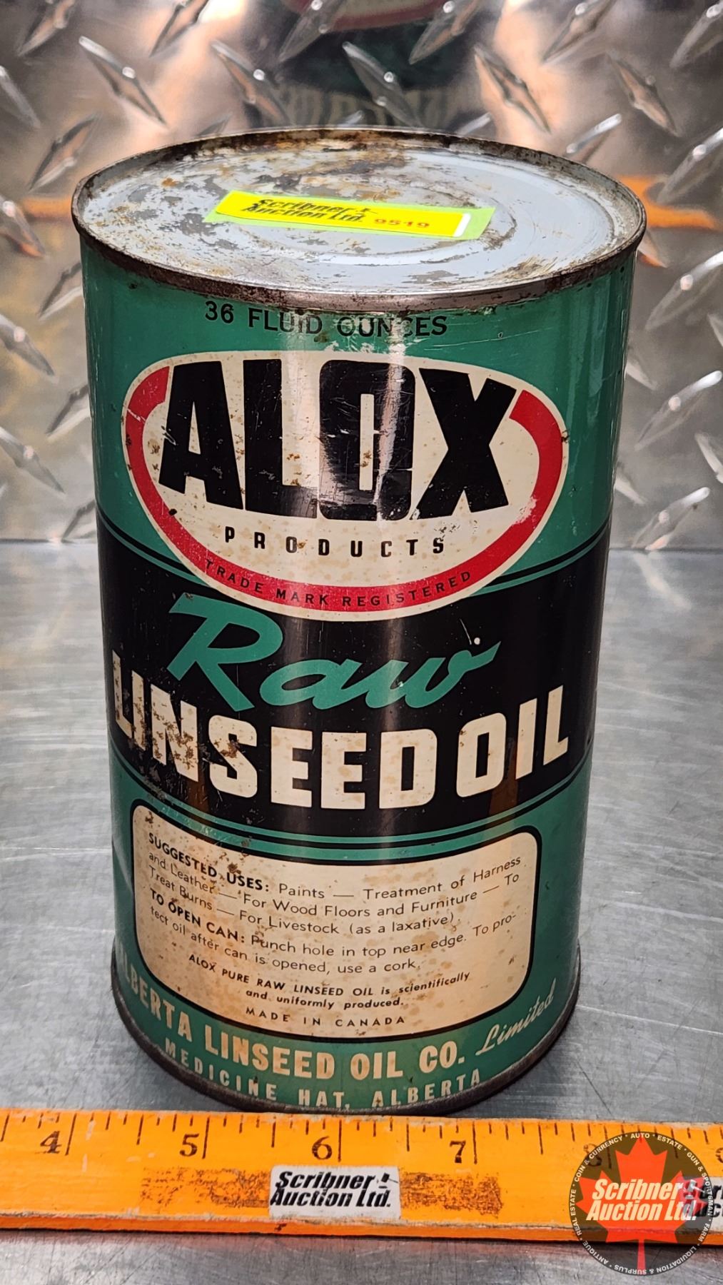 OIL TIN : ALOX Raw Linseed Oil ( 6-3/4"H x 4"Dia) (SEE PICS!)