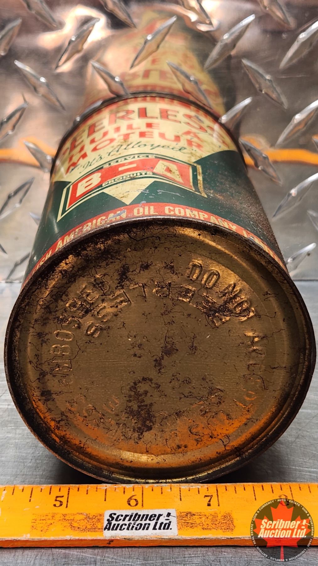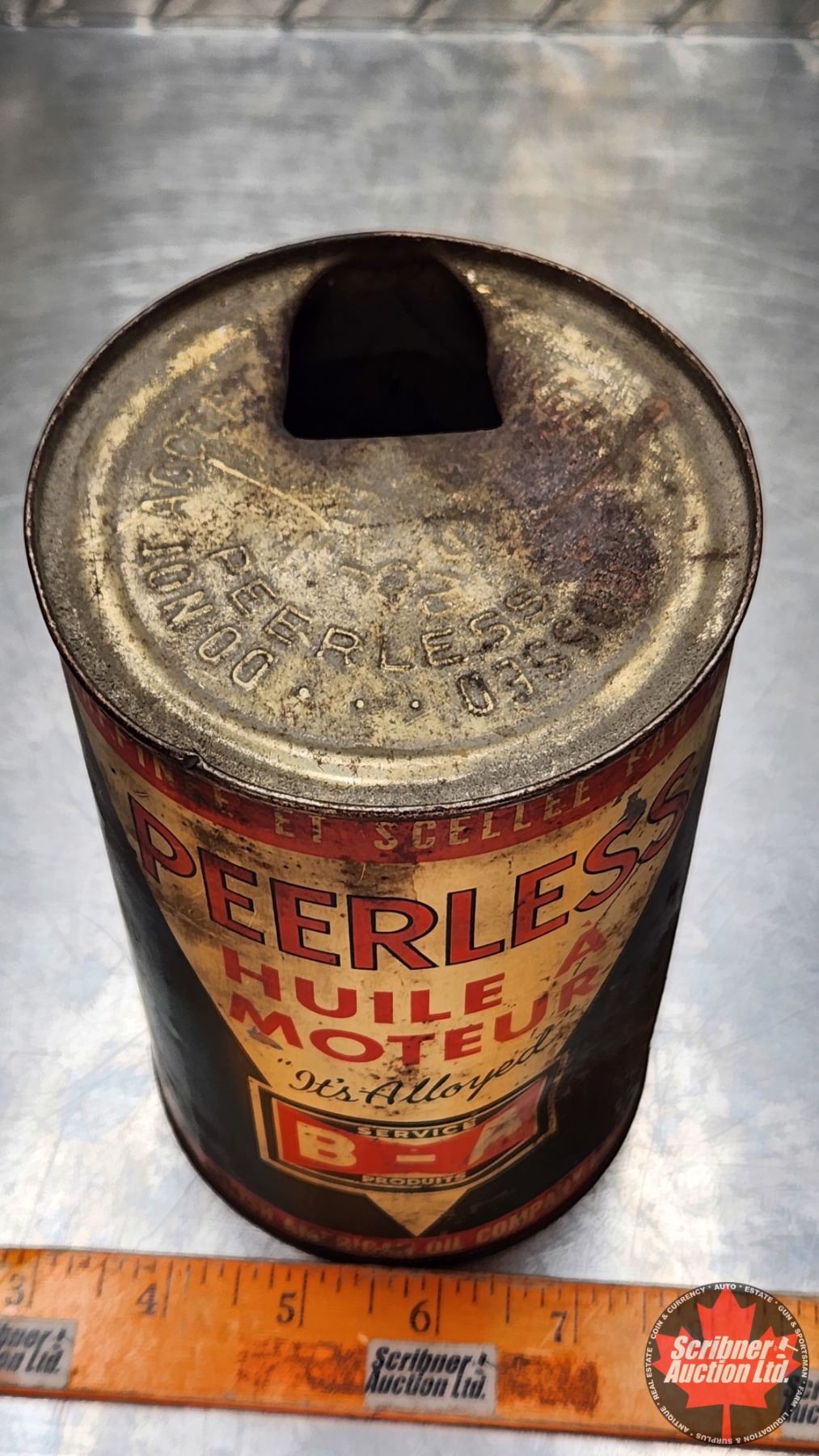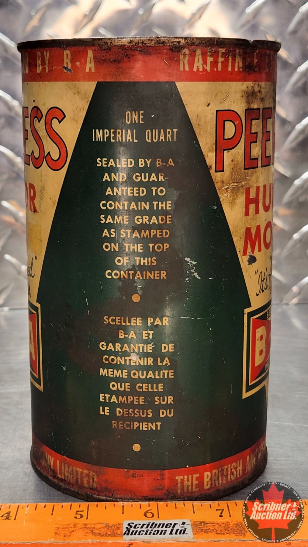 OIL TIN : B/A (Bowtie) Peerless Motor Oil "It's Alloyed" (6-3/4"H x 4"Dia) (SEE PICS!)