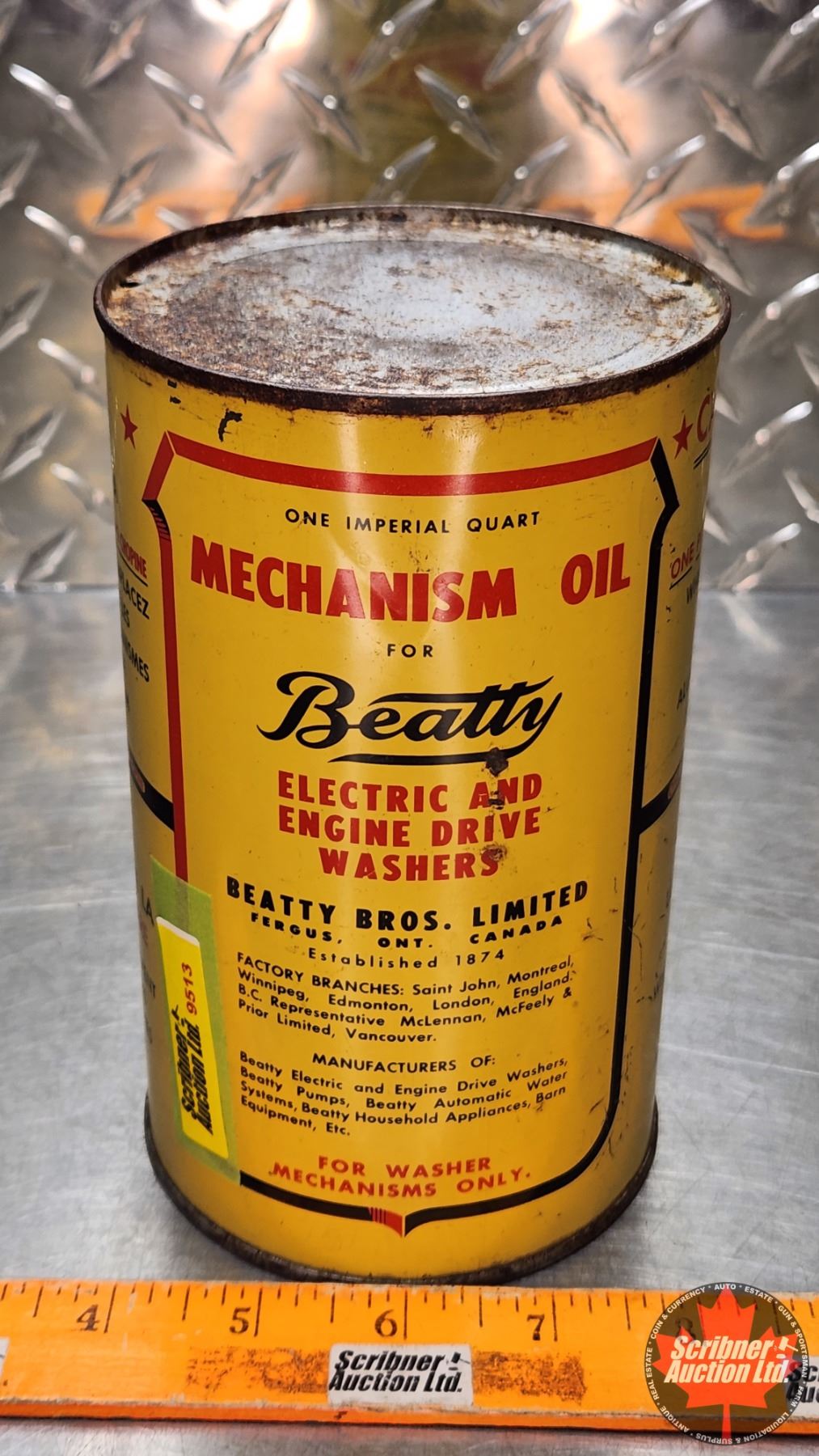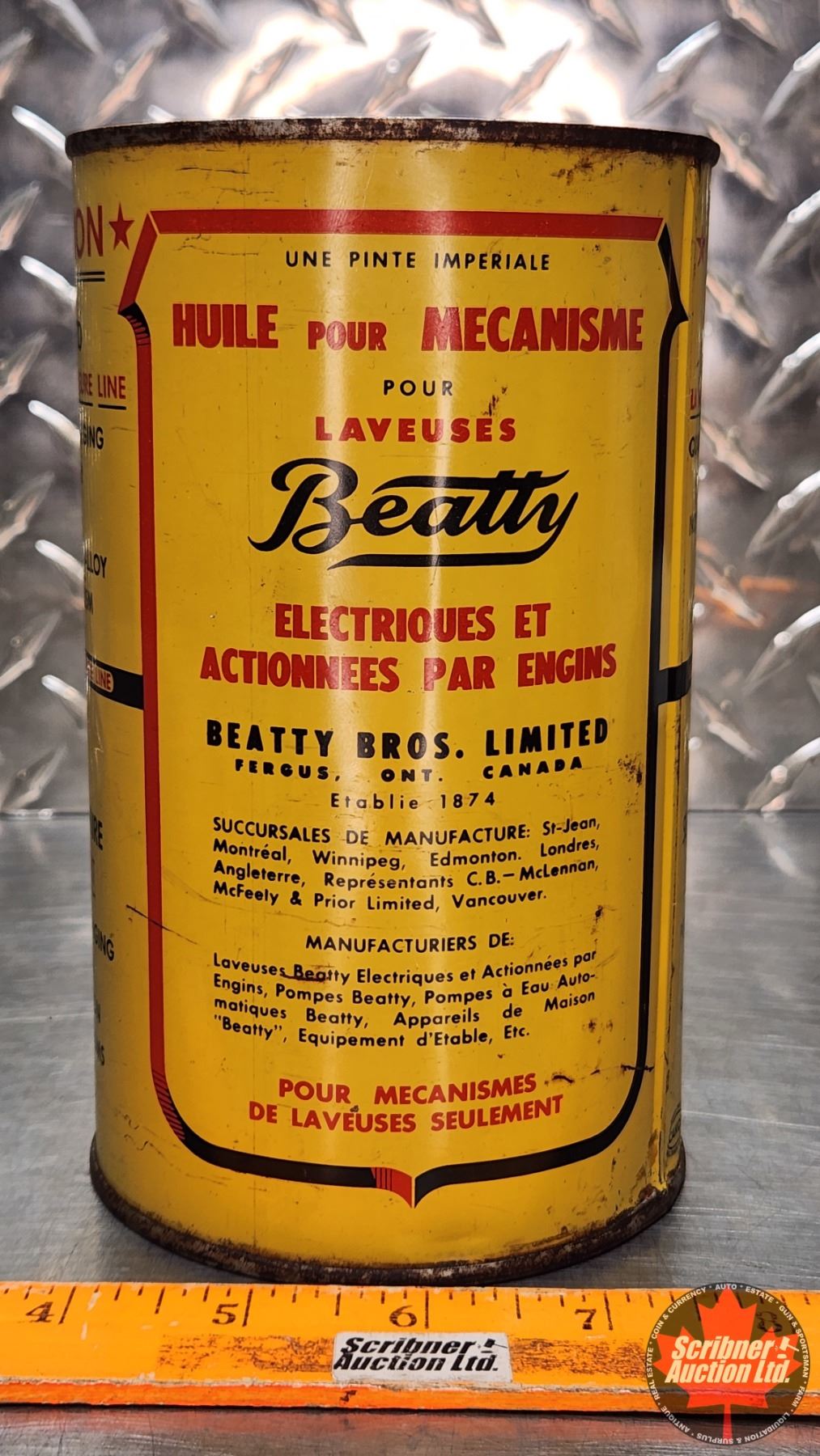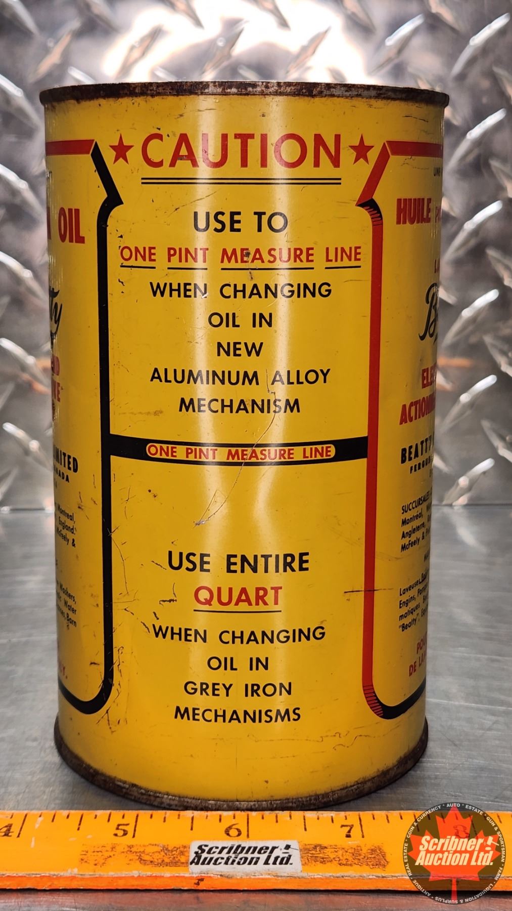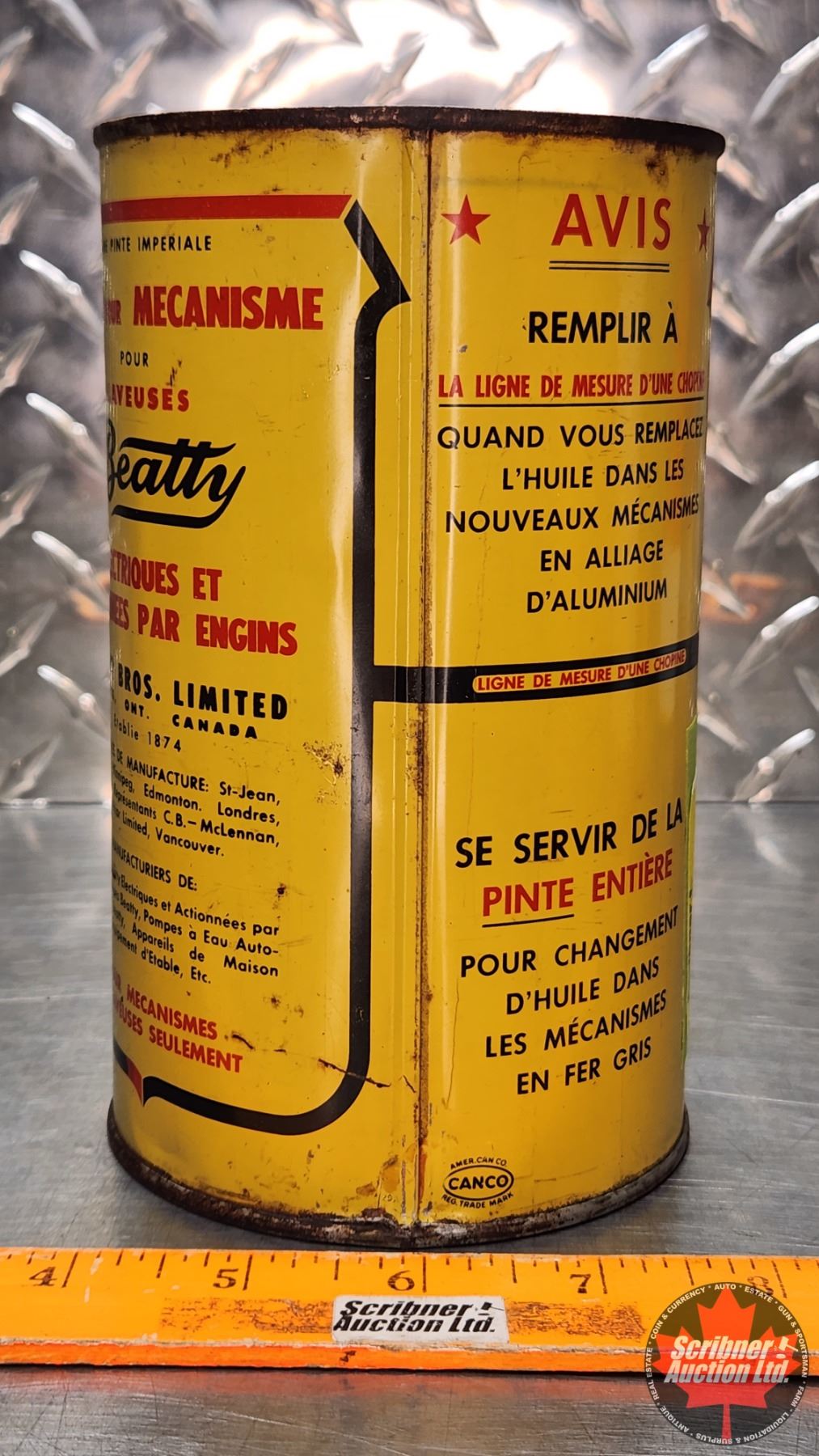 OIL TIN : Beatty Mechanism Oil for Beatty Electric and Engine Drive Washers (6-3/4"H x 4"Dia) (SEE PICS!)