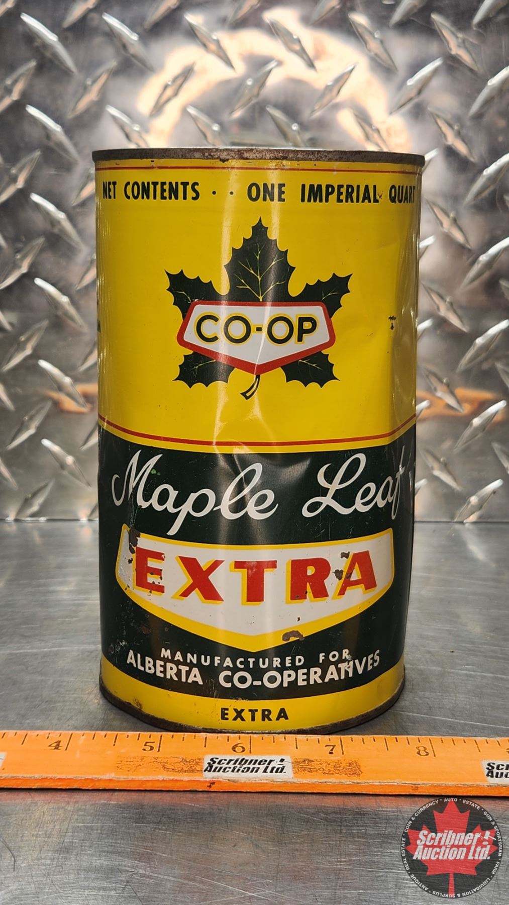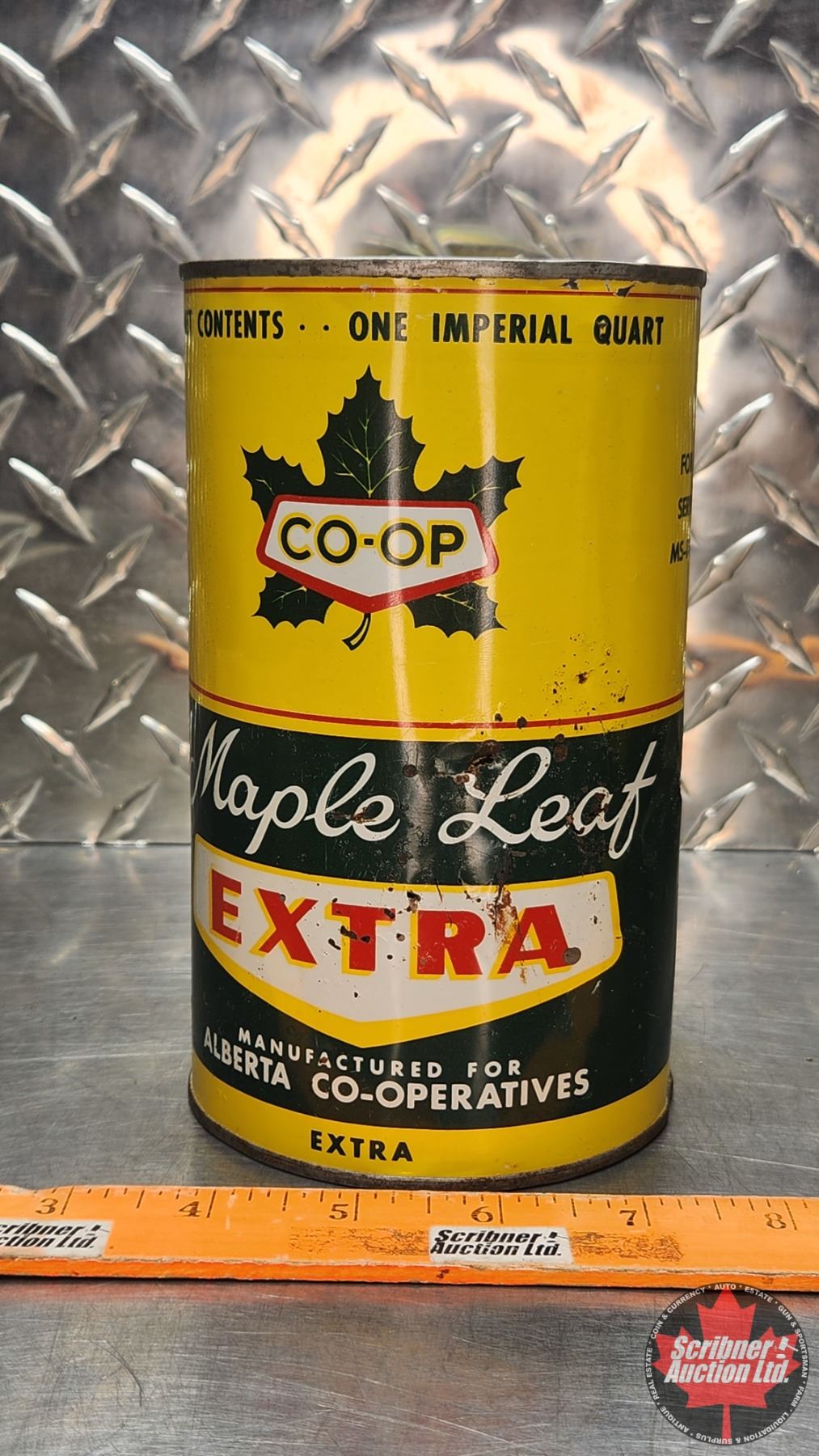 OIL TIN : CO-OP Maple Leaf Extra (6-3/4"H x 4"Dia) (SEE PICS!)