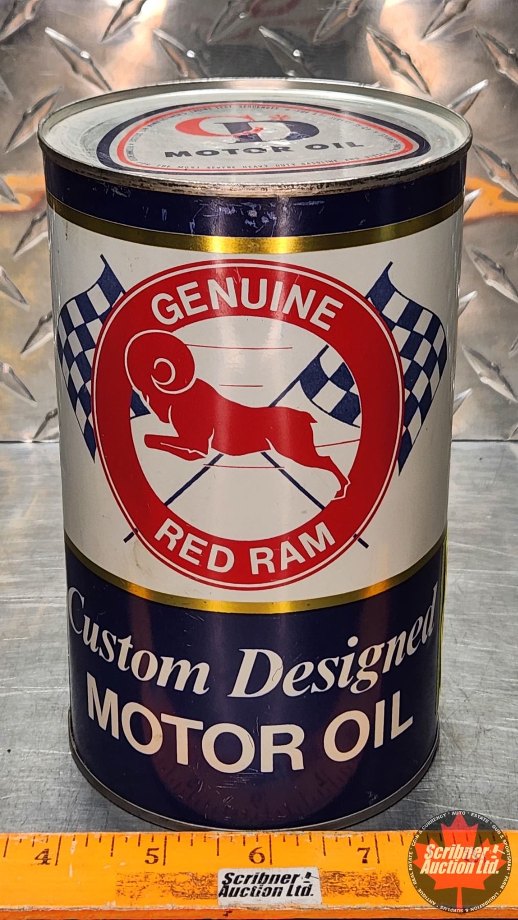 OIL TIN : Genuine Red Ram Motor Oil (Full) (6-1/2"H x 4"Dia) (SEE PICS!)