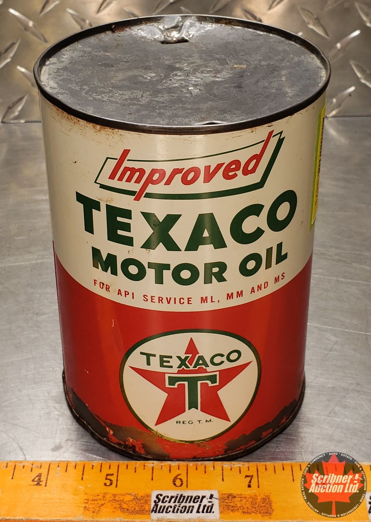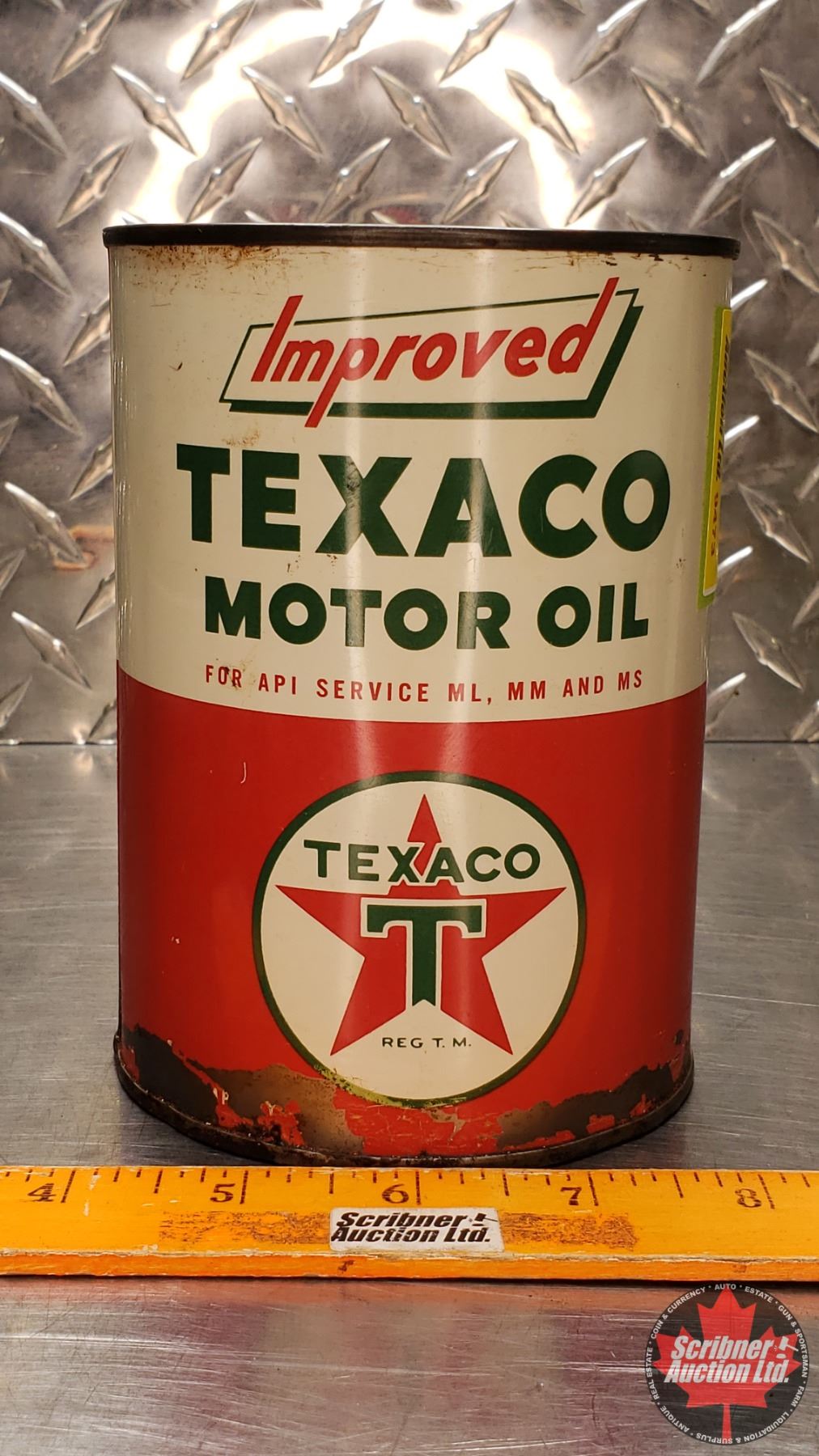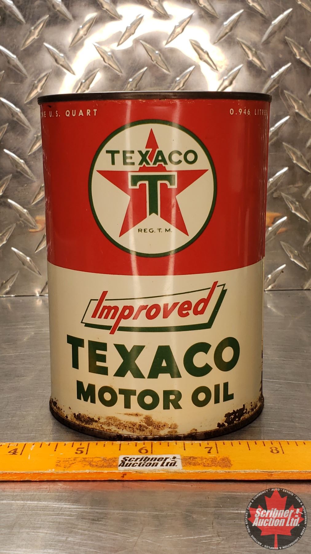 OIL TIN : Improved Texaco Motor Oil (5-1/2"H x 4"Dia) (SEE PICS!)