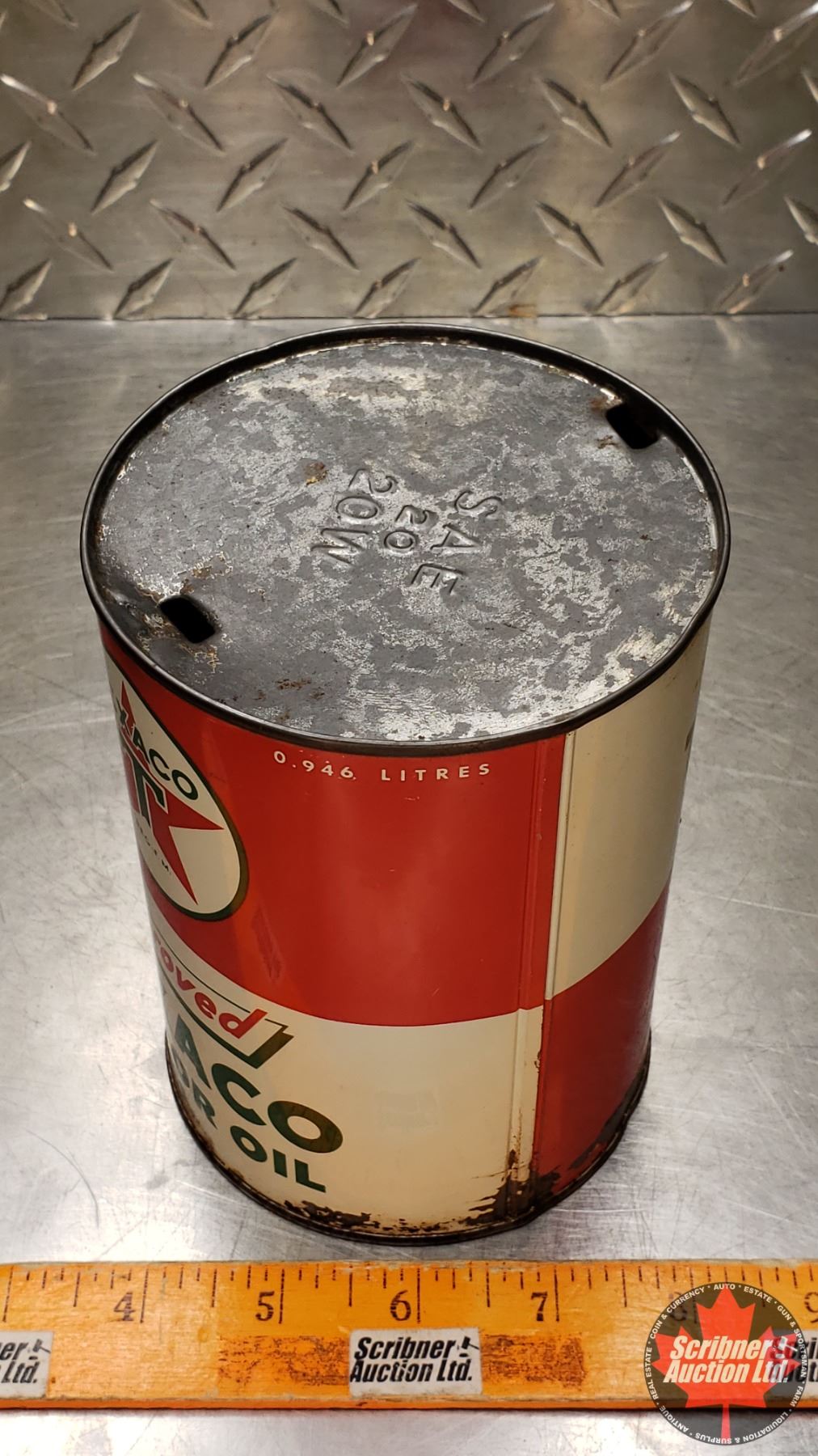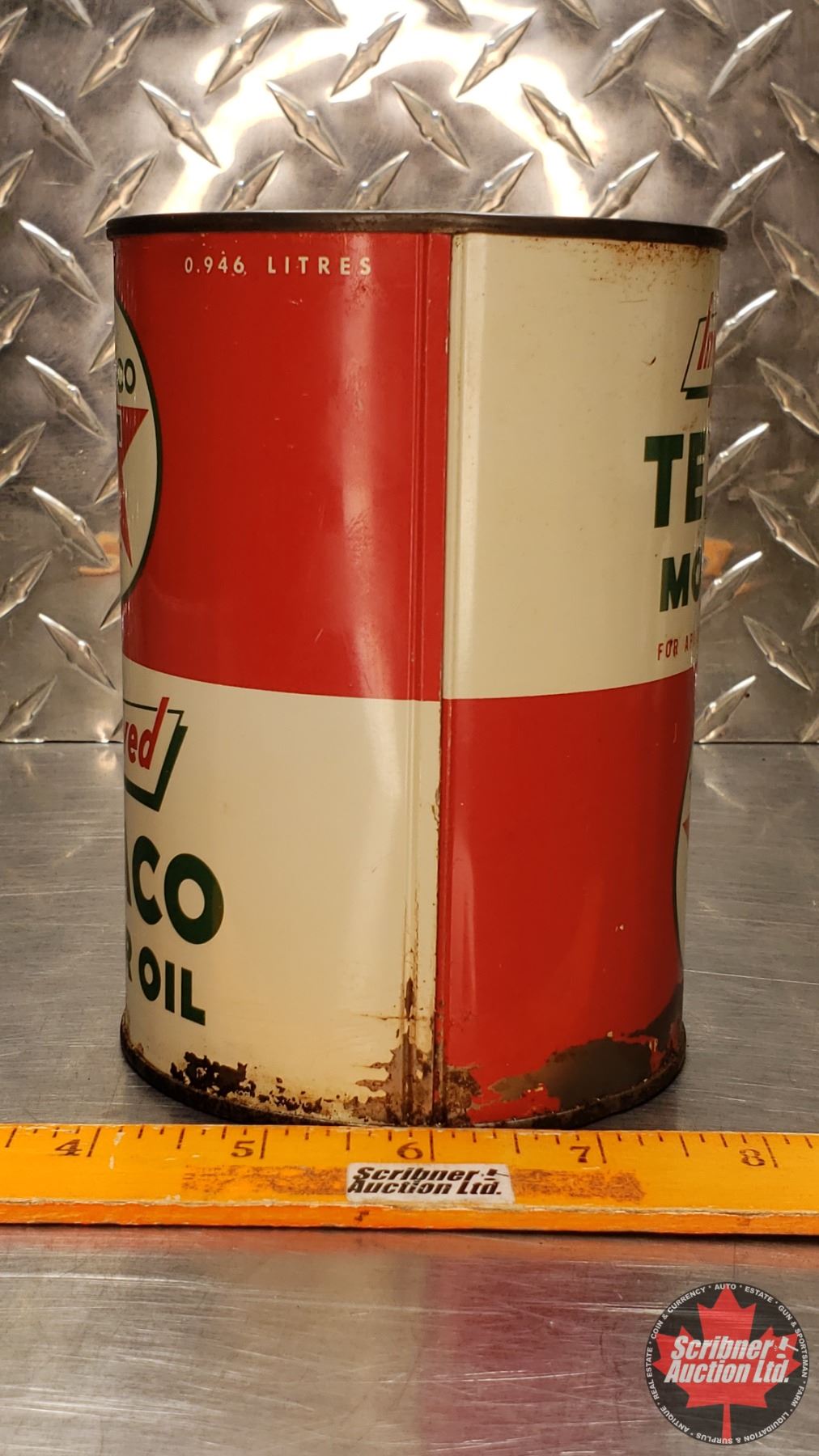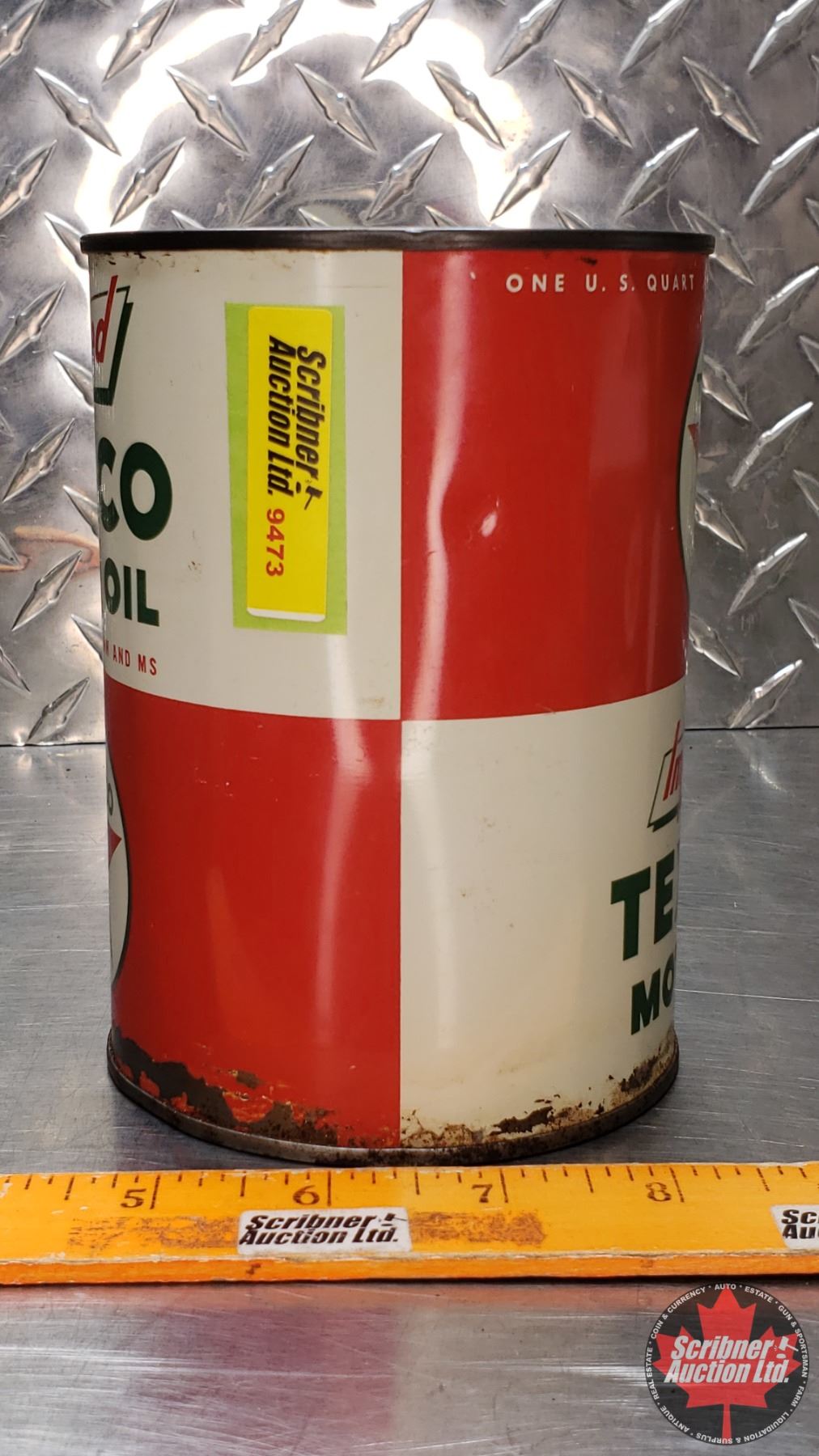OIL TIN : Improved Texaco Motor Oil (5-1/2"H x 4"Dia) (SEE PICS!)