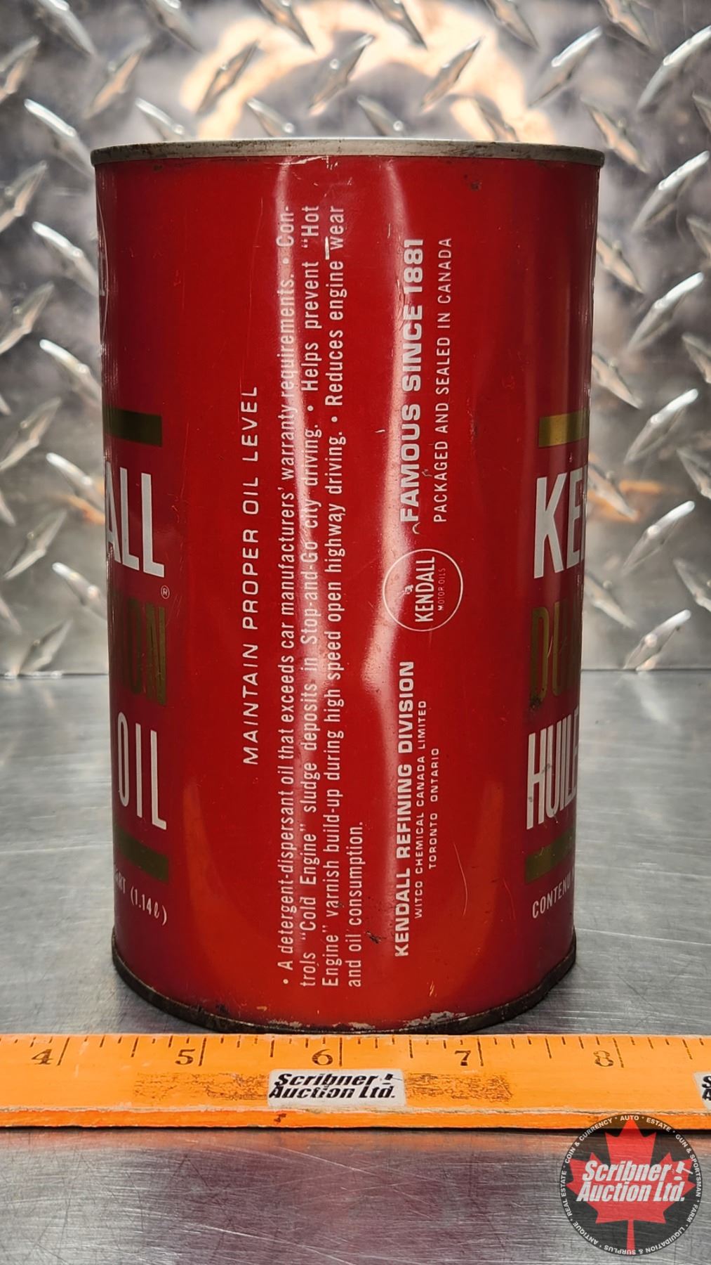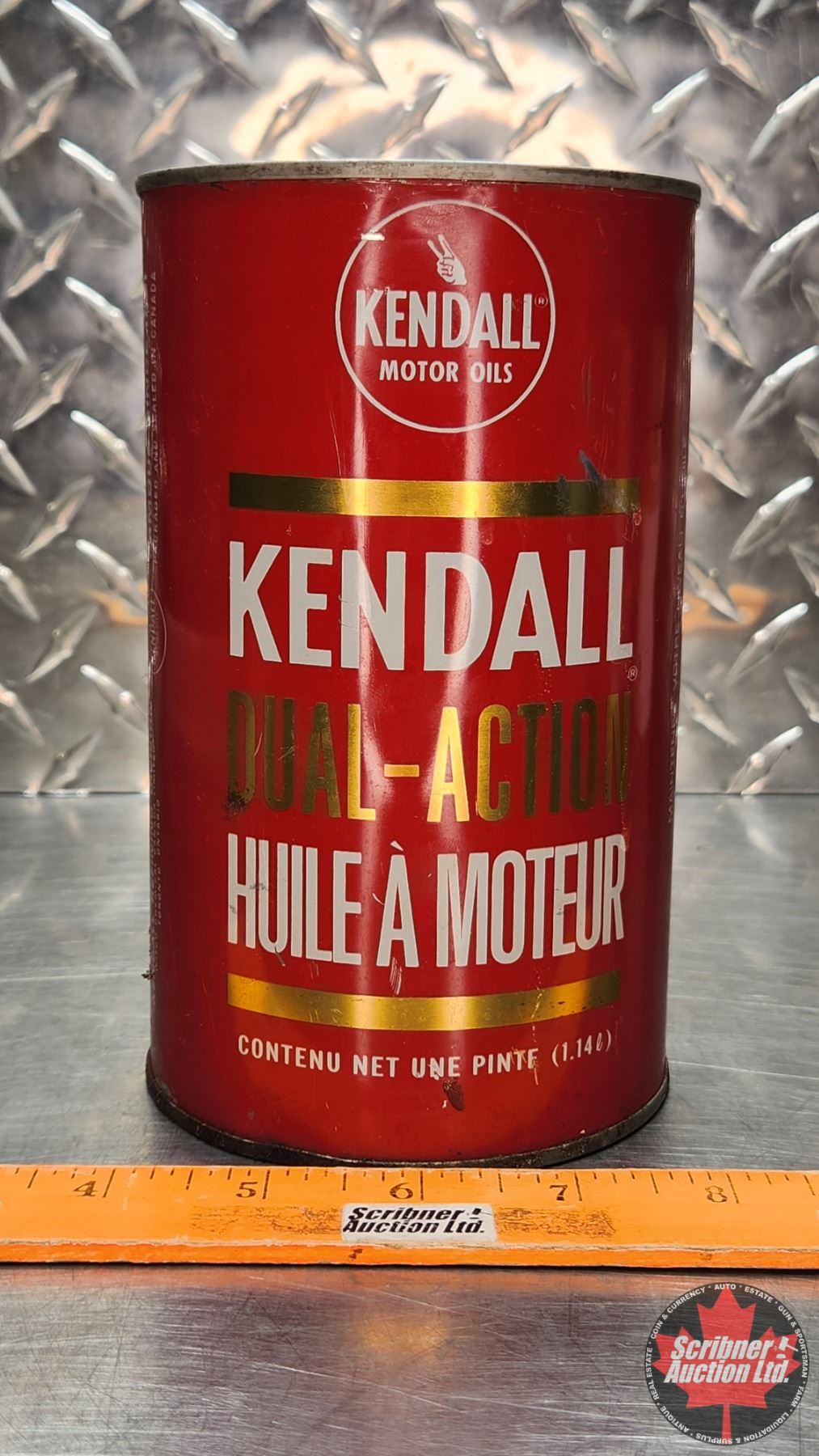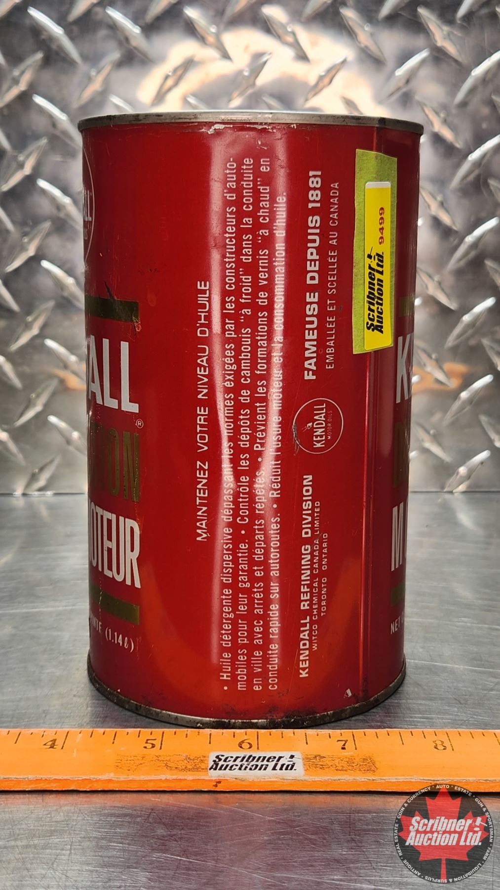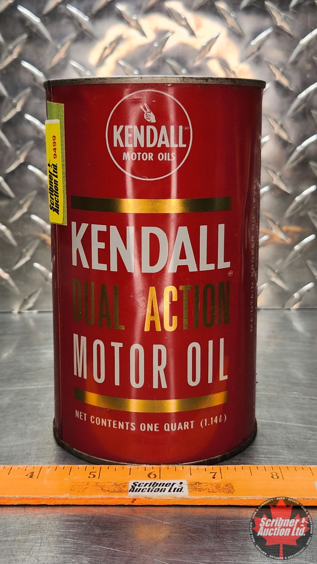 OIL TIN : Kendall Dual Action Motor Oil (Full) ( 6-1/2"H x 4"Dia) (SEE PICS!)