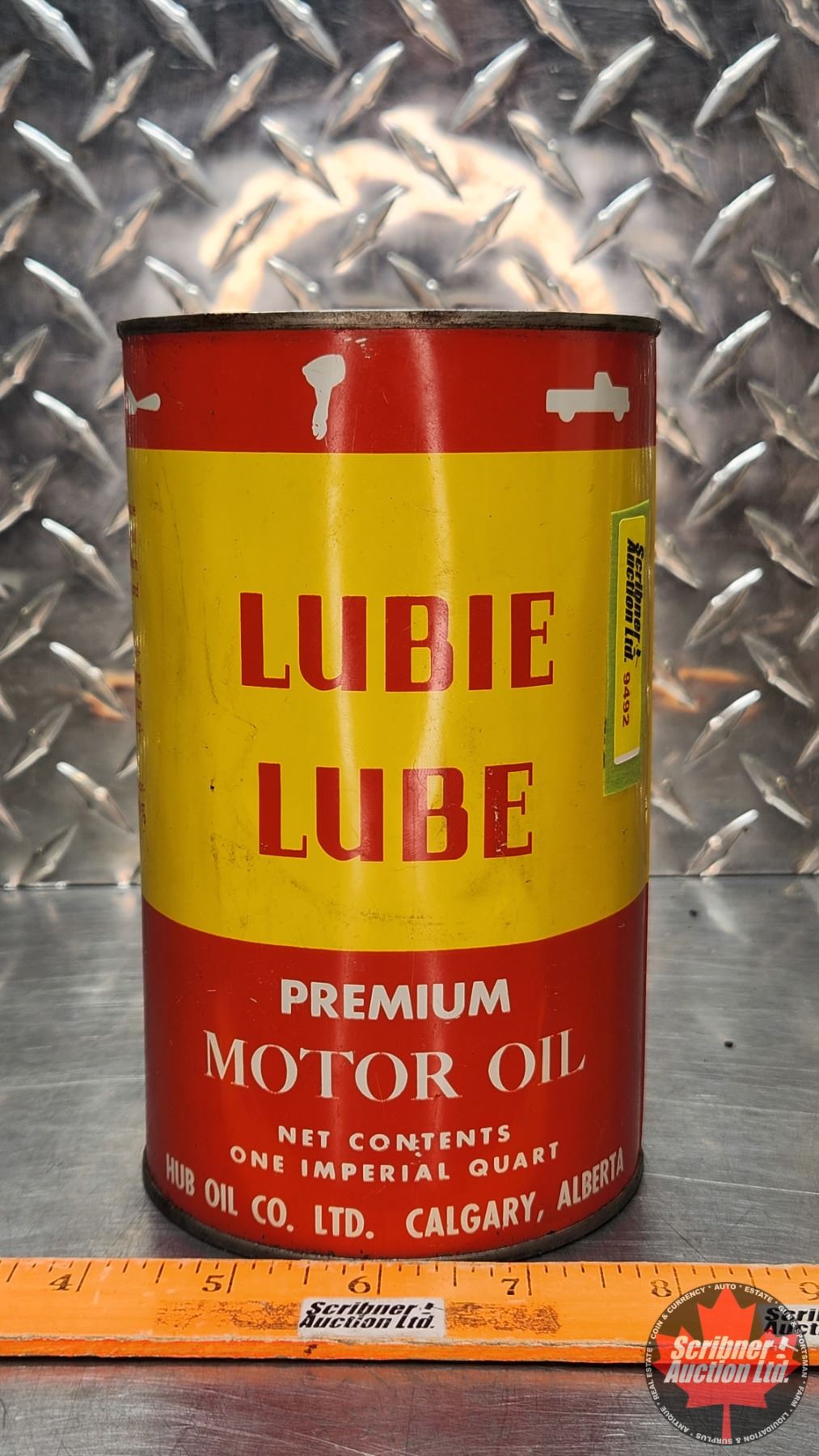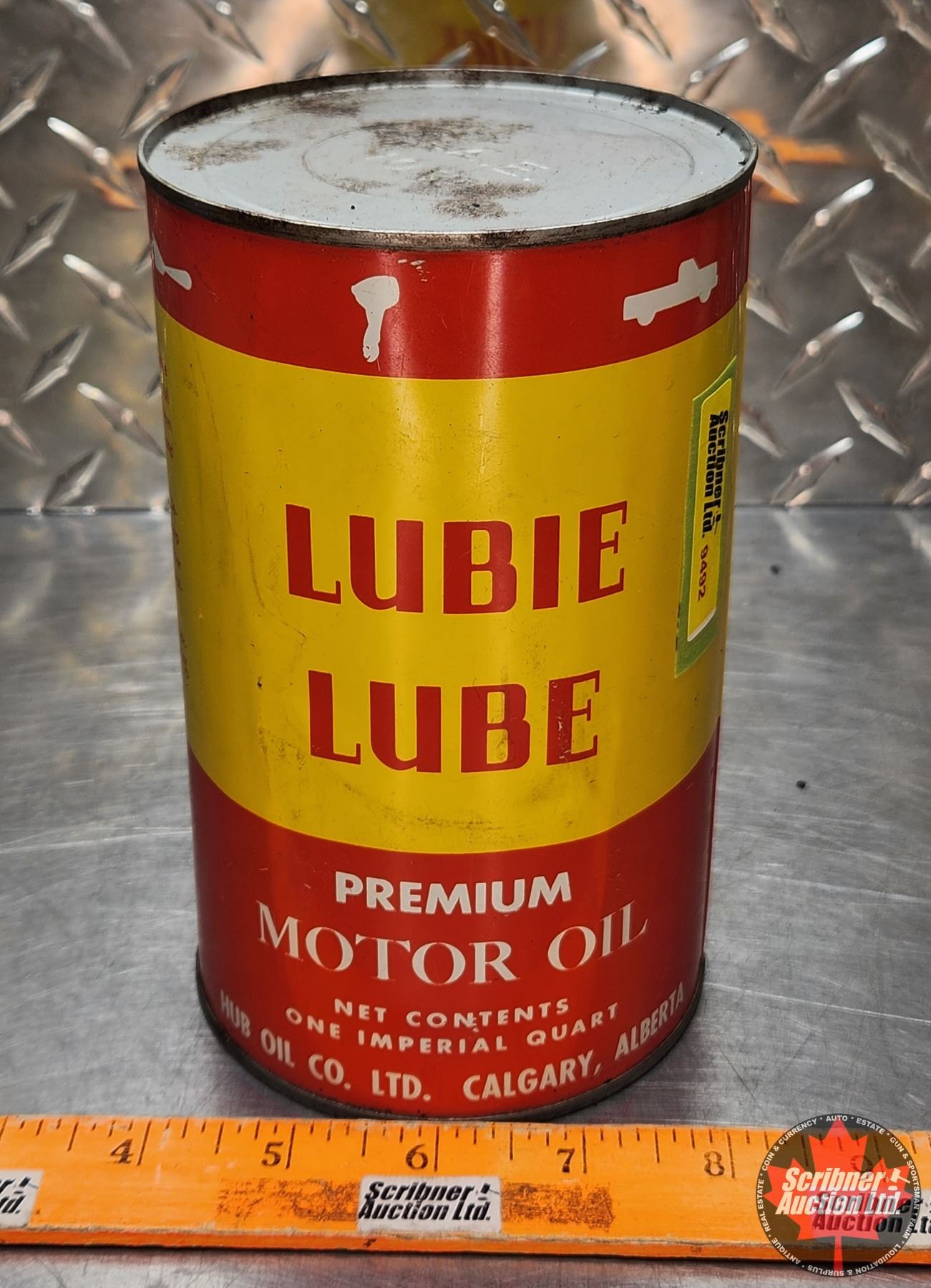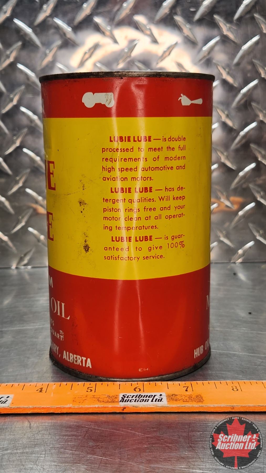 OIL TIN : Lubie Lube Premium Motor Oil (6-3/4"H x 4"Dia) (SEE PICS!)