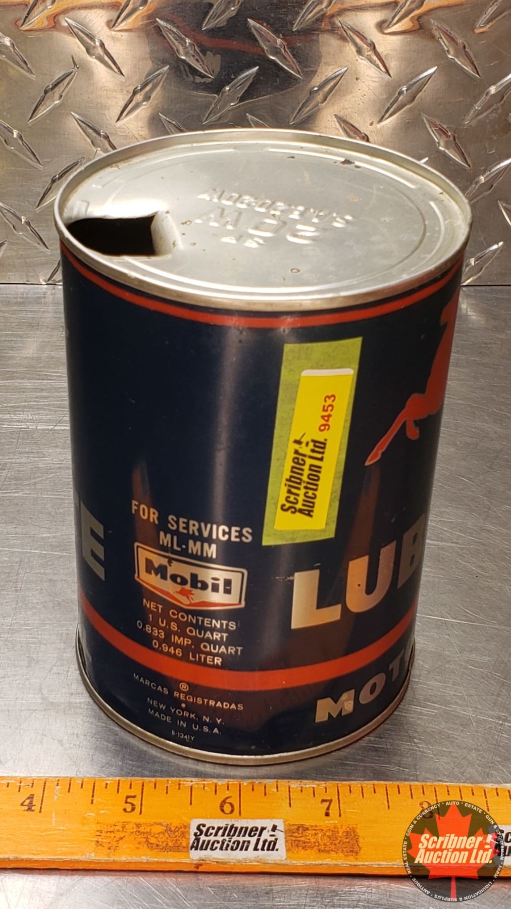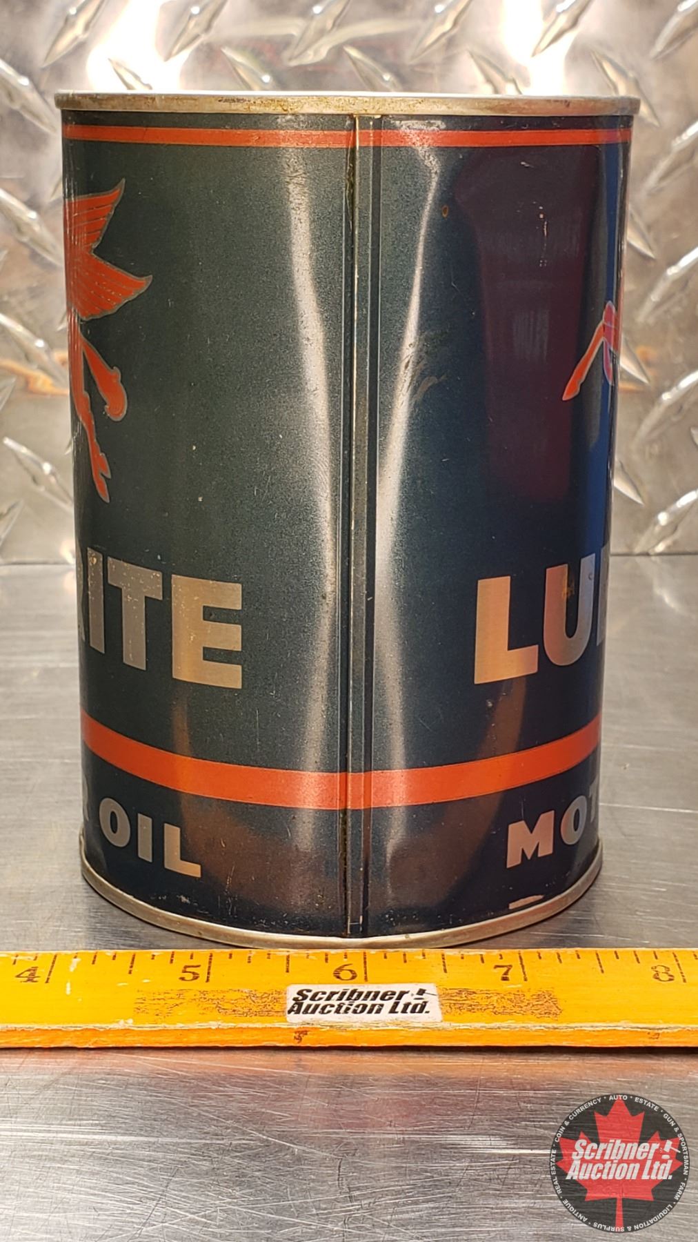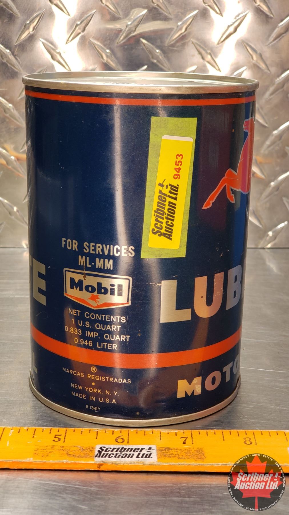 OIL TIN : Mobil Lubrite Motor Oil (6"H x 4"Dia) (SEE PICS!)