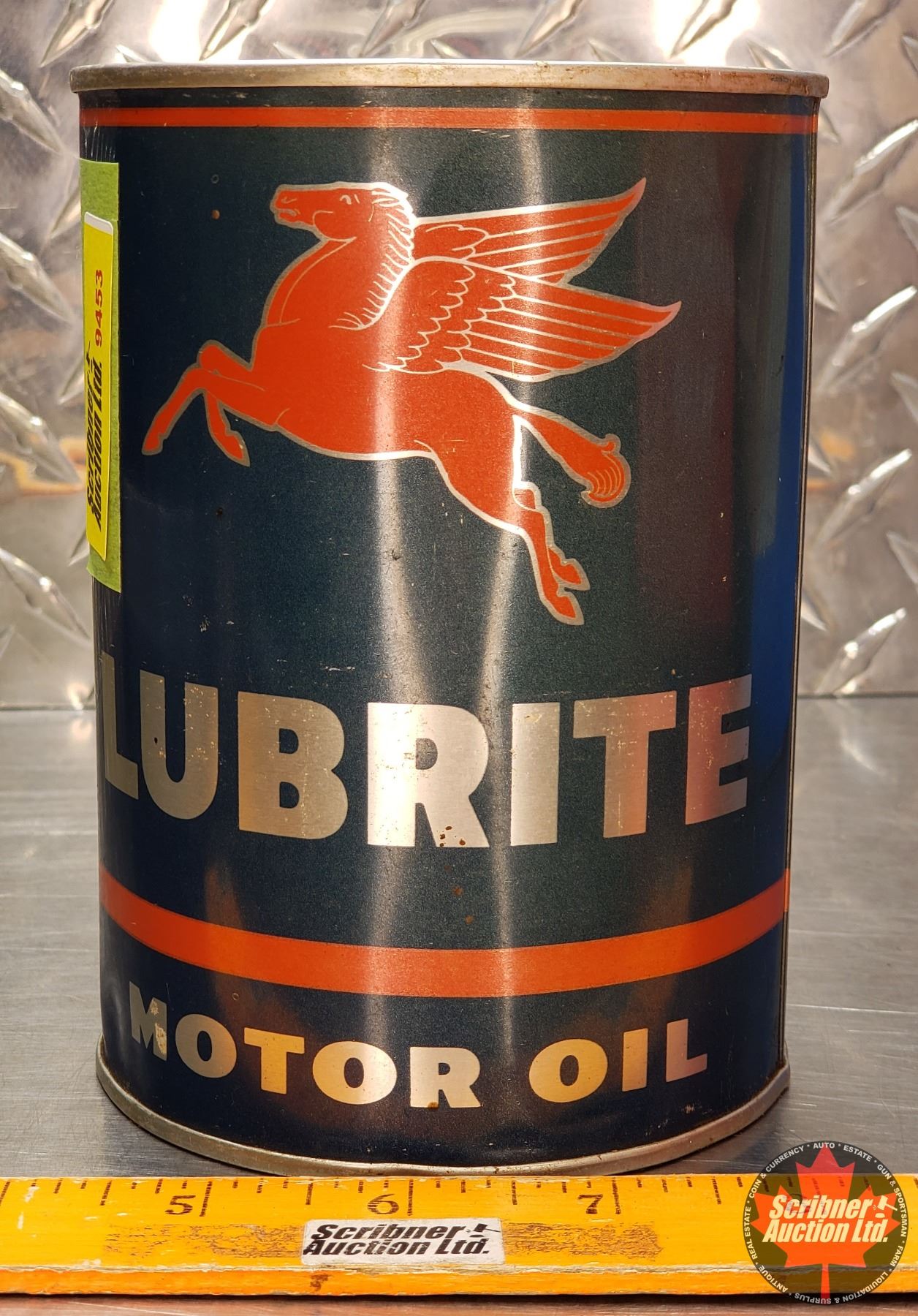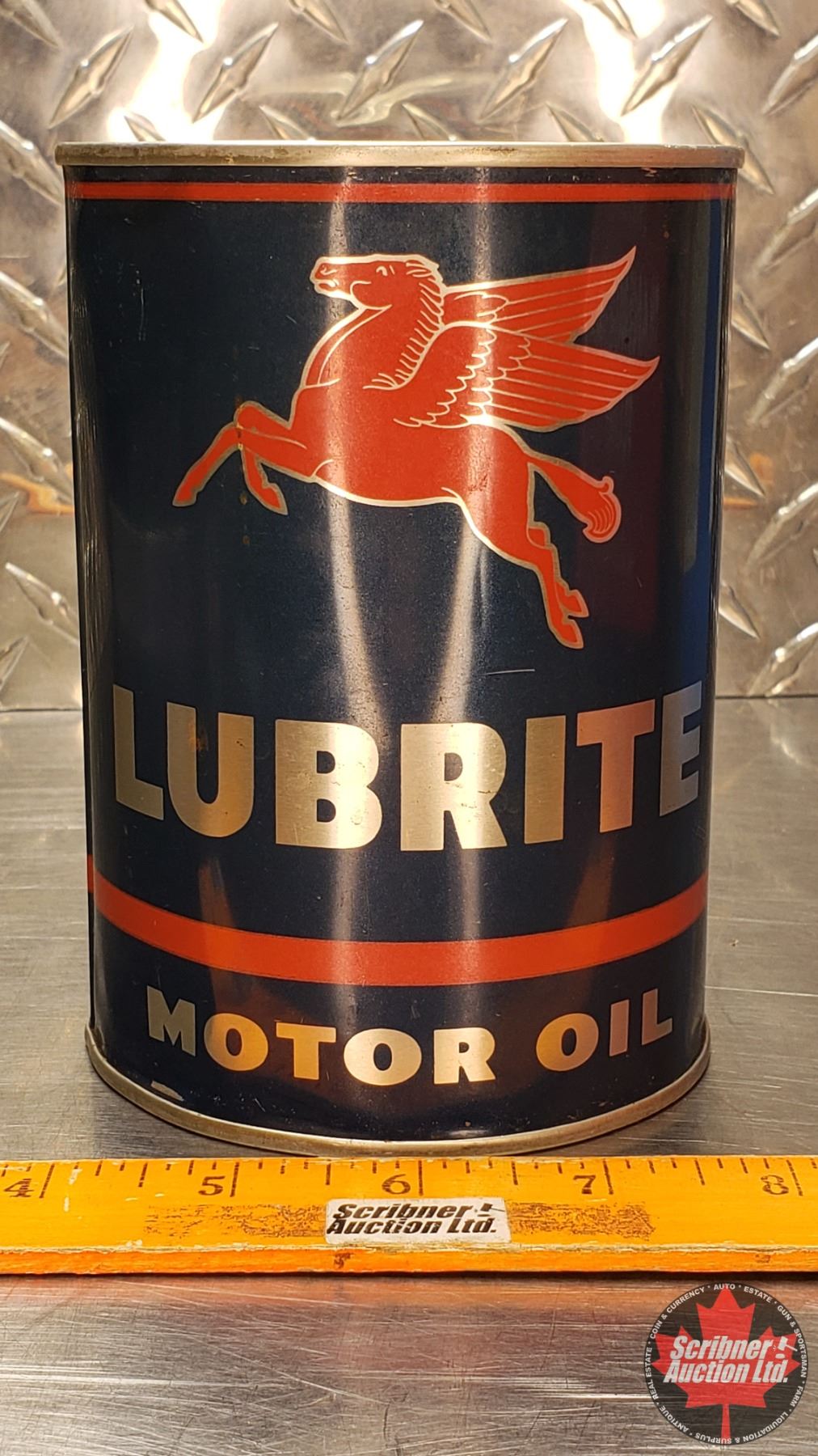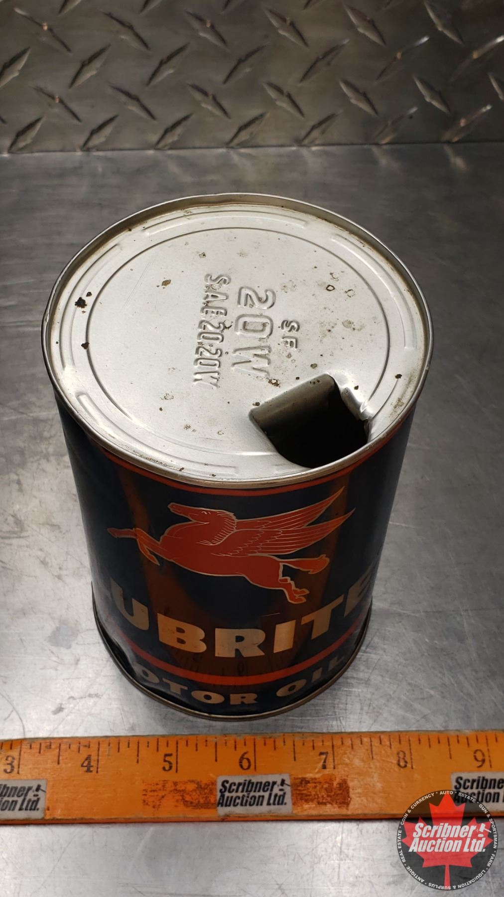 OIL TIN : Mobil Lubrite Motor Oil (6"H x 4"Dia) (SEE PICS!)