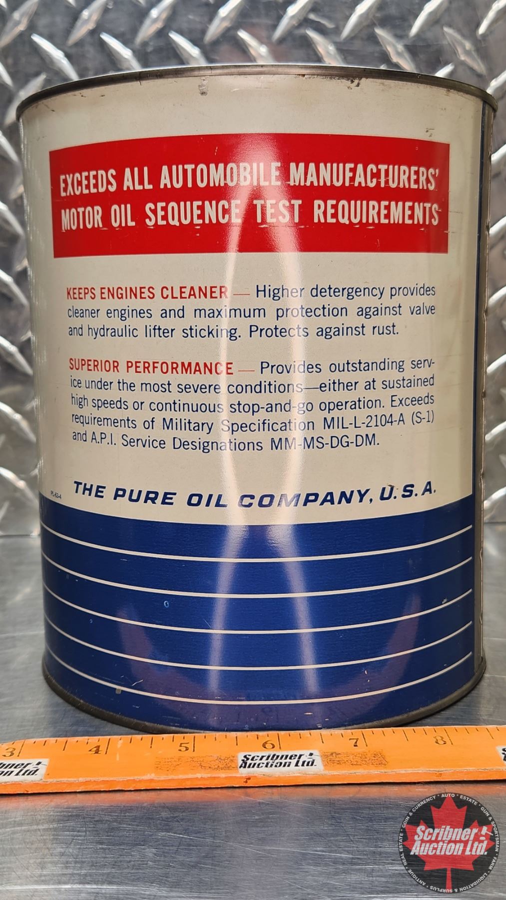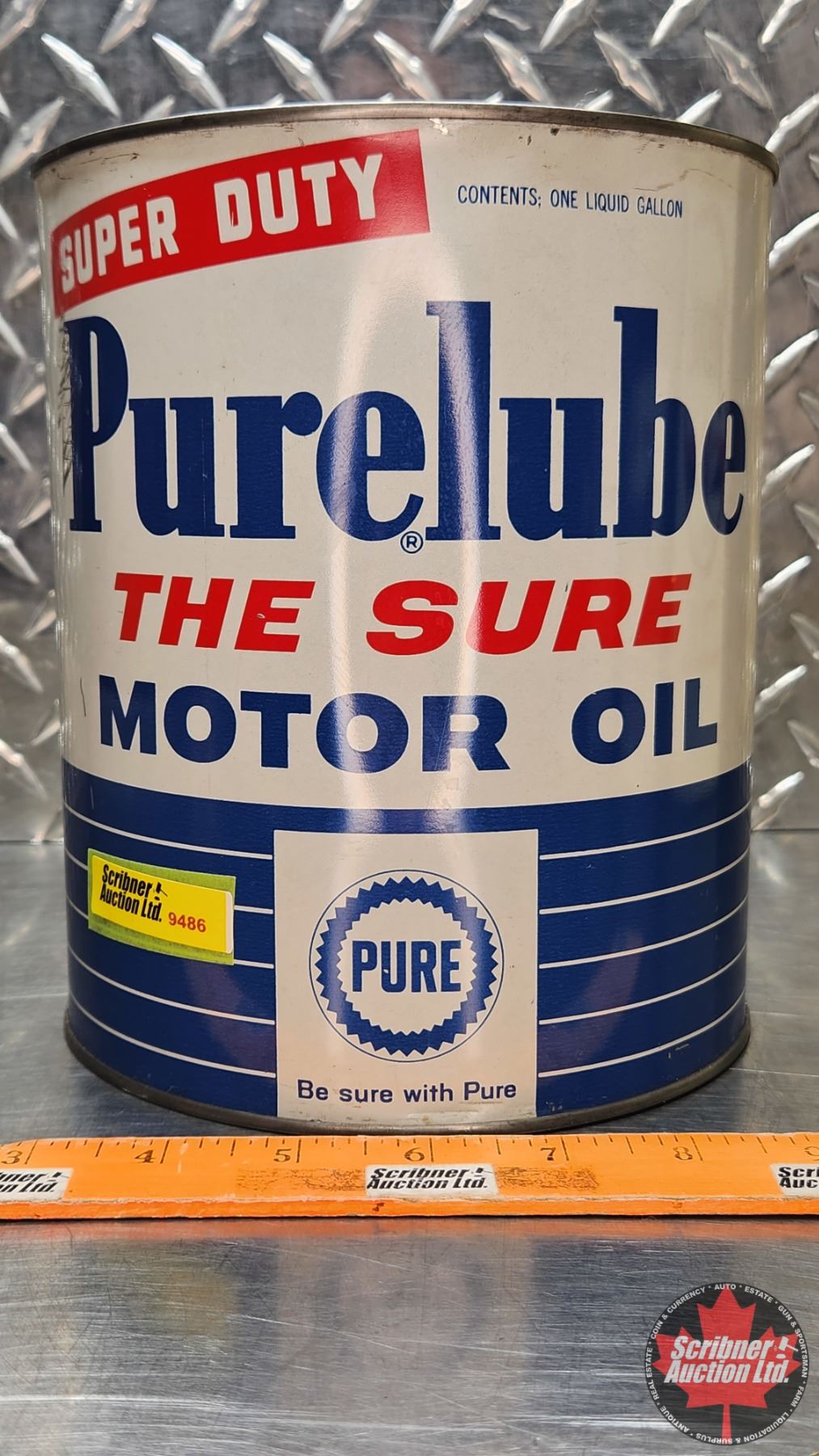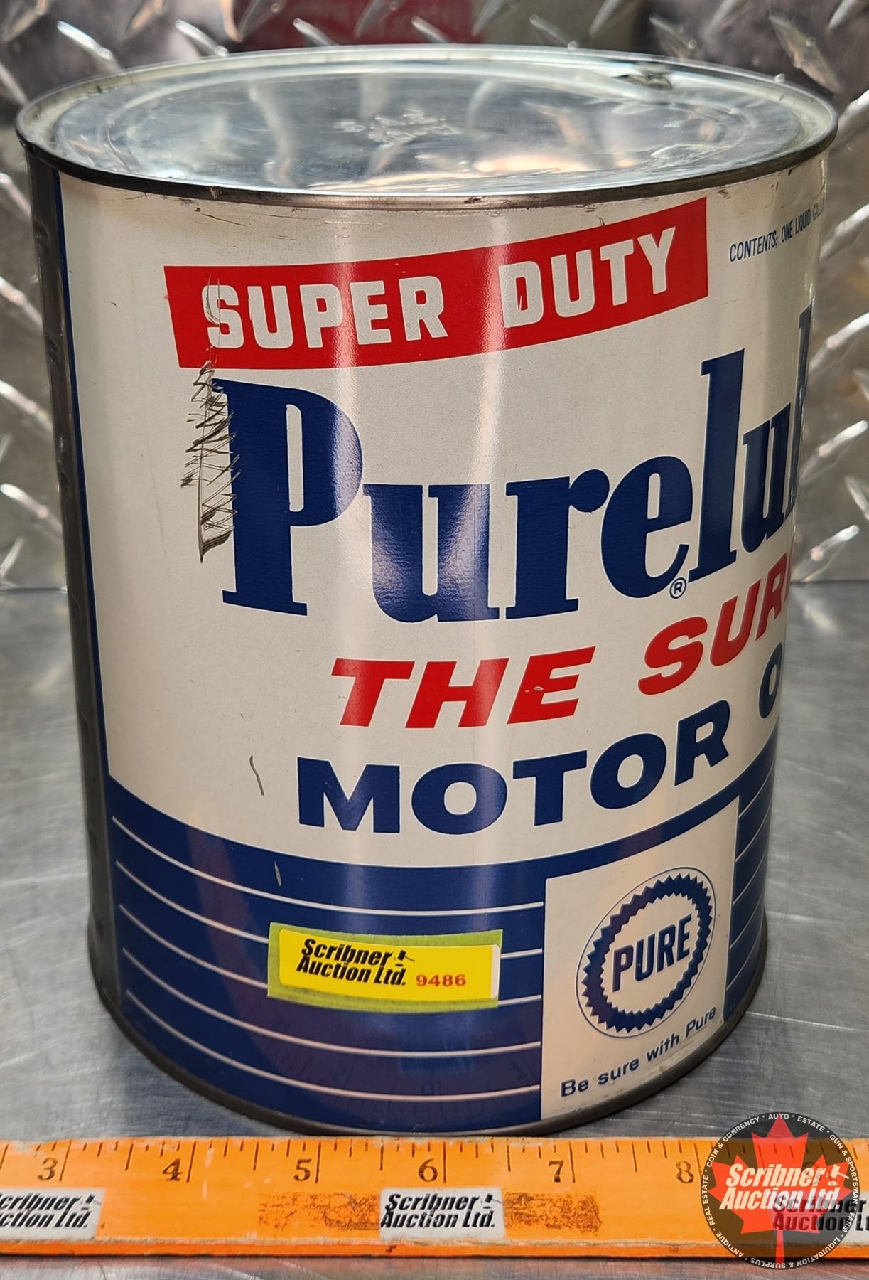 OIL TIN : PURE Super Duty Purelube "The Sure" Motor Oil (8"H x 6-1/2"Dia) (SEE PICS!)