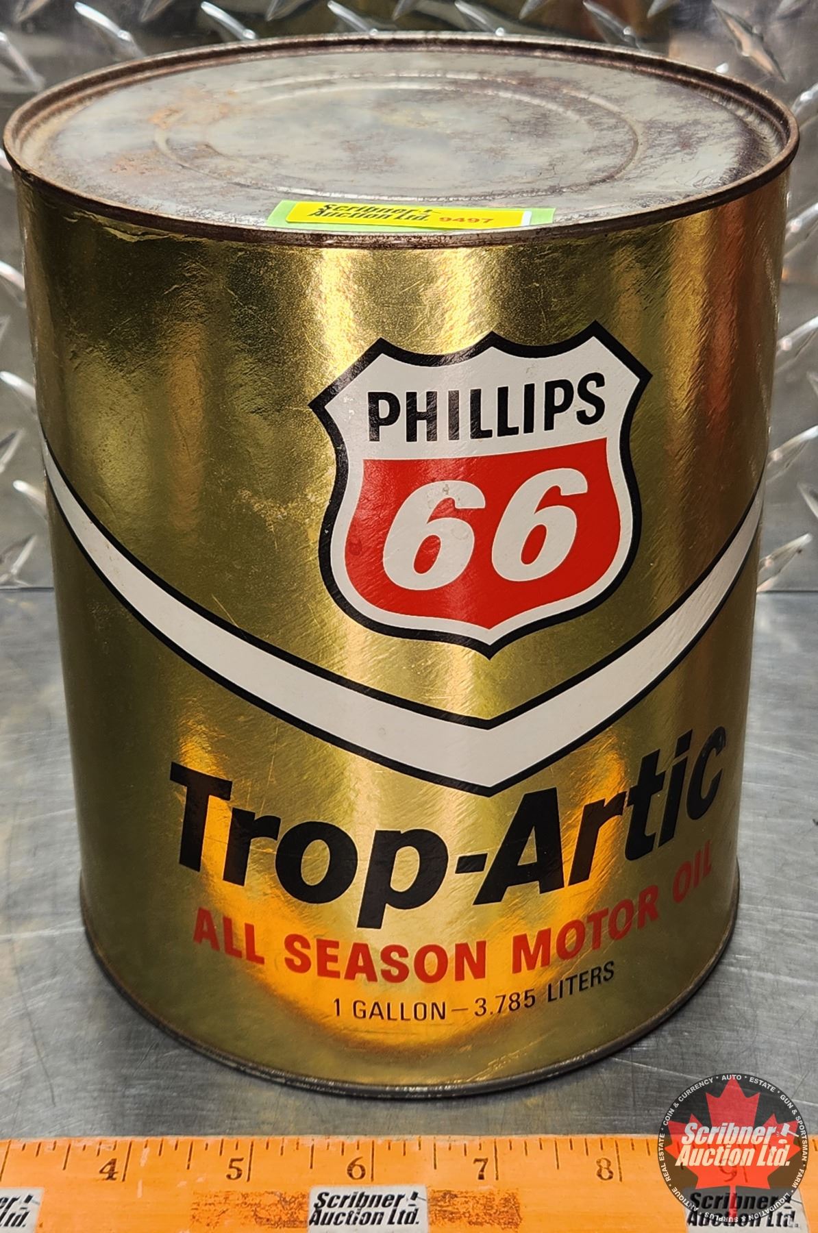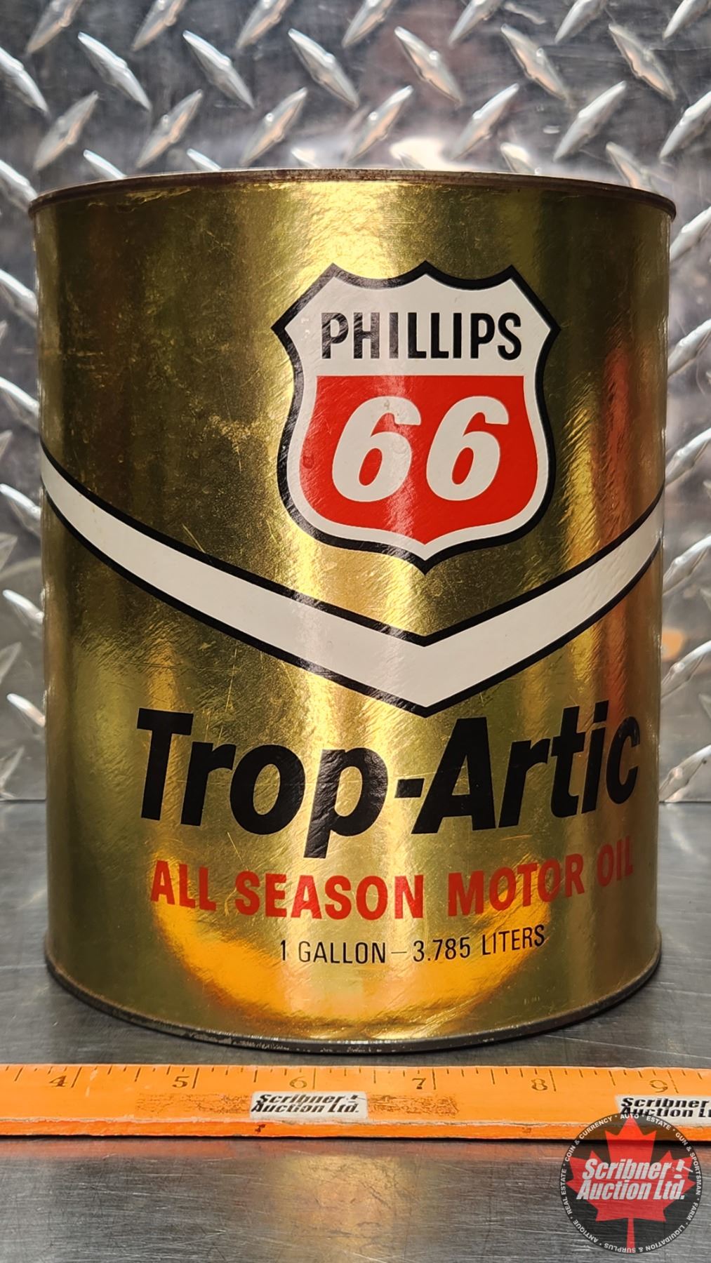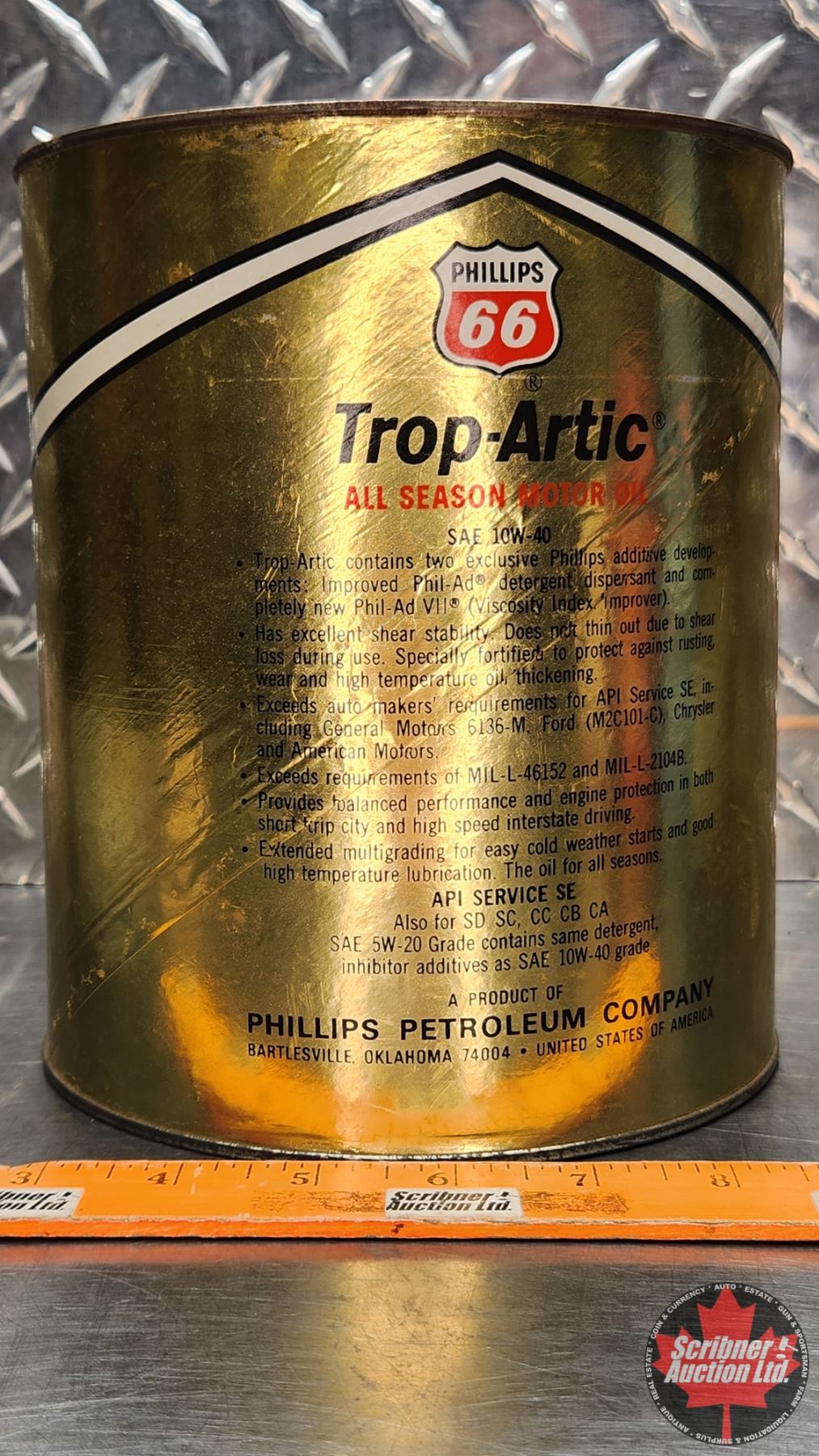 OIL TIN : Phillips 66 Trop-Artic All Season Motor Oil (Cardboard) (8"H x 6-3/4"Dia) (SEE PICS!)