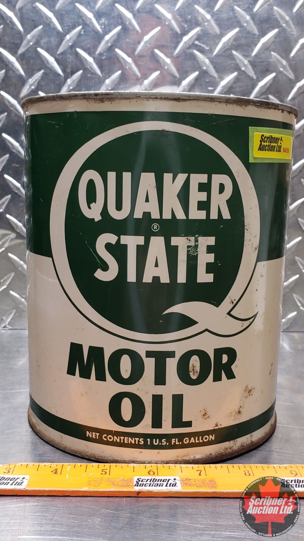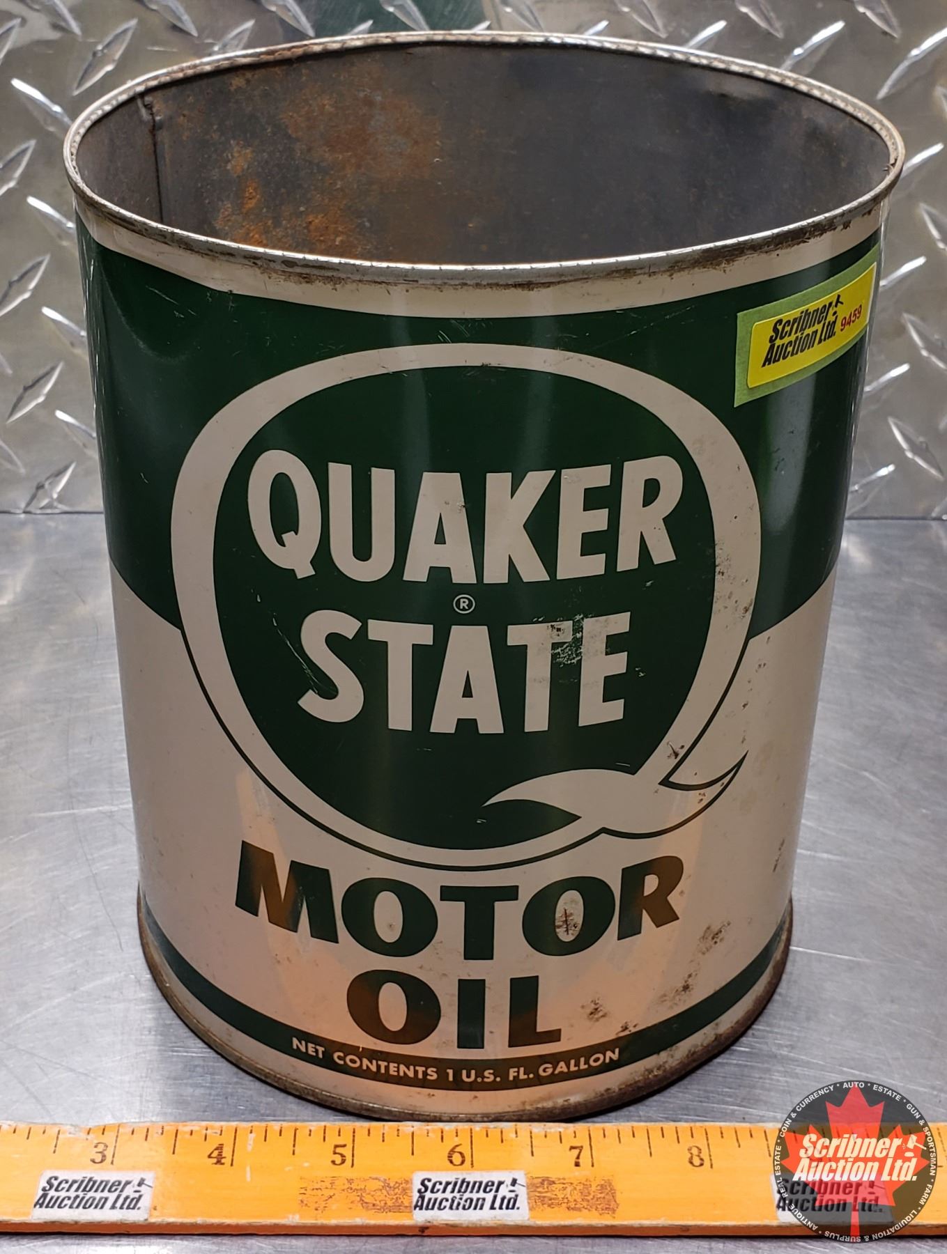 OIL TIN : Quaker State Motor Oil (8"H x 6-1/4"Dia) (SEE PICS!)