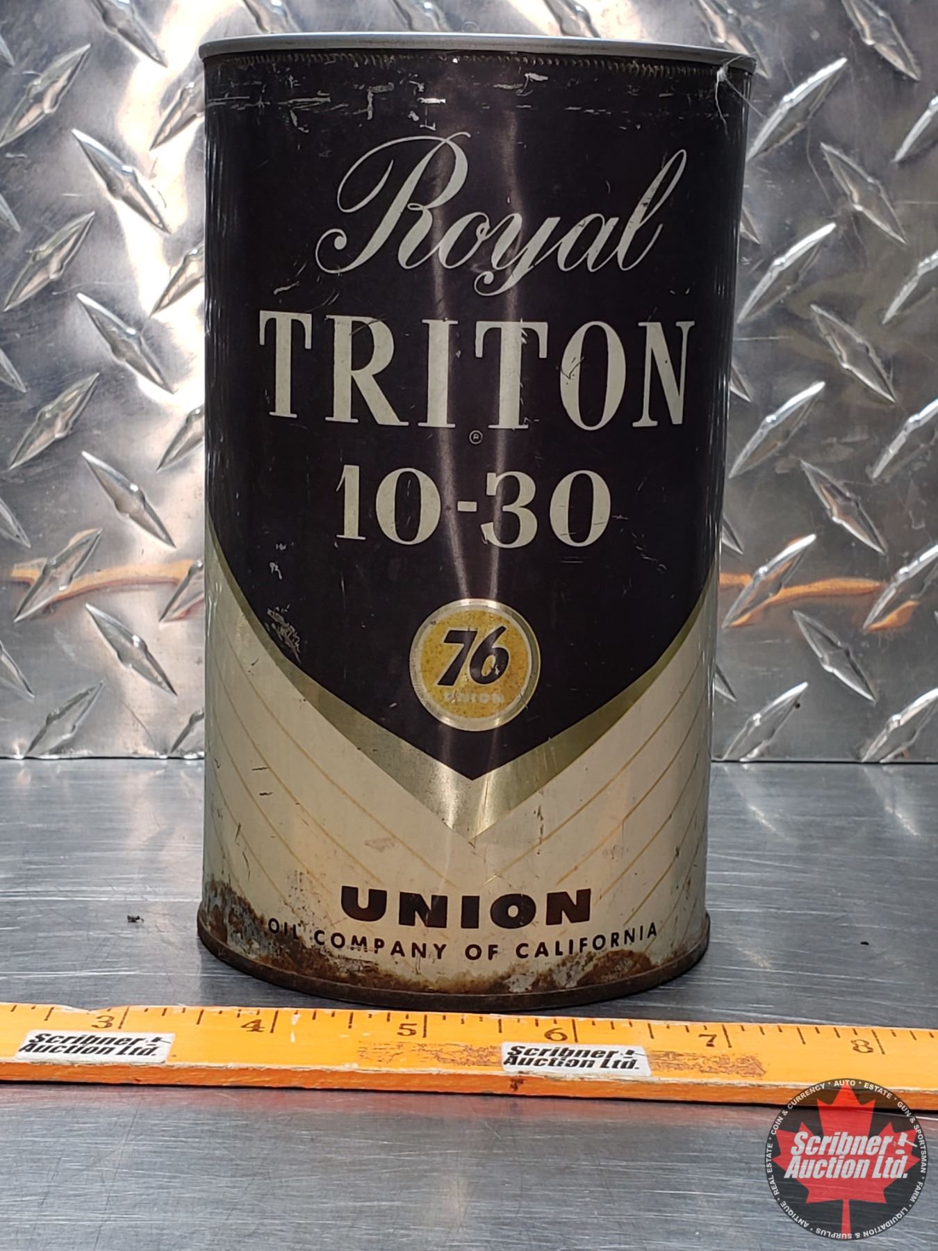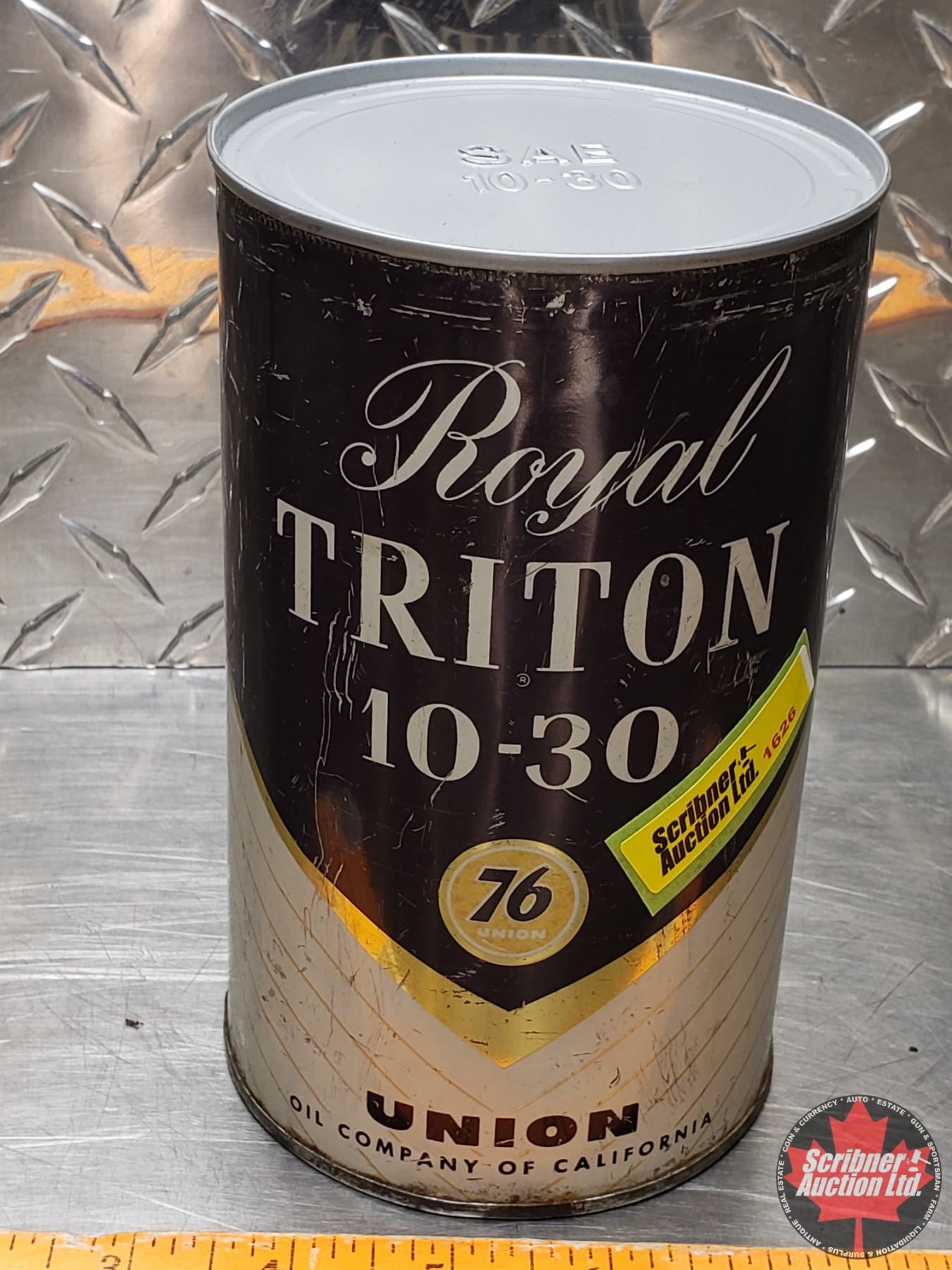OIL TIN: ROYAL TRITON 10-30 UNION 76  (6-1/2"H x 4"Dia) (SEE PICS!)