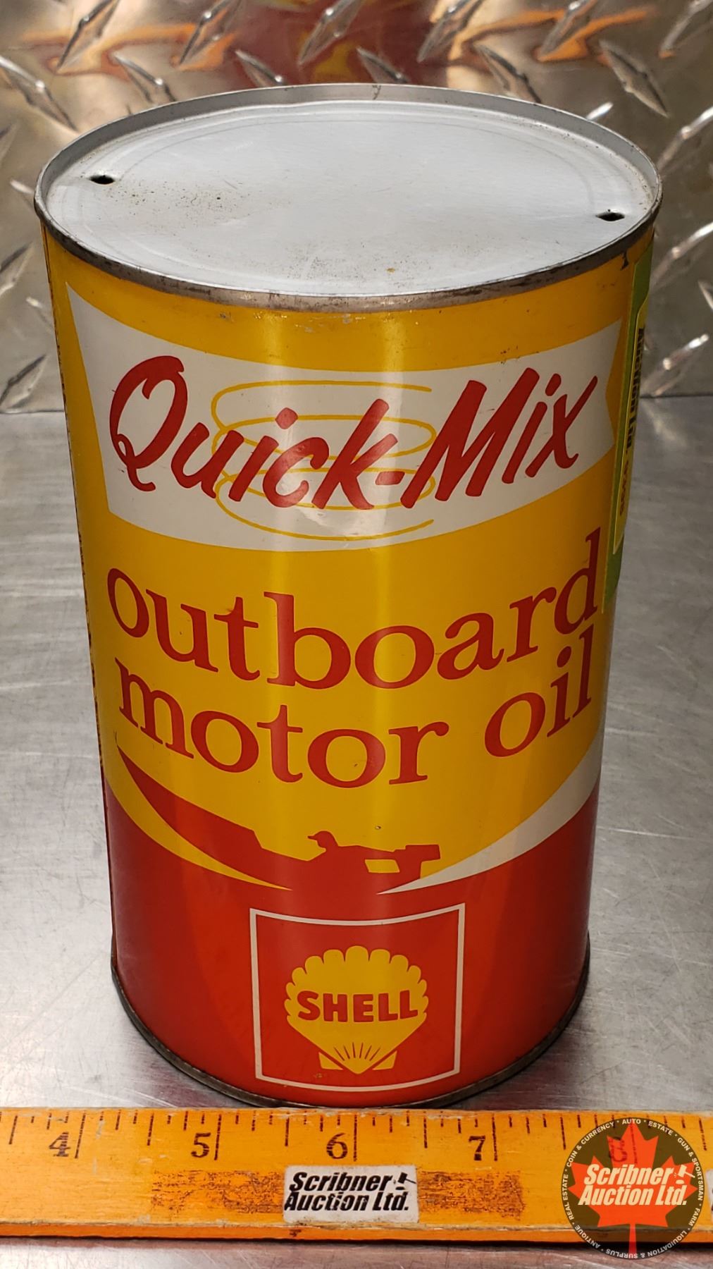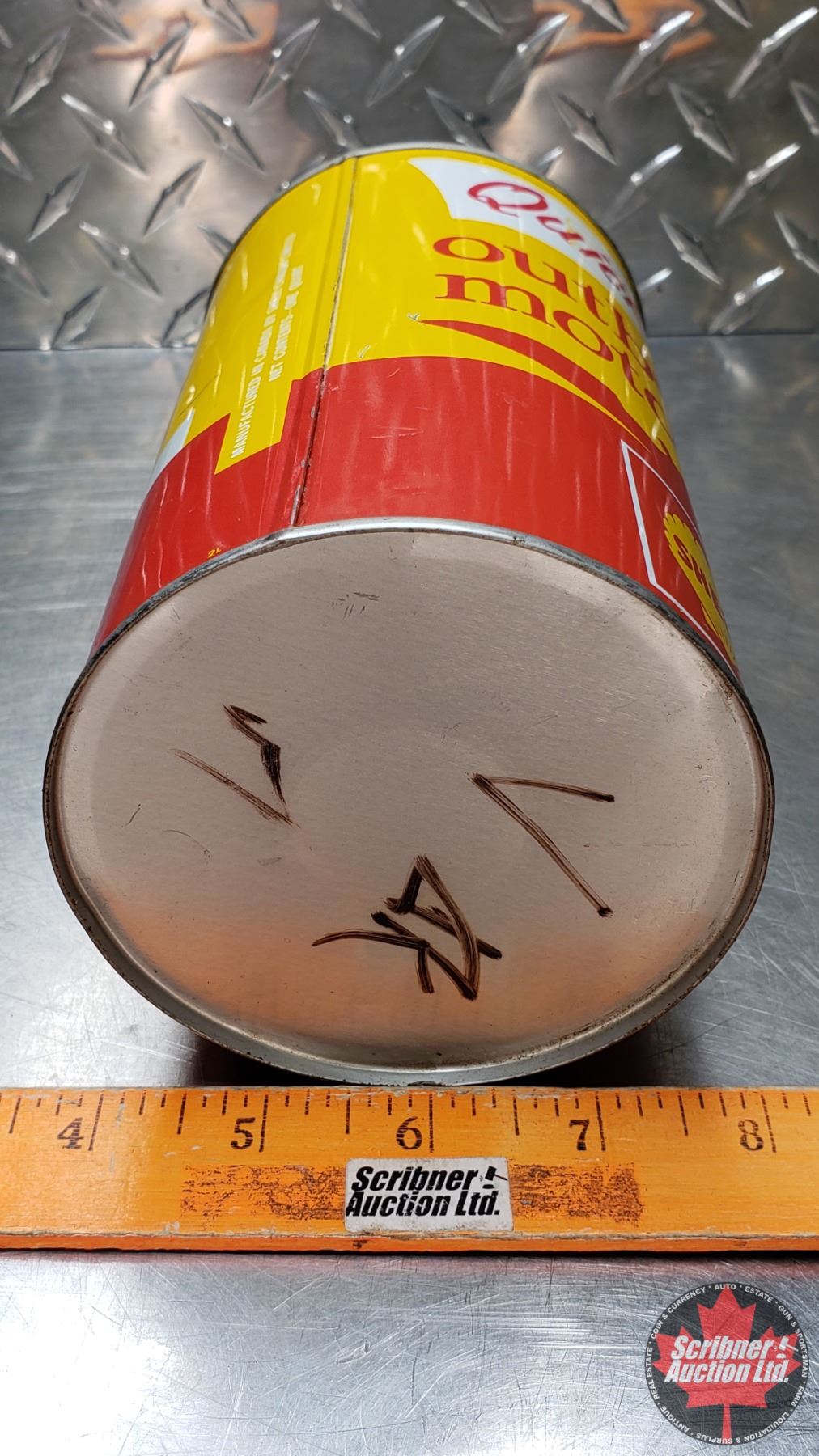 OIL TIN : Shell Quick-Mix Outboard Motor Oil (6-1/2"H x 4"Dia) (SEE PICS!)