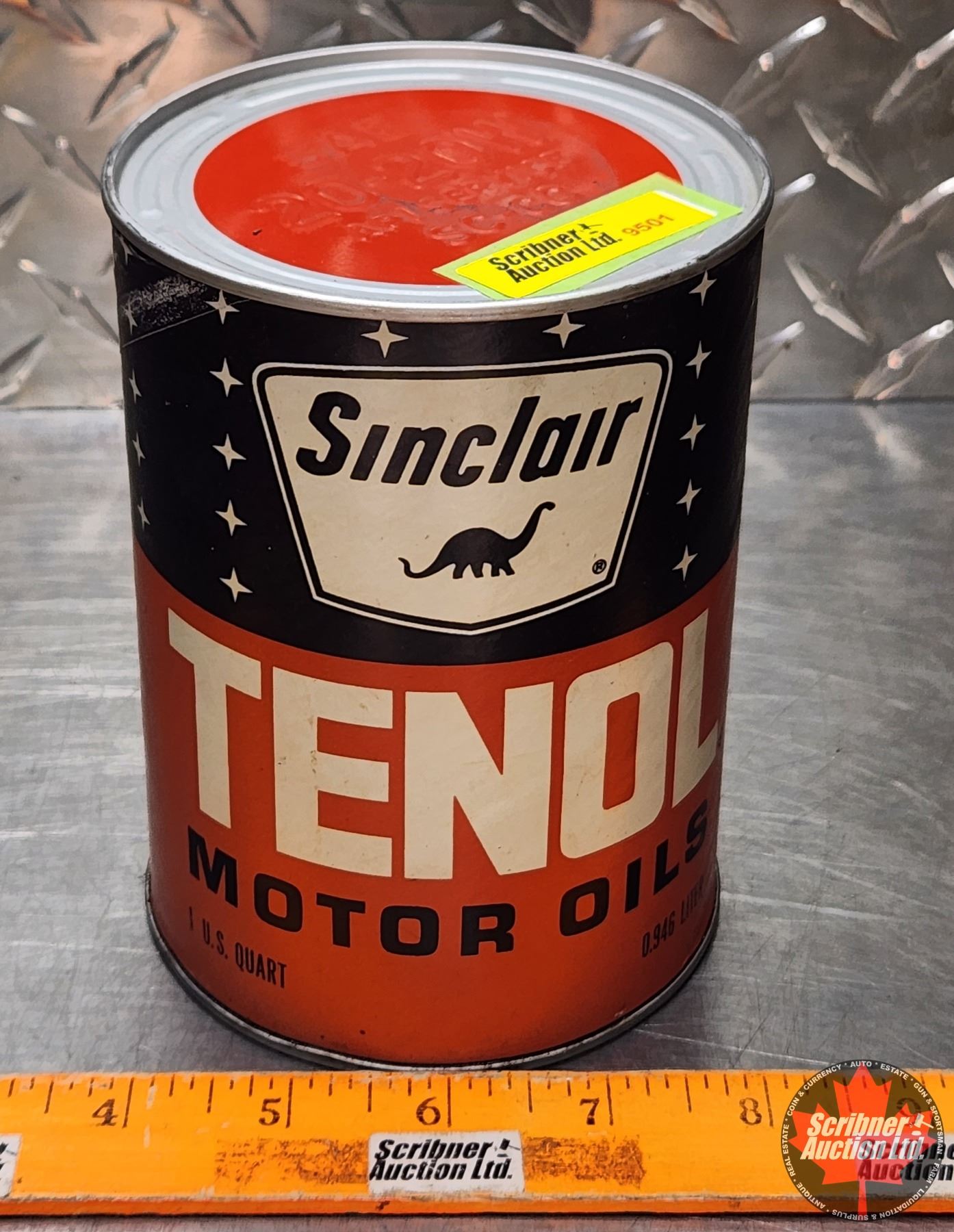 OIL TIN : Sinclair TENOL Motor Oils (Cardboard) (5-3/4"H x 4"Dia) (SEE PICS!)