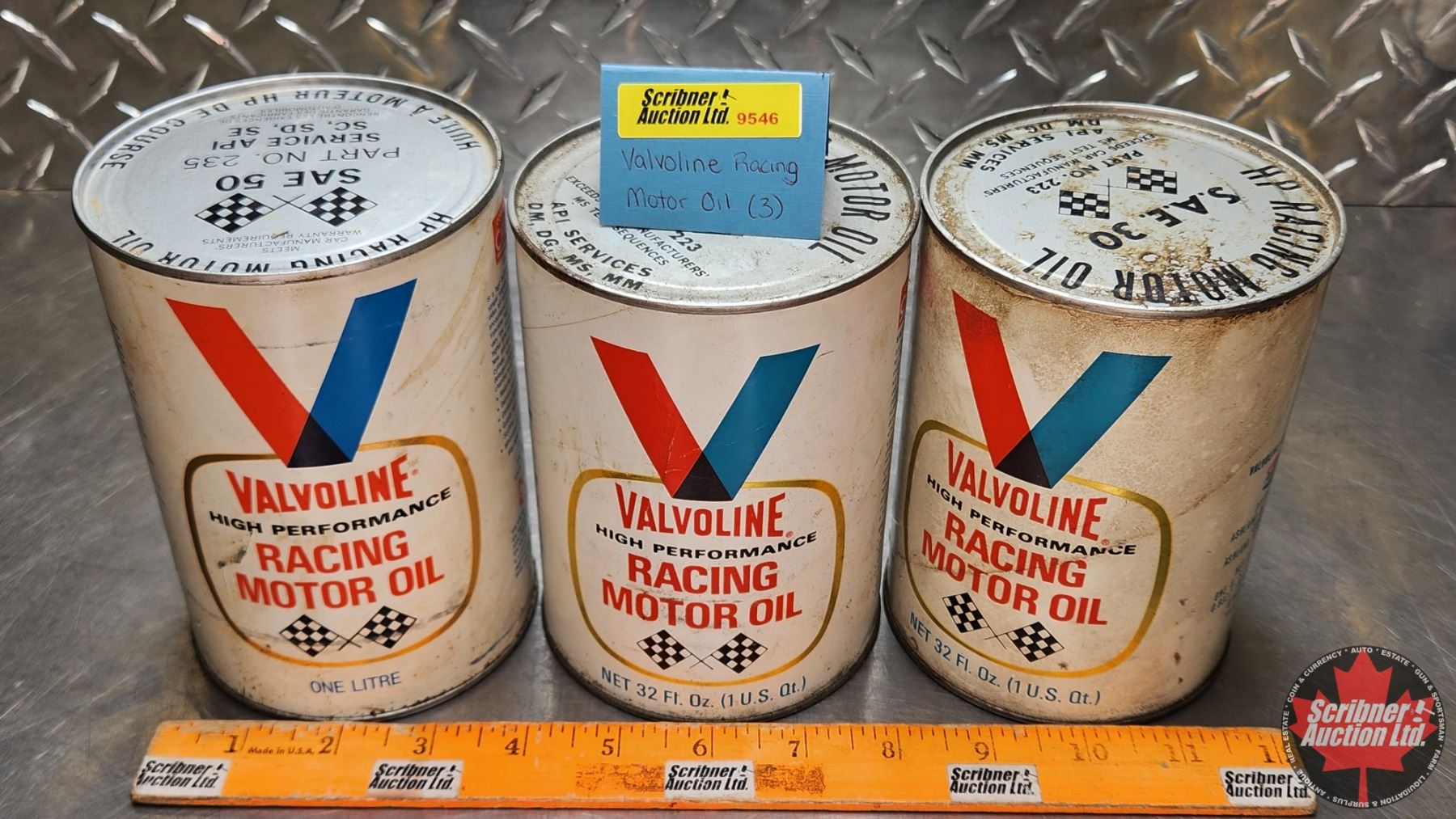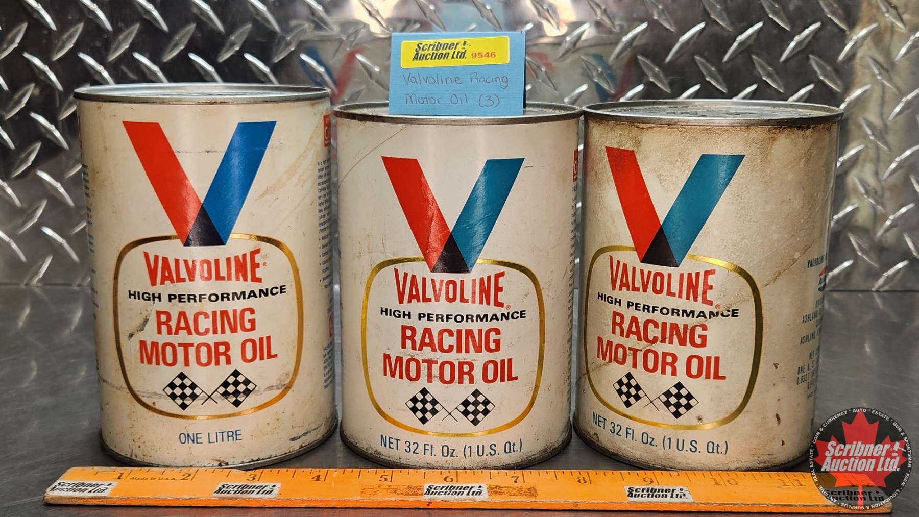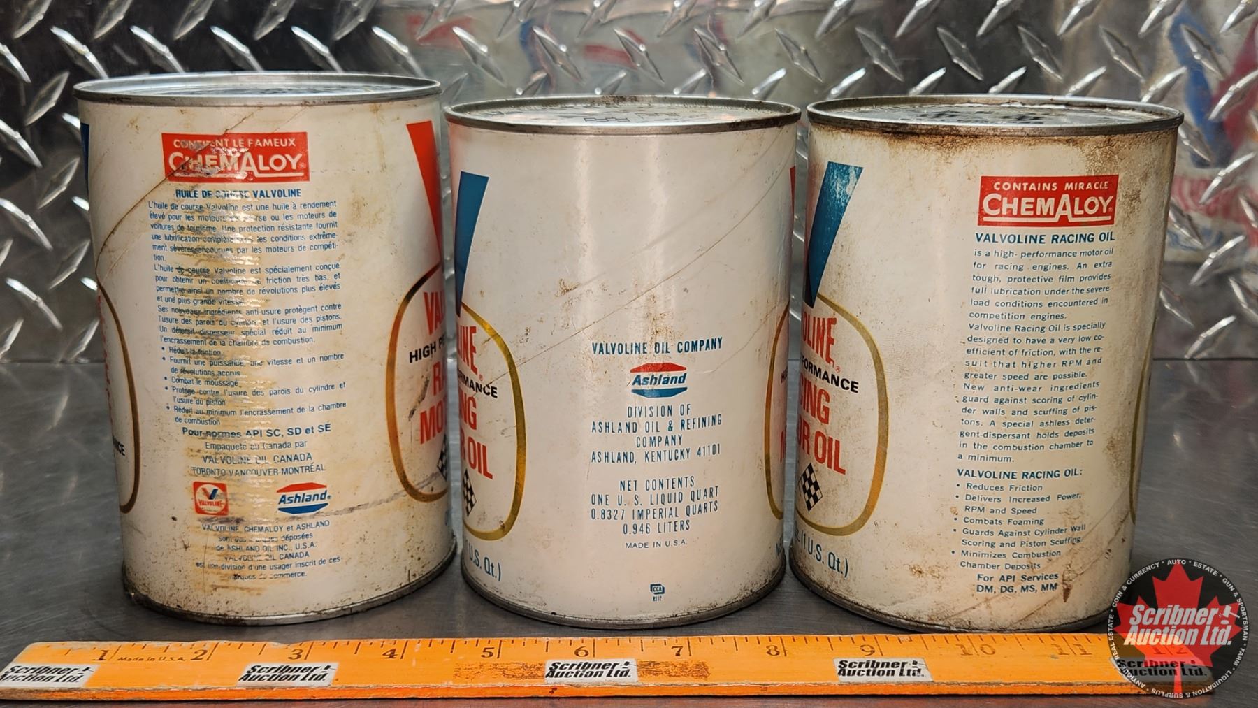 OIL TIN TRIO : Valvoline Racing Motor Oil (All Cardboard & Full) (6"H x 4"Dia) (SEE PICS!)