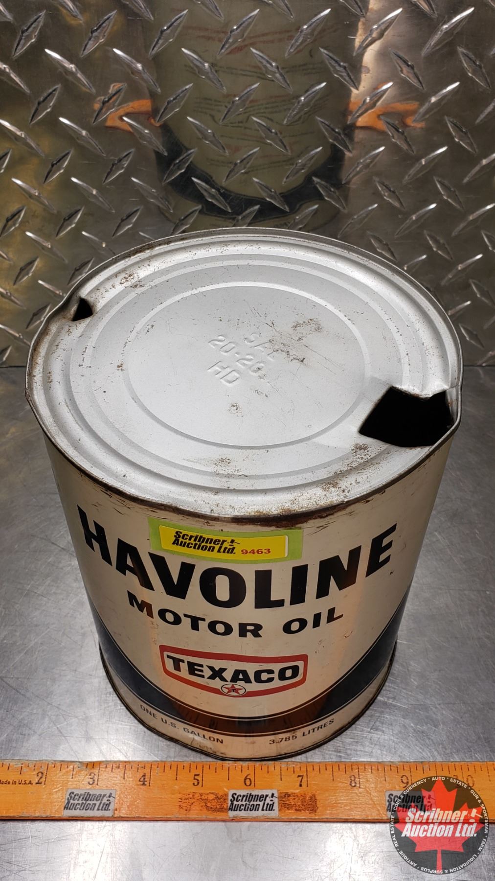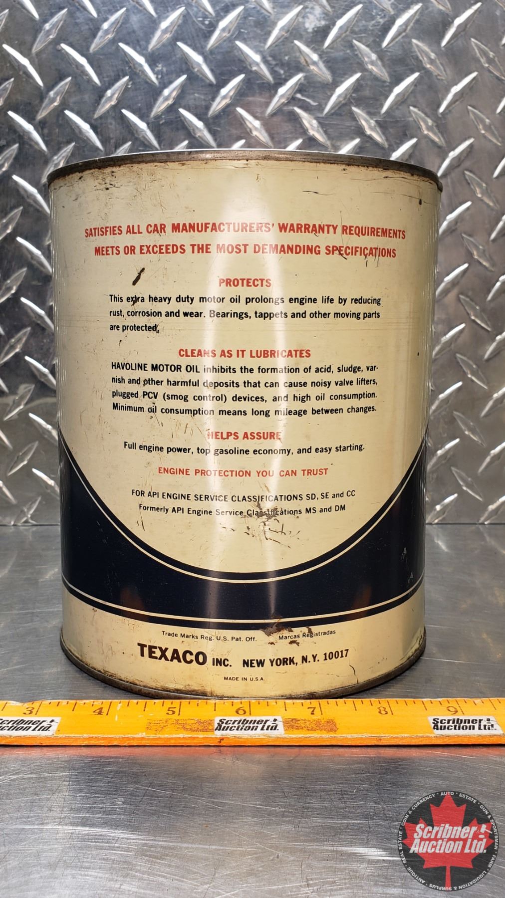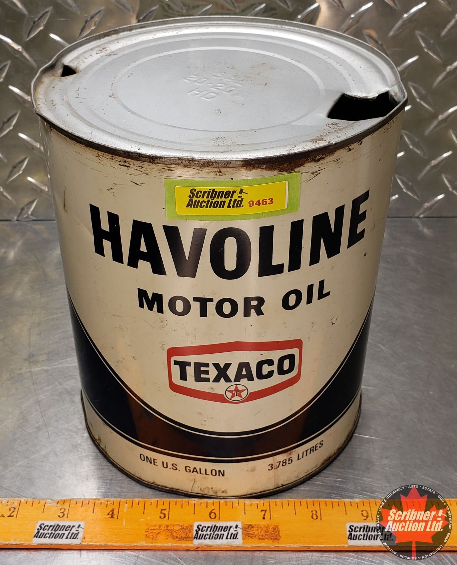 OIL TIN : Texaco Havoline Motor Oil (8"H x 6-1/2"Dia) (SEE PICS!)