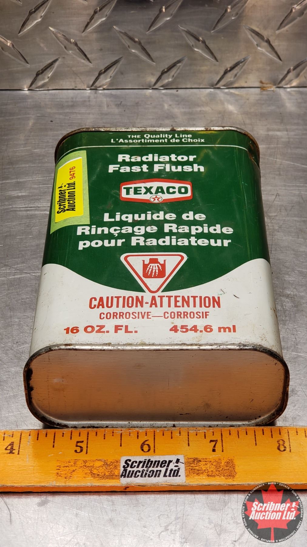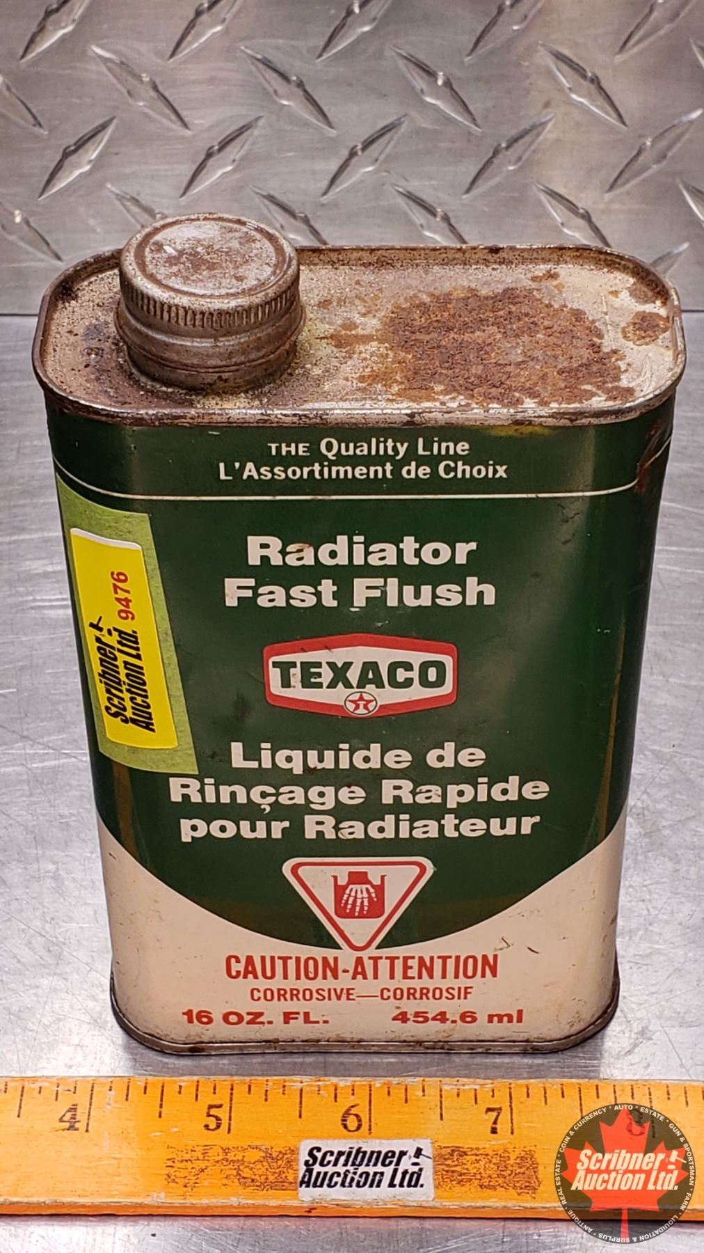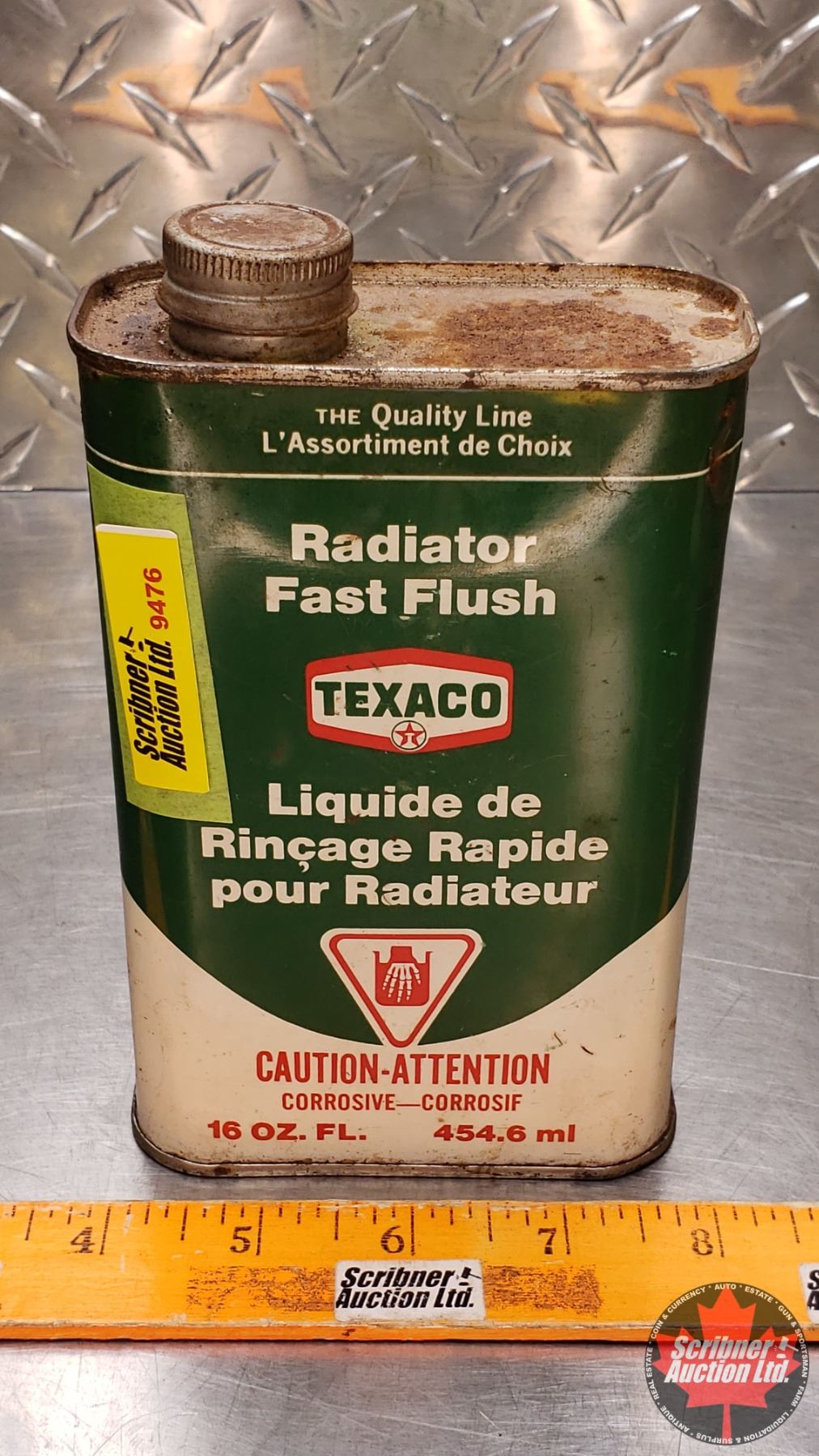 OIL TIN : Texaco Radiator Fast Flush (6-1/2"H x 4"W x 1-3/4"D) (SEE PICS!)