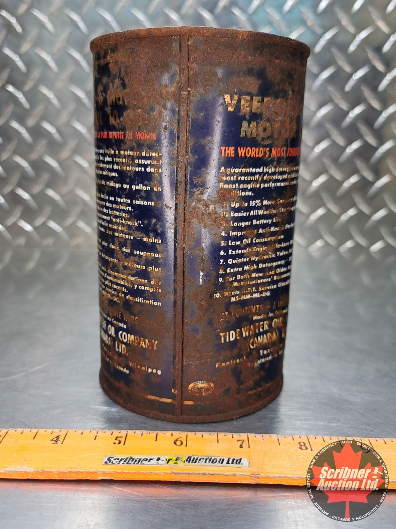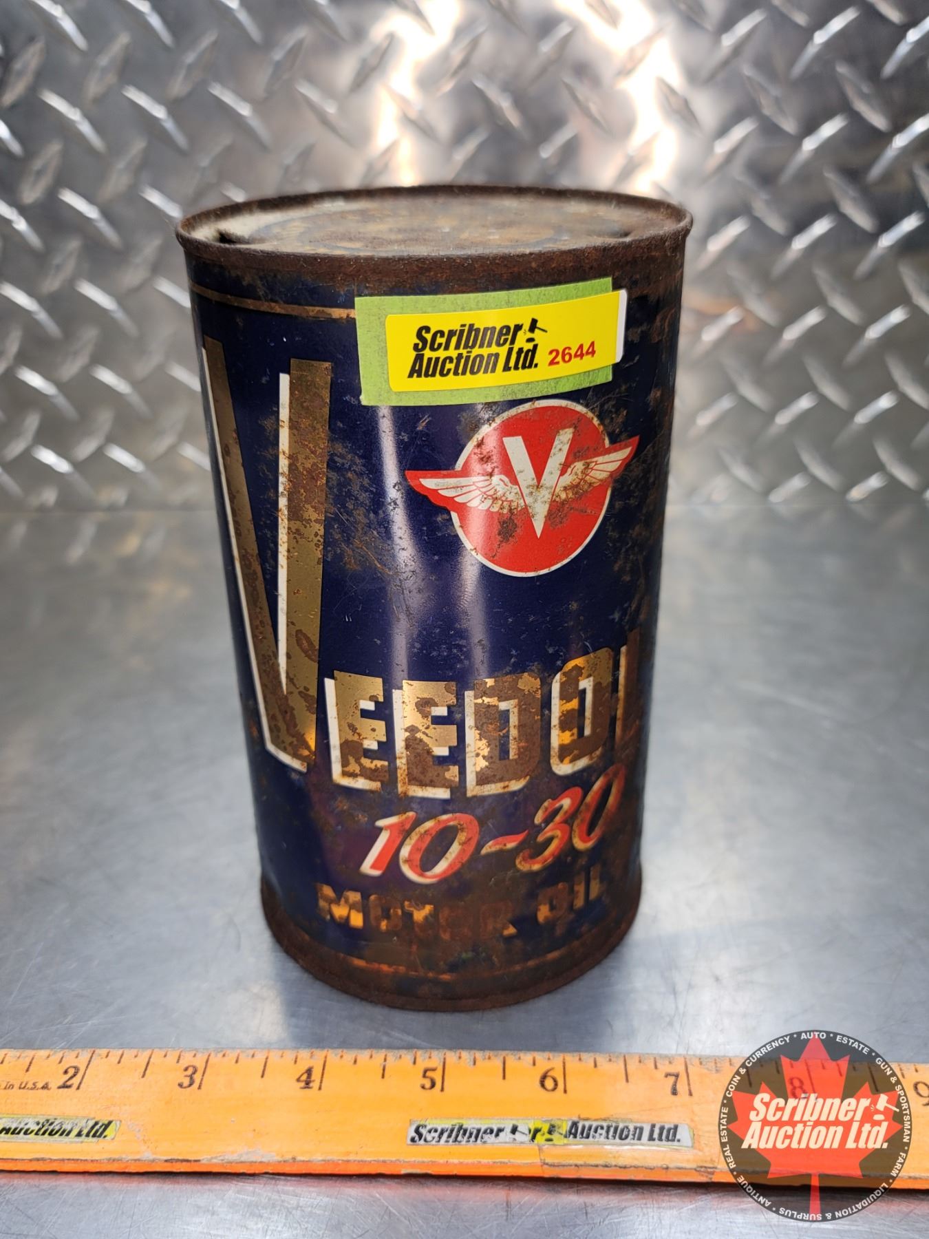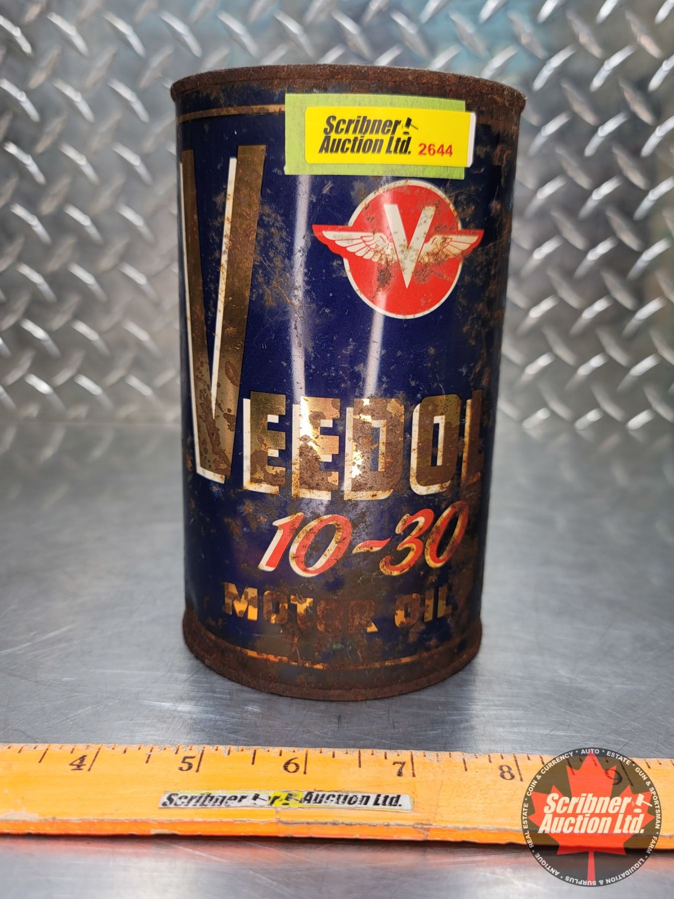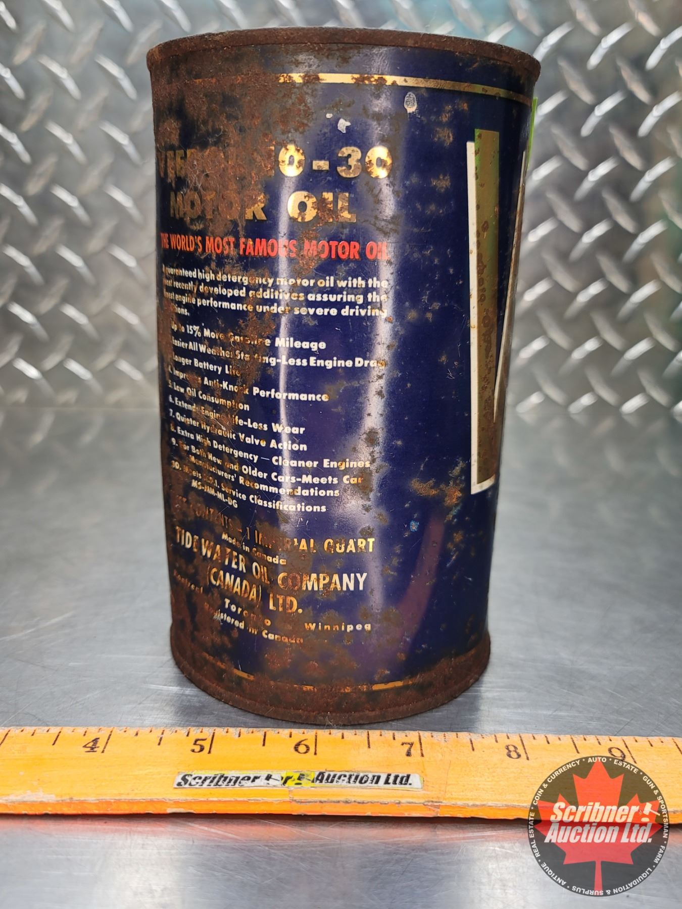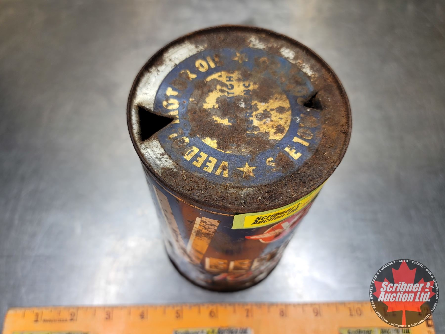 OIL TIN : VEEDOL 10-30 Motor Oil (6-1/2"H x 4"Dia) (SEE PICS!)