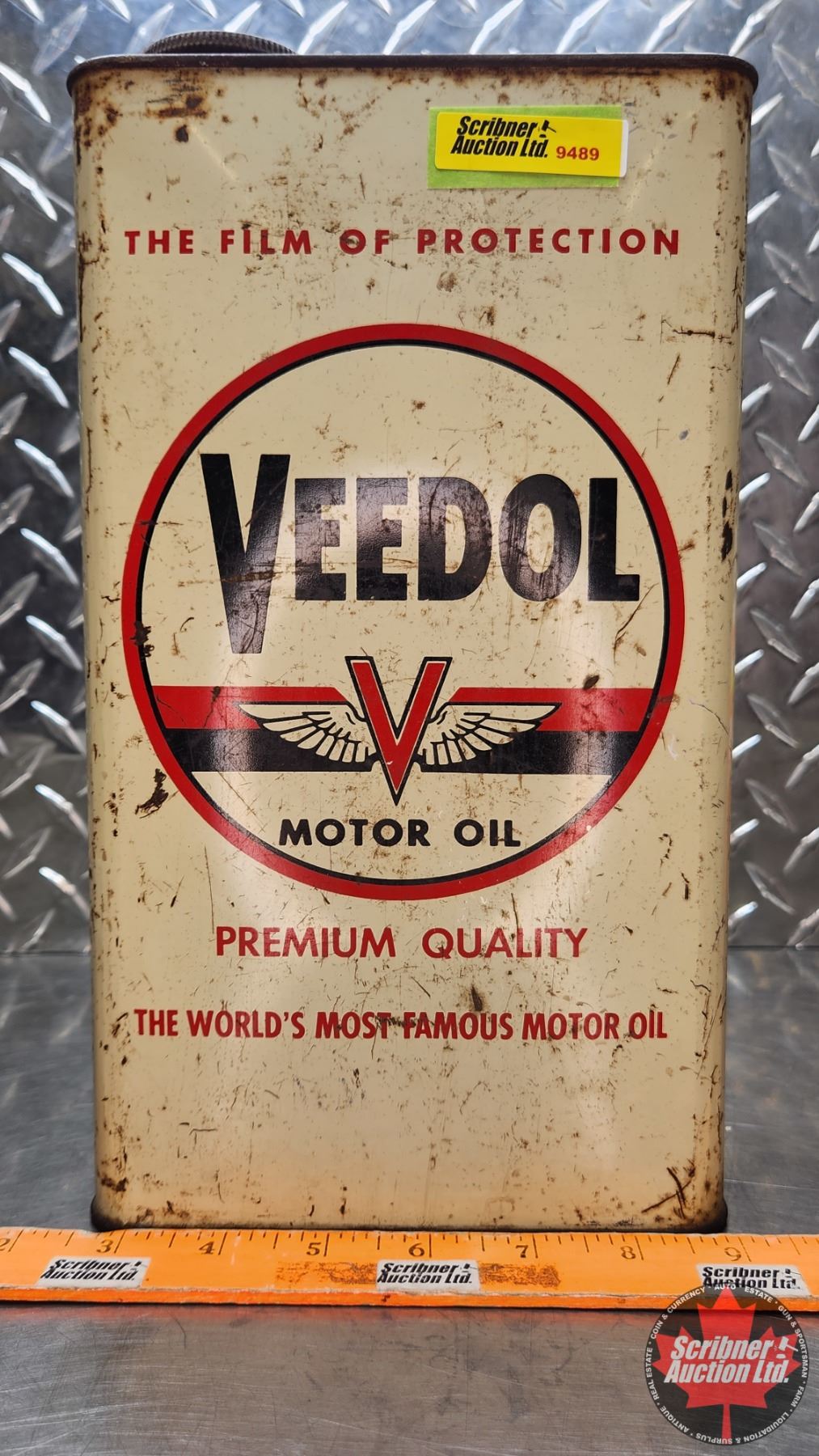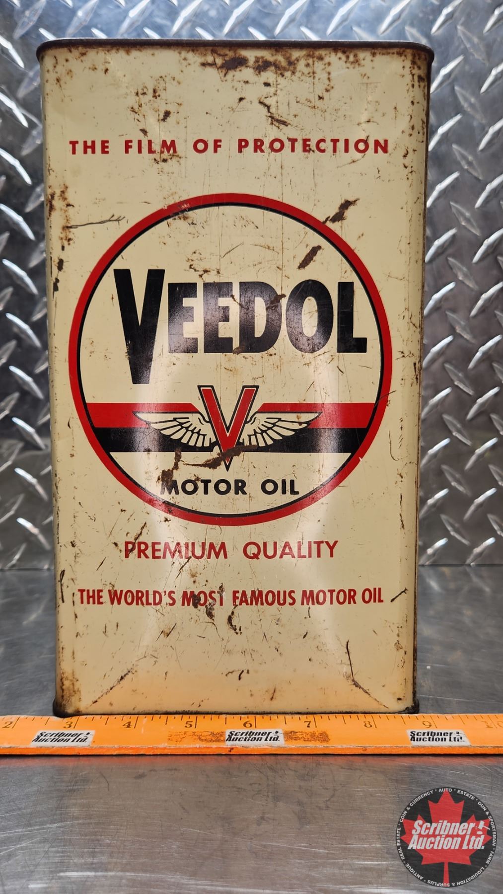 OIL TIN : Veedol Motor Oil (12"H x 6-1/2"W x 4"D) (SEE PICS!)