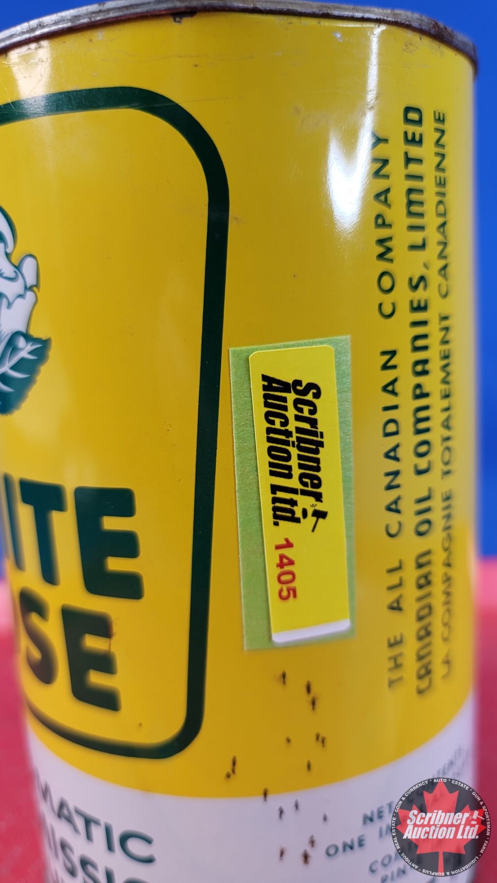OIL TIN: WHITE ROSE Transmission Fluid (FULL) (6-1/2"H x 4"Dia) (SEE PICS!)