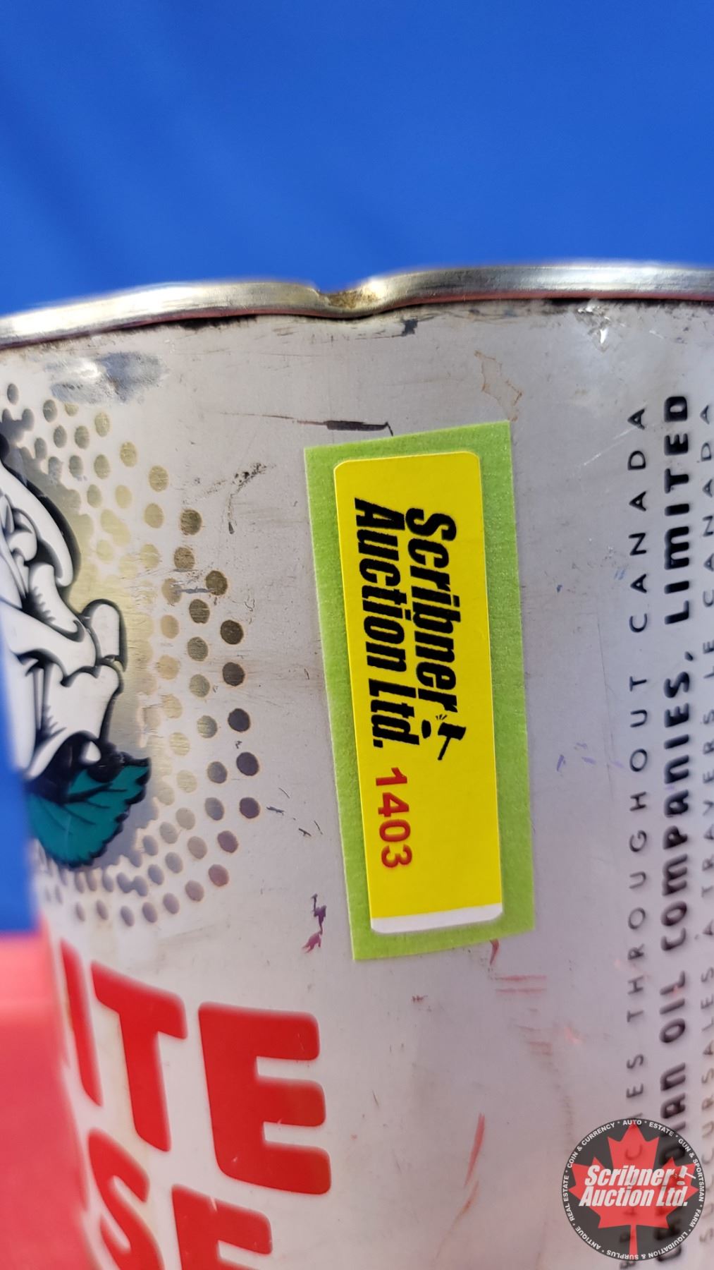 OIL TIN: WHITE ROSE ULTRA MOTOR OIL (6-1/2"H x 4"Dia) (SEE PICS!)