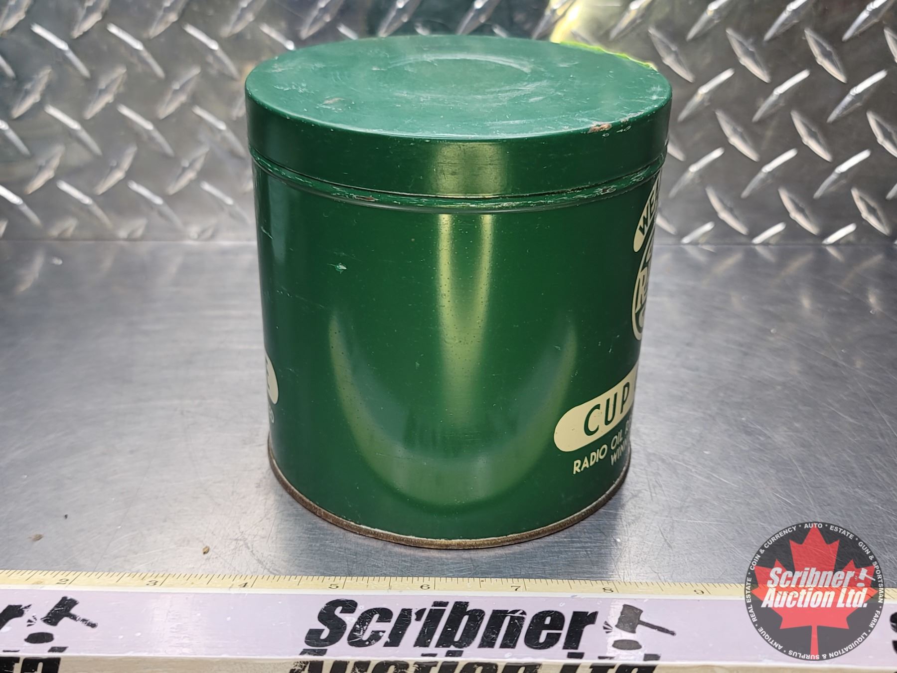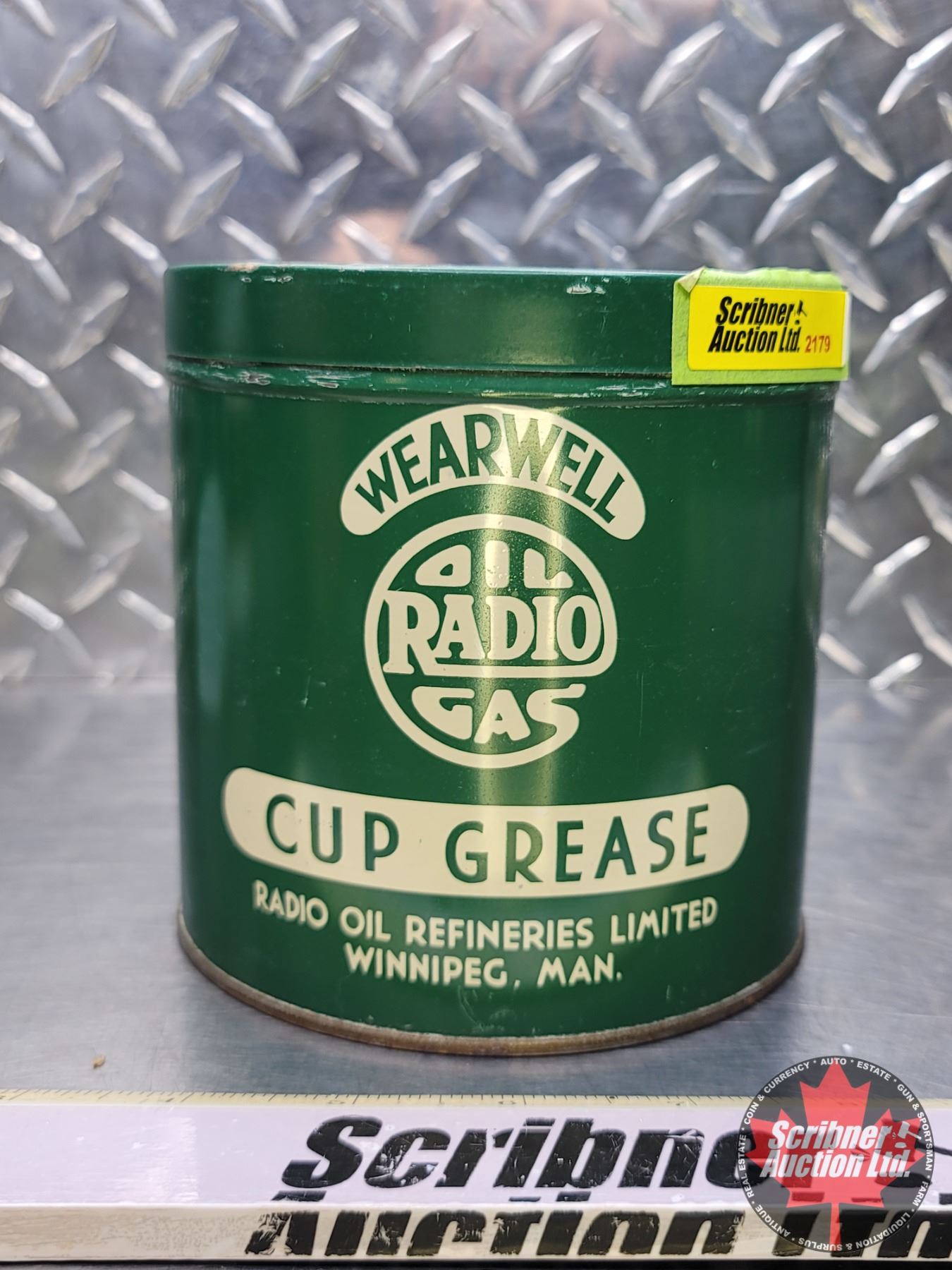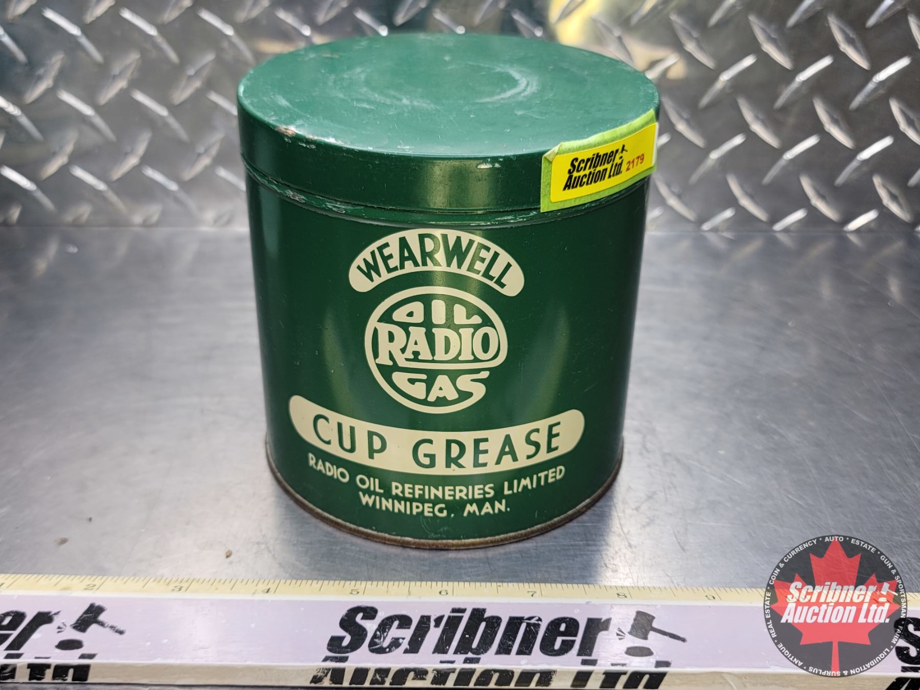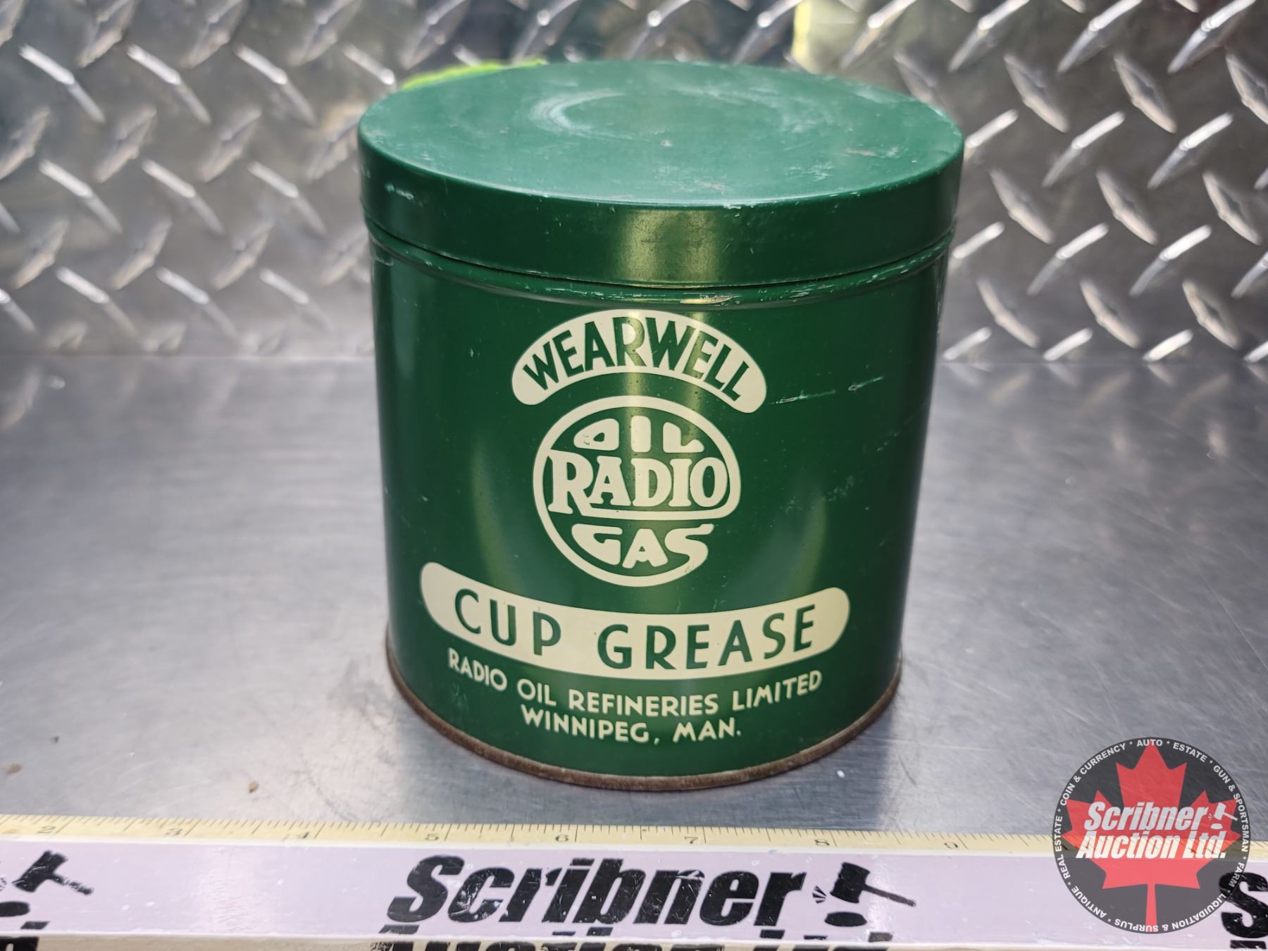 OIL TIN : Wearwell "Oil Radio Gas" Cup Grease Tin (5"H x 5"Dia) (SEE PICS!)