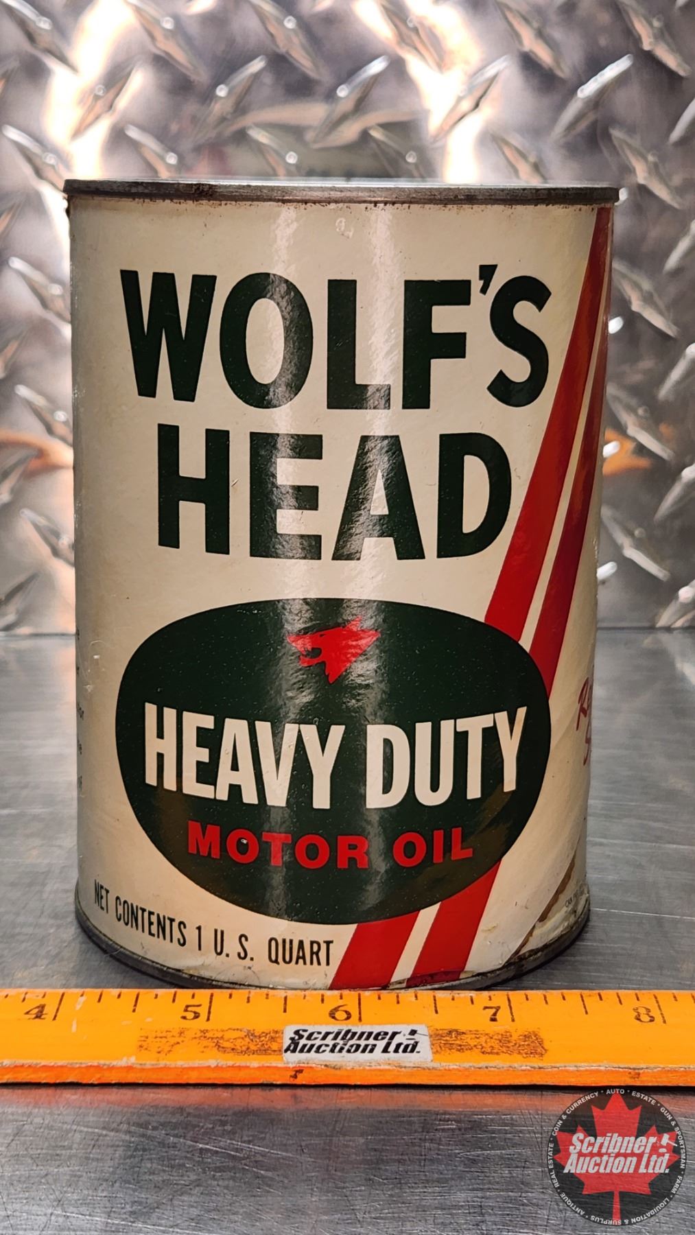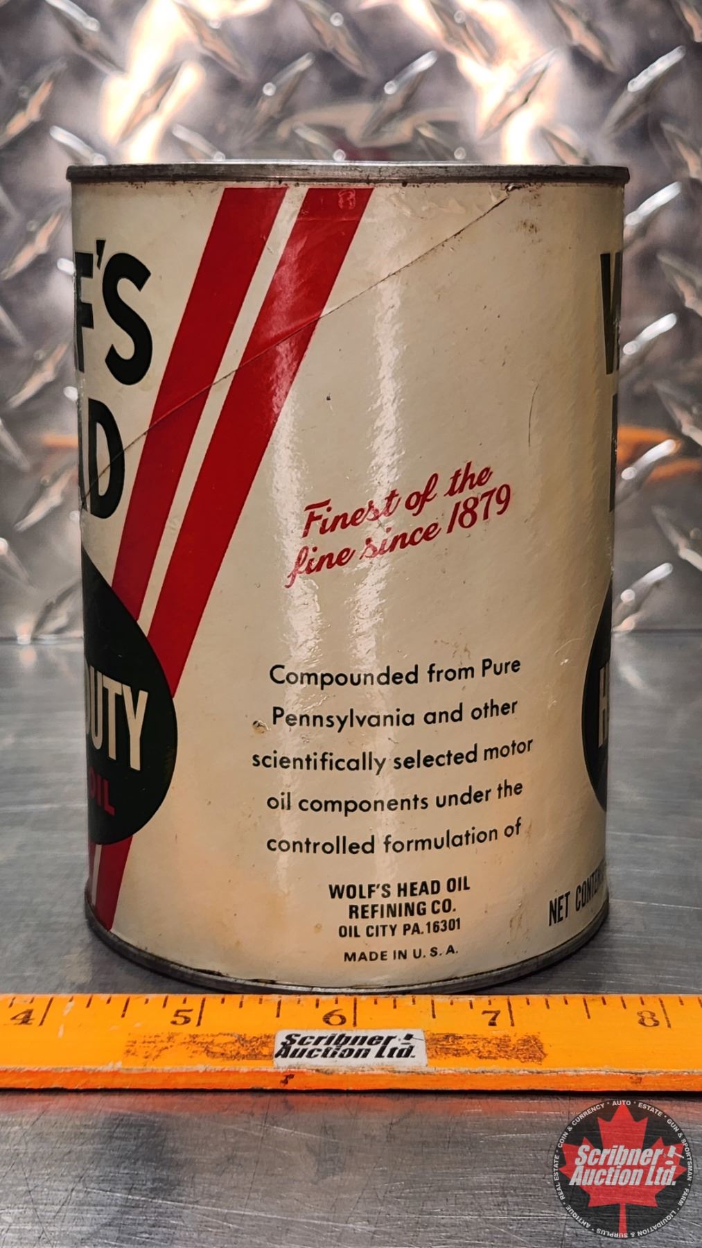 OIL TIN : Wolf's Head Heavy Duty Motor Oil (Cardboard) (5-3/4"H x 4"Dia) (SEE PICS!)
