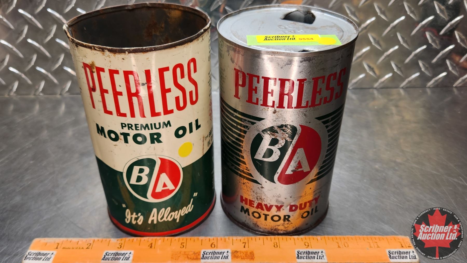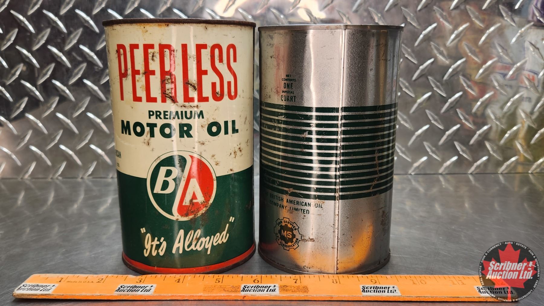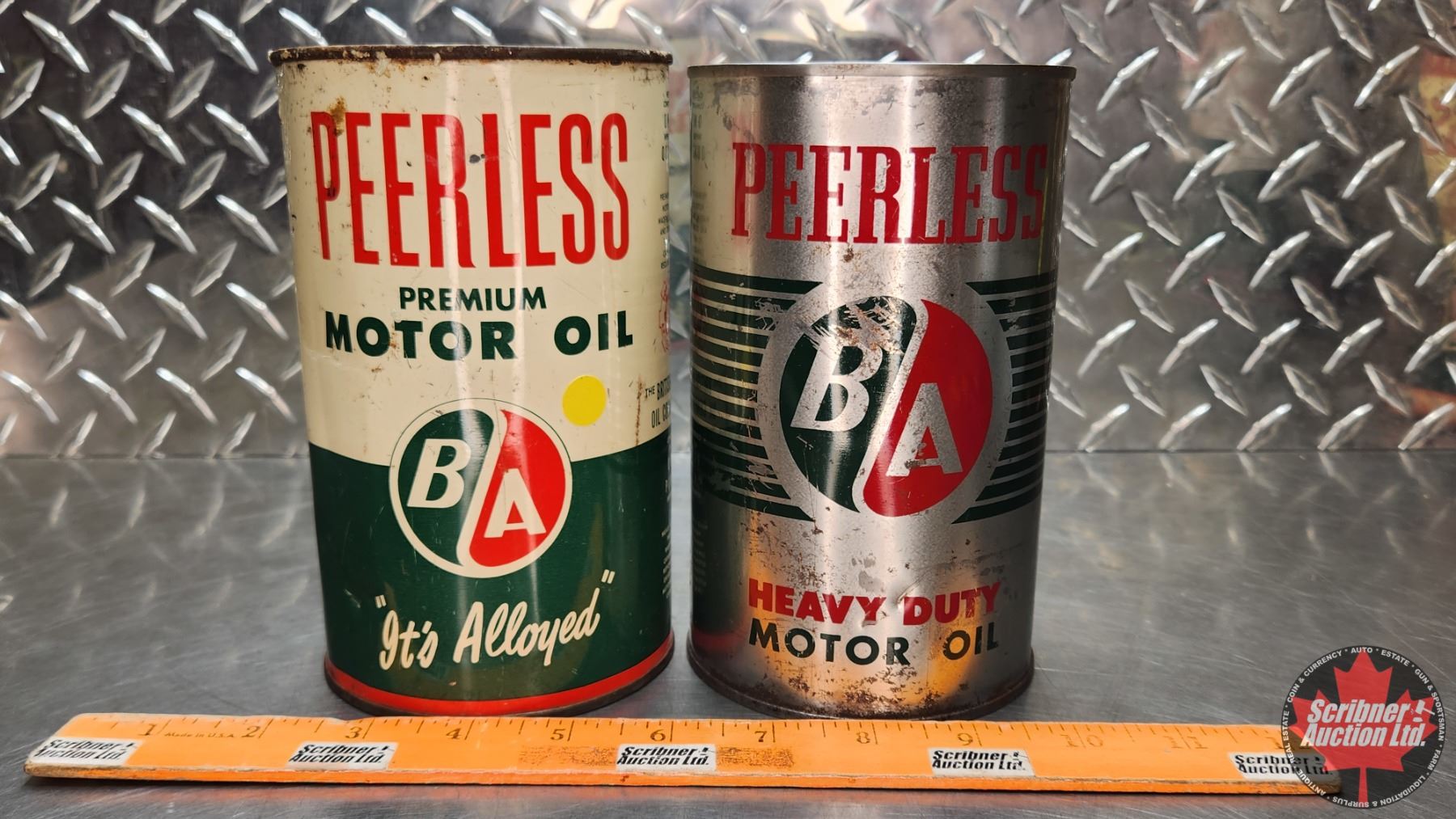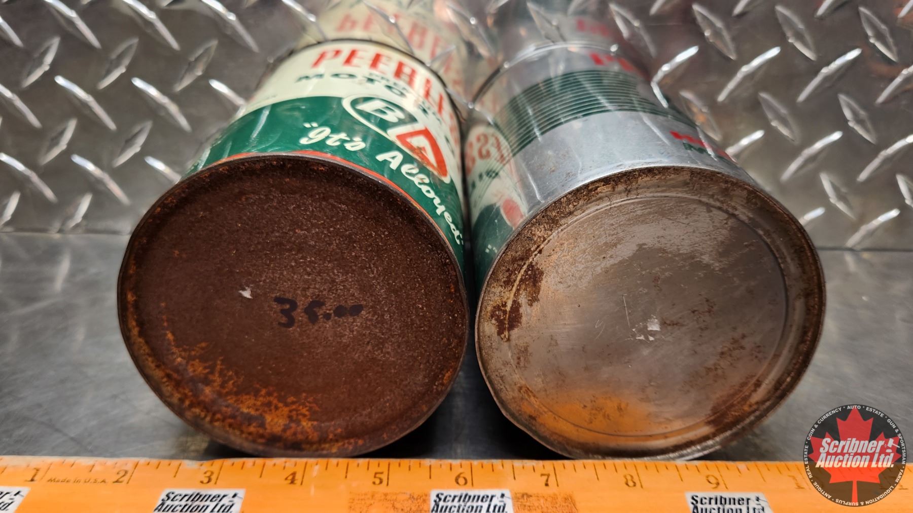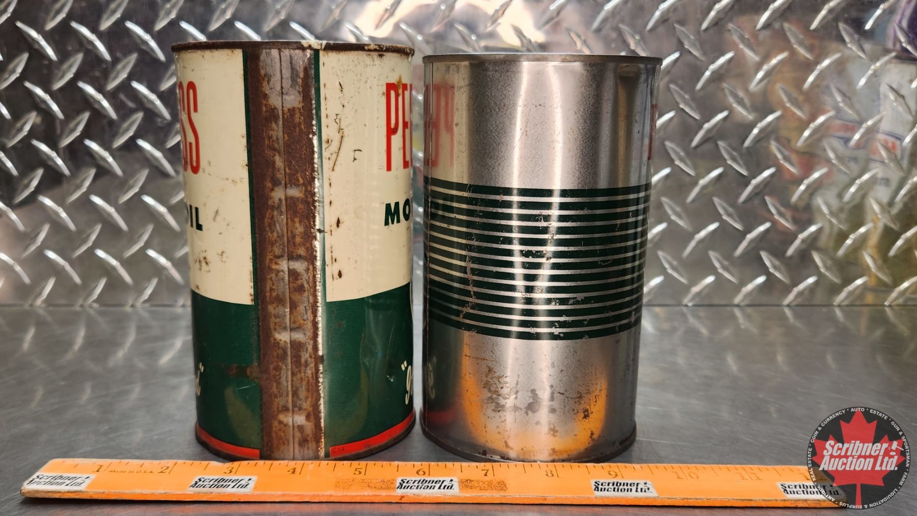 OIL TINS (2) : B/A Peerless (6-3/4"H x 4"Dia) (SEE PICS!)