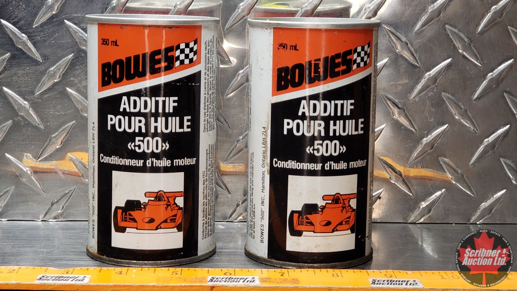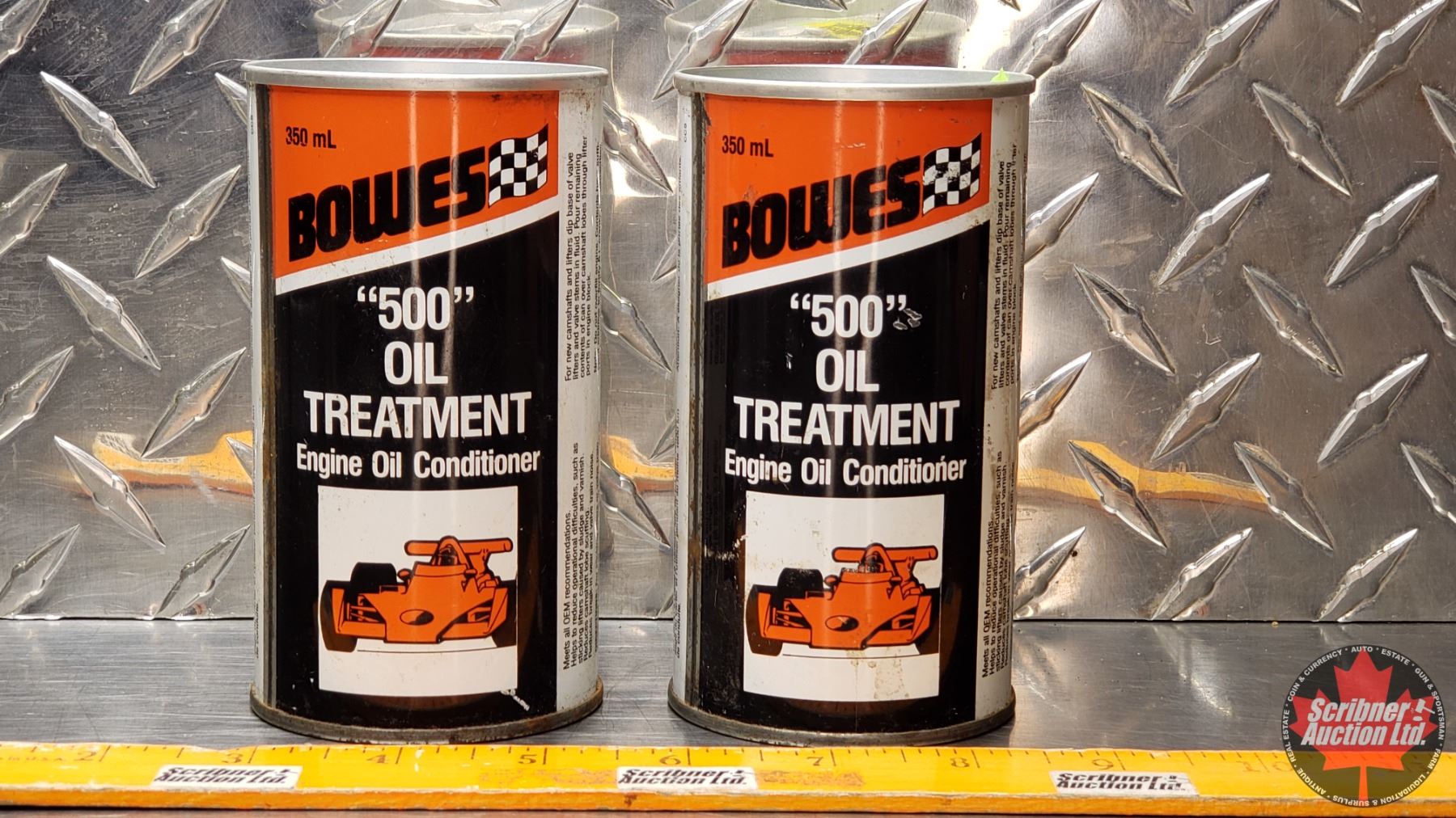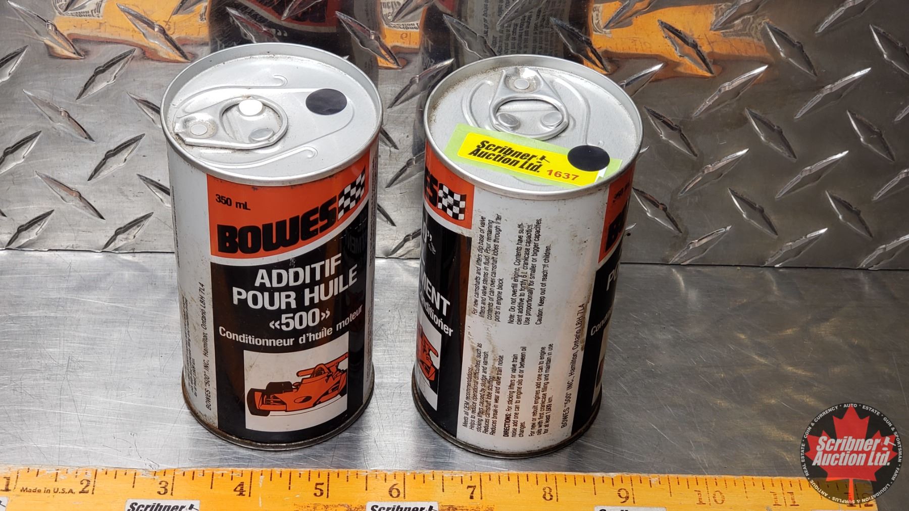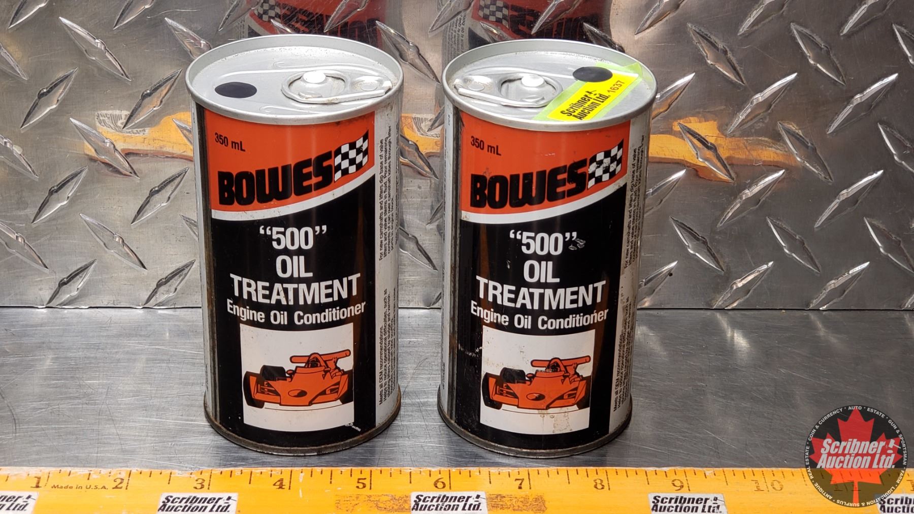 OIL TINS (2): BOWES 500 OIL TREATMENT (Both FULL) (4-3/4"H x 2-1/2"Dia) (SEE PICS!)