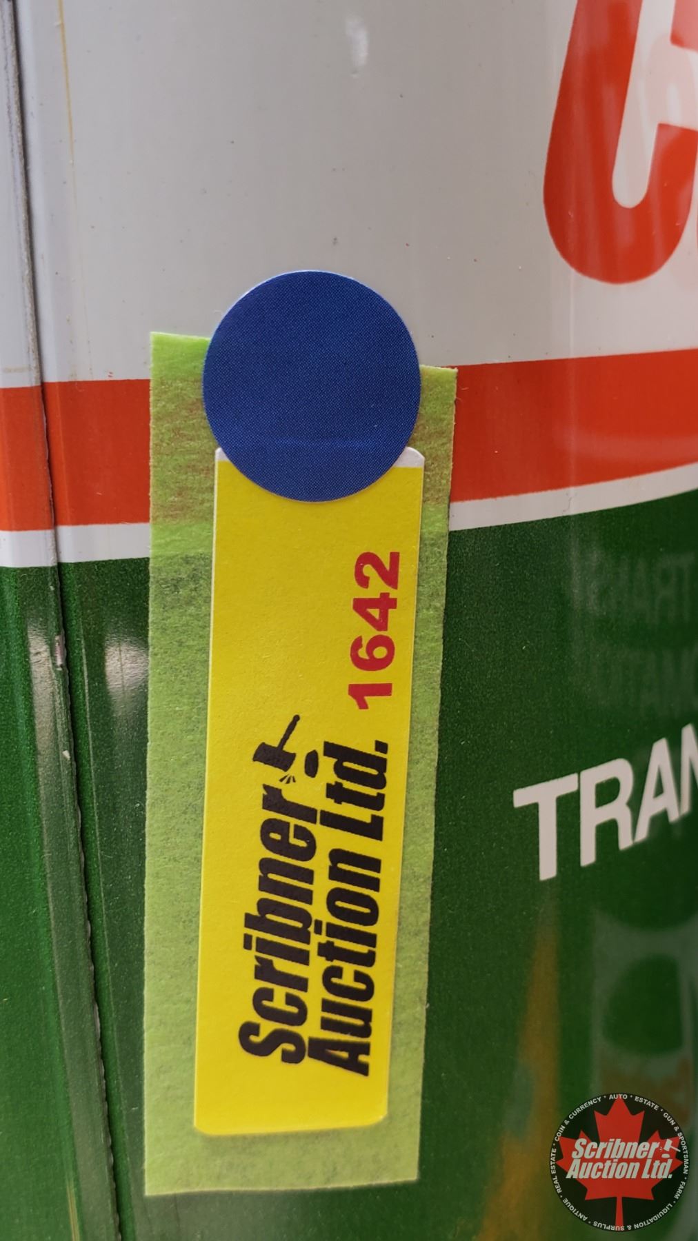 OIL TINS (2): CASTROL AUTOMATIC TRANSMISSION FLUID TQ (Both FULL) (6-1/2"H x 4"Dia) (SEE PICS!)