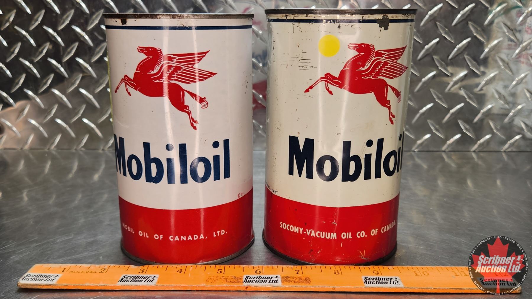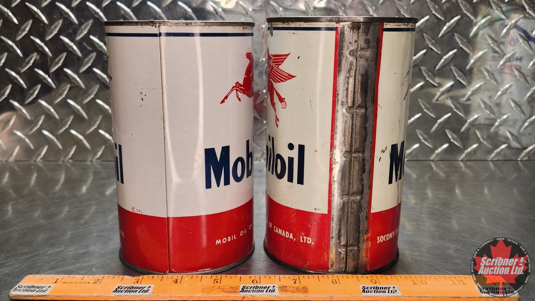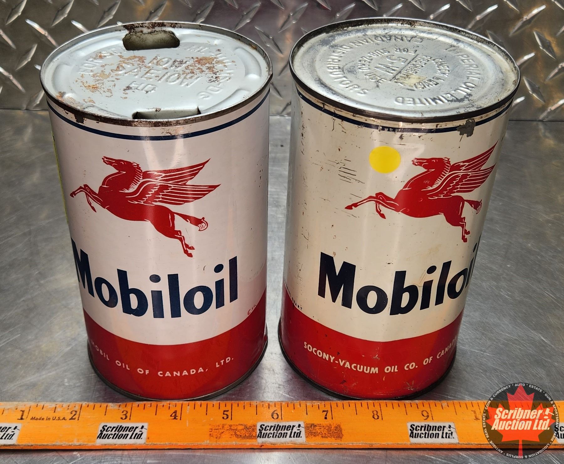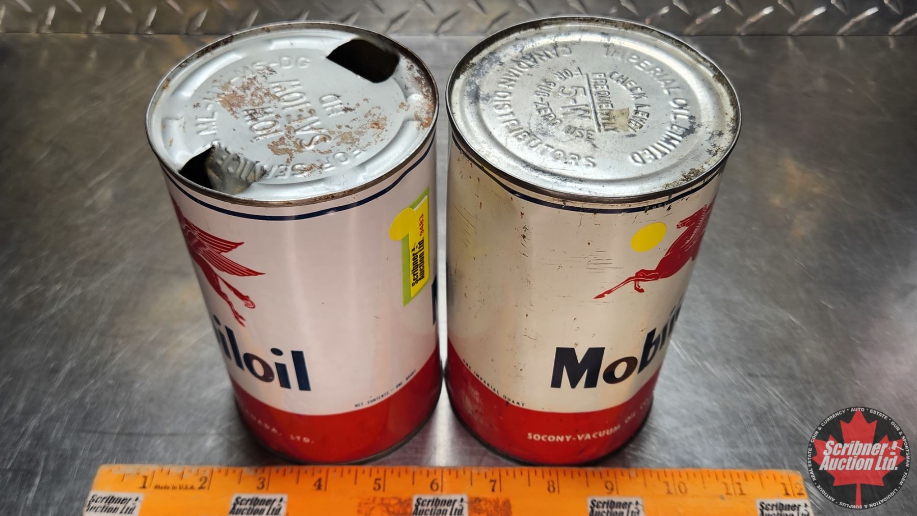 OIL TINS (2) : Mobiloil (6-1/2"H x 4"Dia) (SEE PICS!)