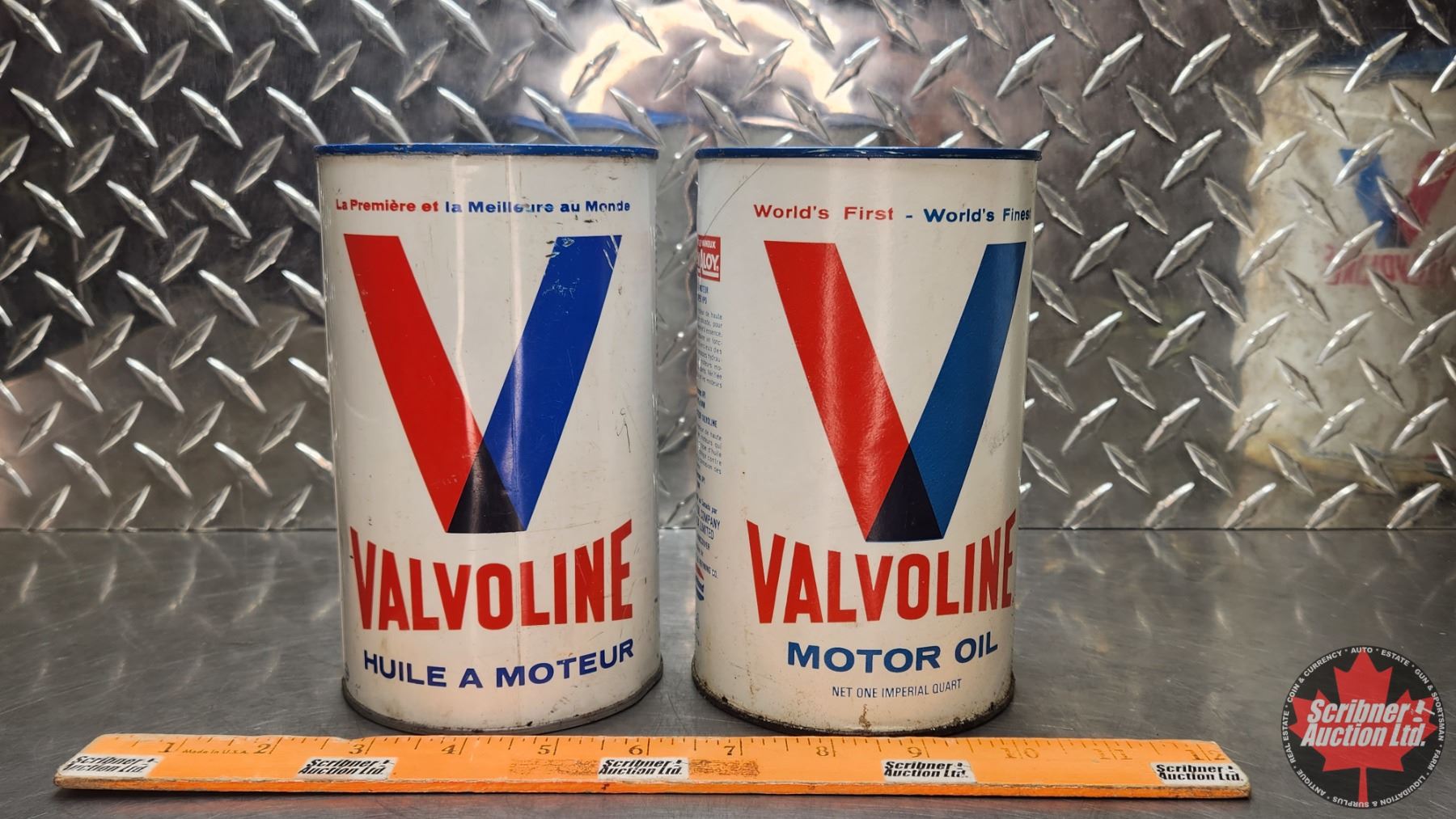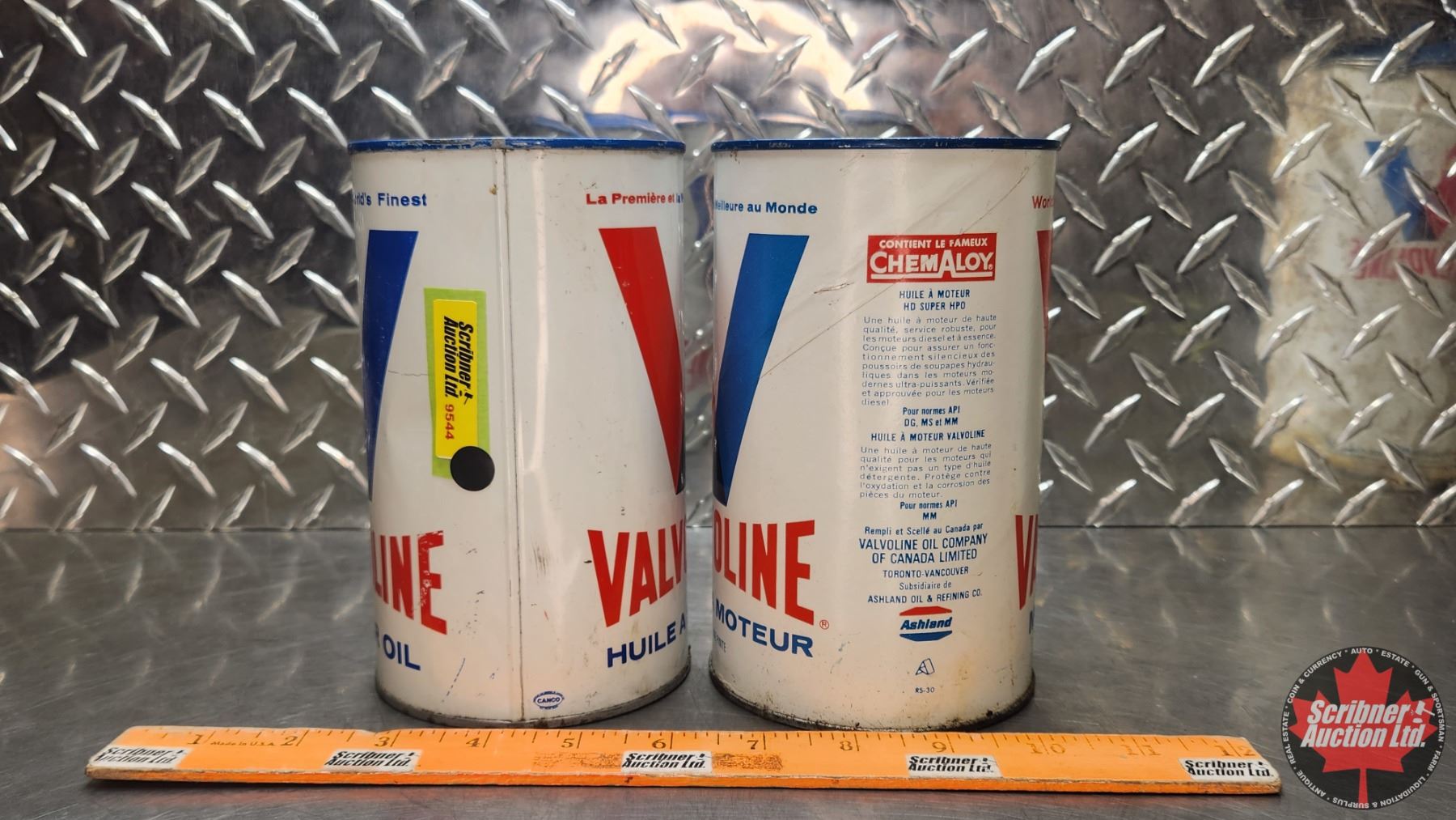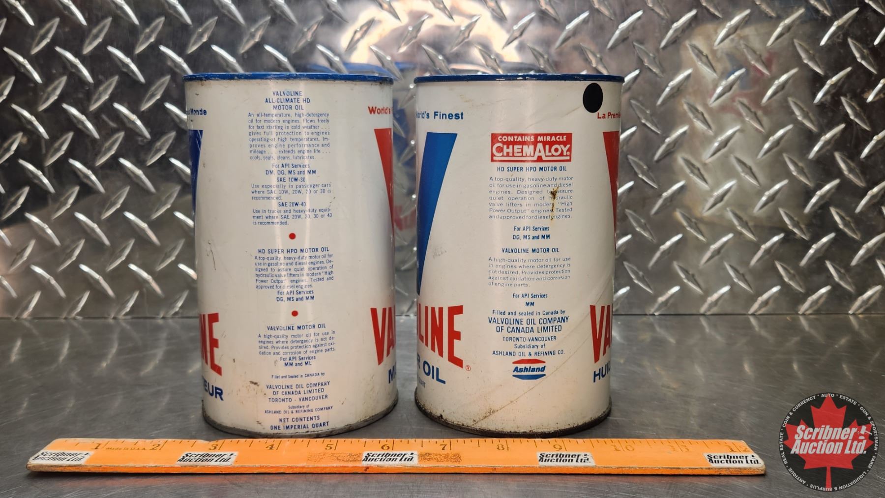 OIL TINS (2) : Valvoline Motor Oil (One Cardboard) (6-1/2"H x 4"Dia) (SEE PICS!)