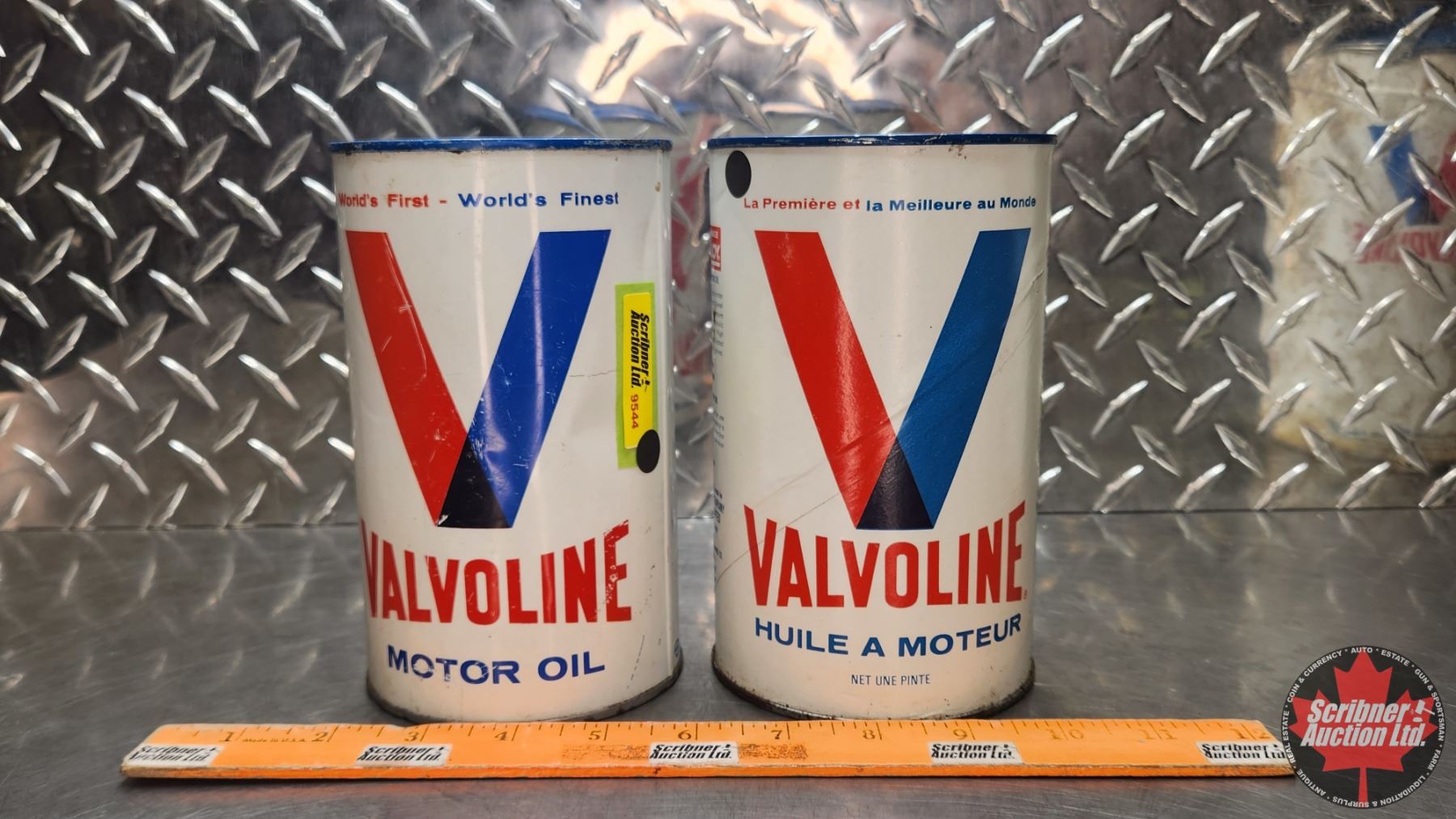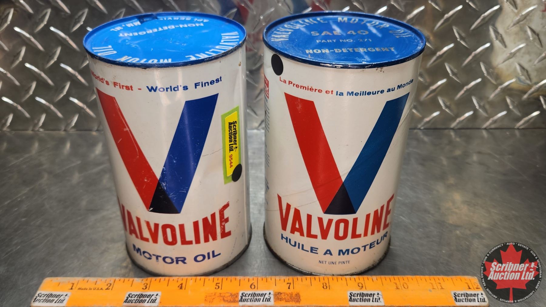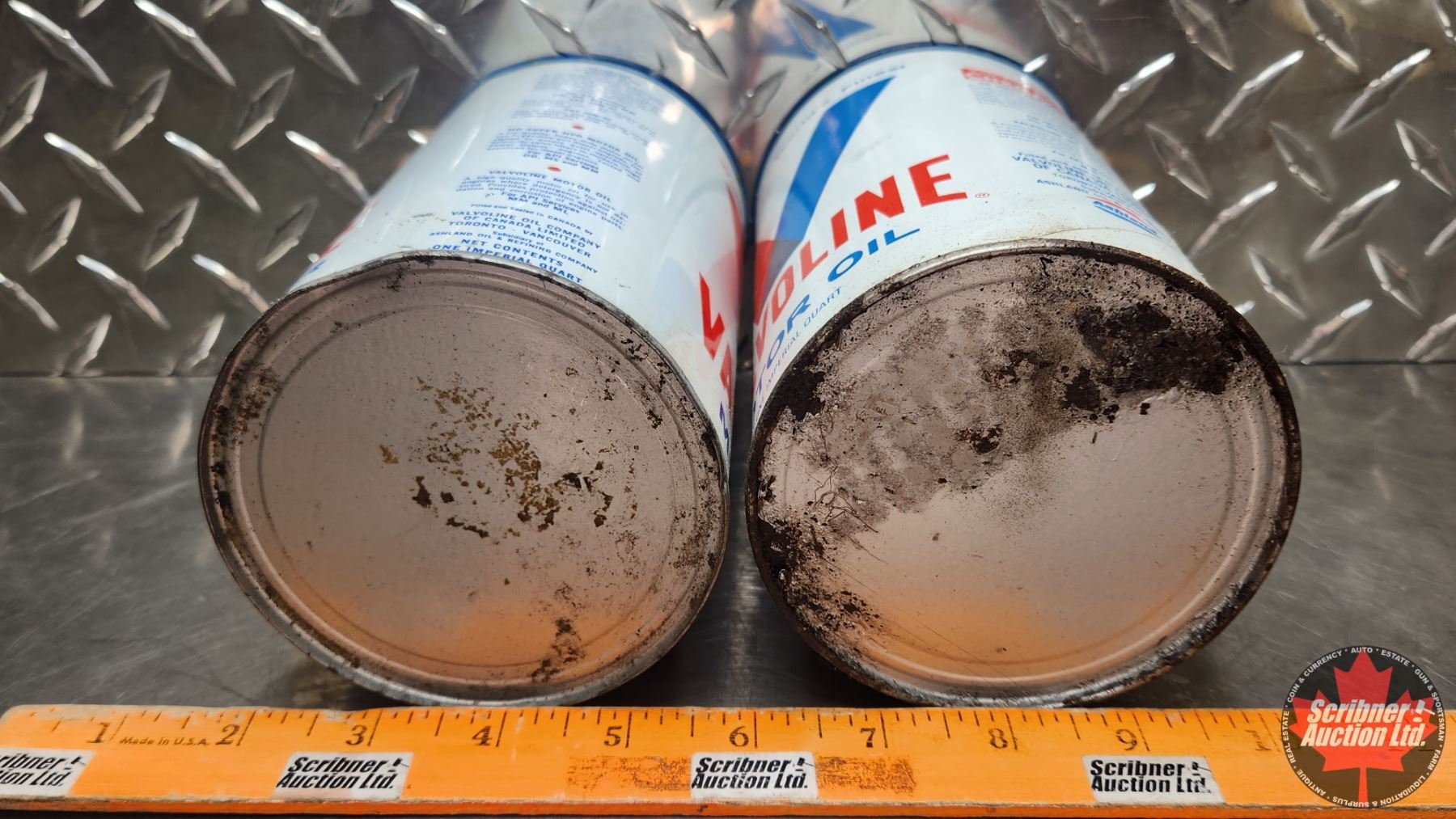 OIL TINS (2) : Valvoline Motor Oil (One Cardboard) (6-1/2"H x 4"Dia) (SEE PICS!)