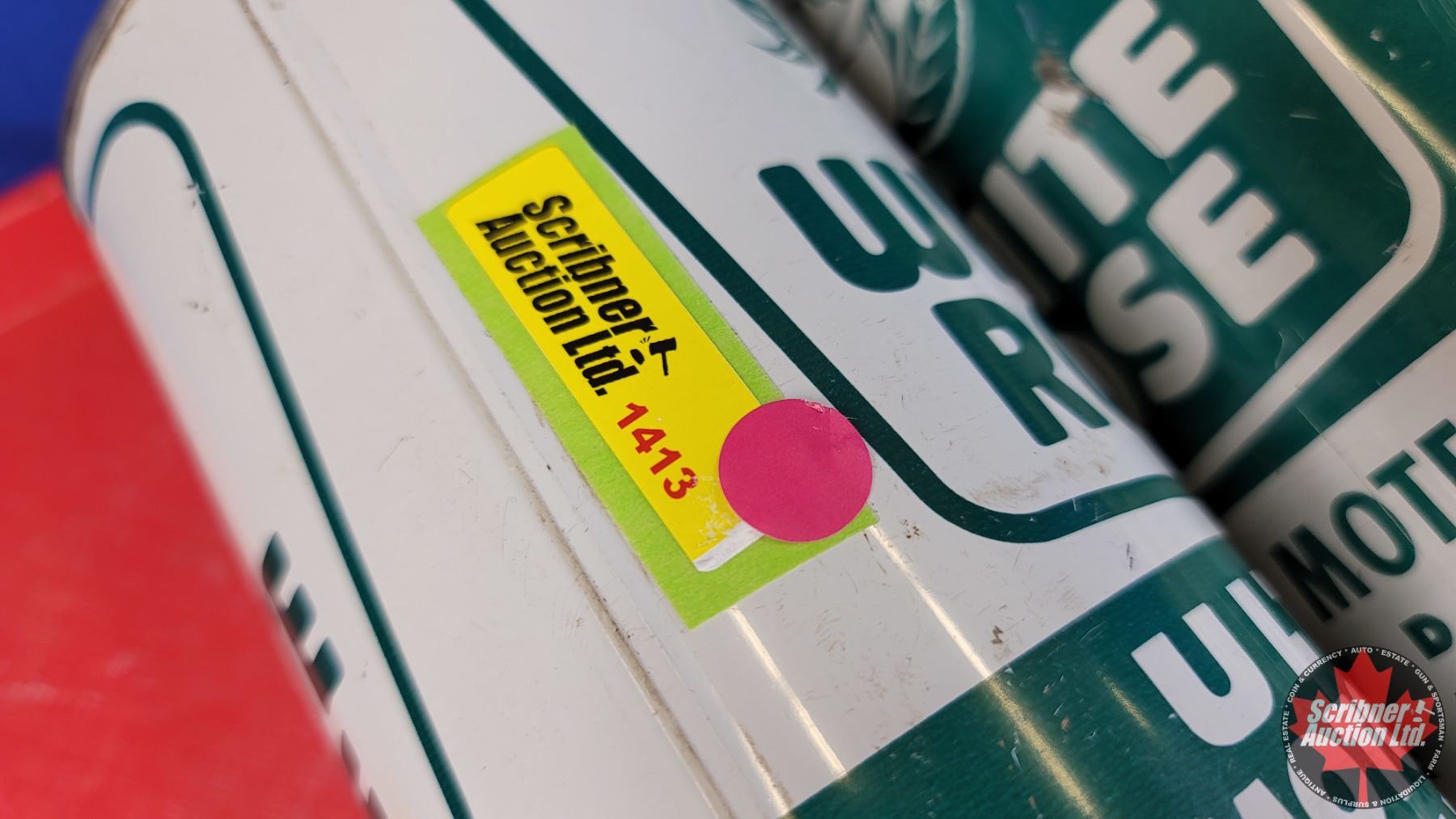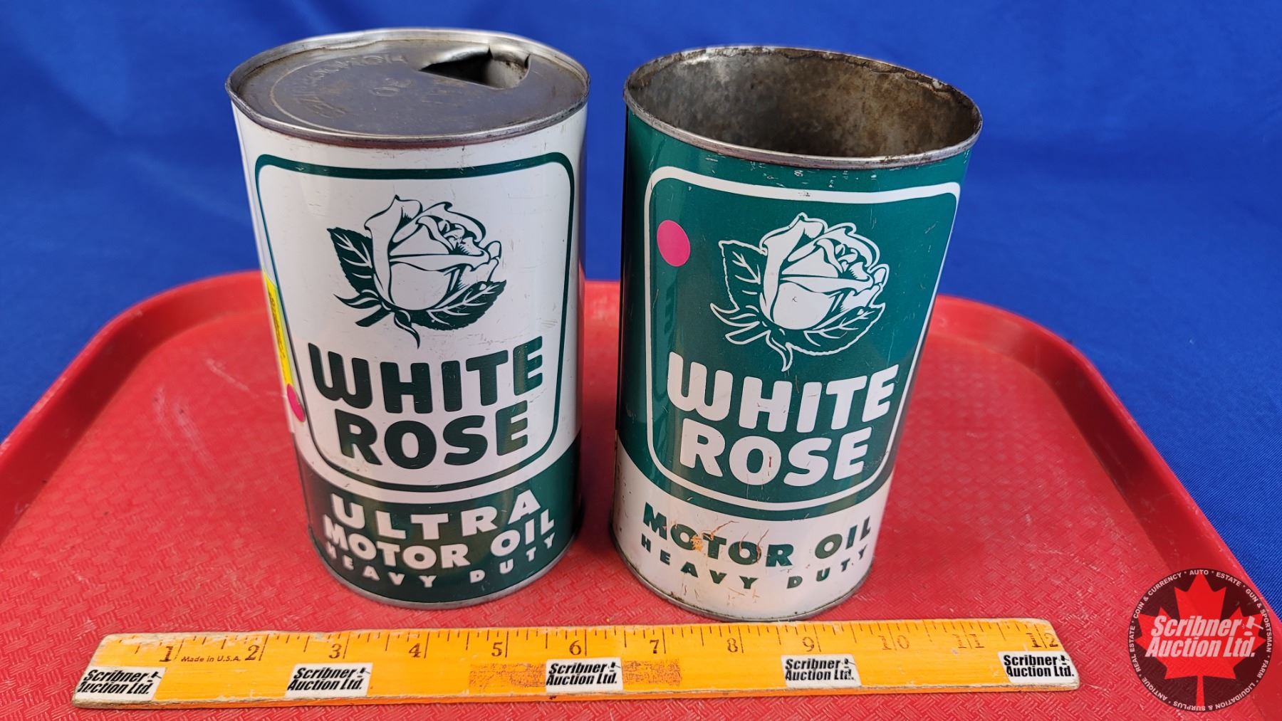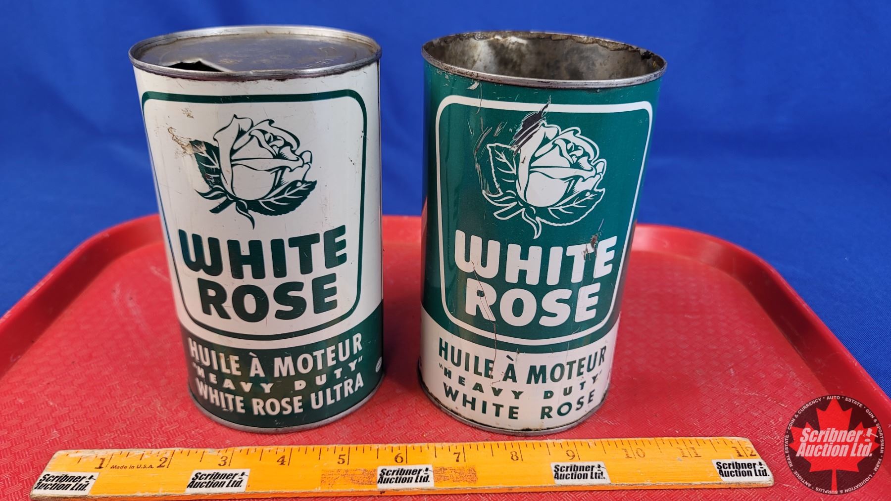 OIL TINS (2): WHITE ROSE - Variety Green & White (6-1/2"H x 4"Dia) (SEE PICS!)