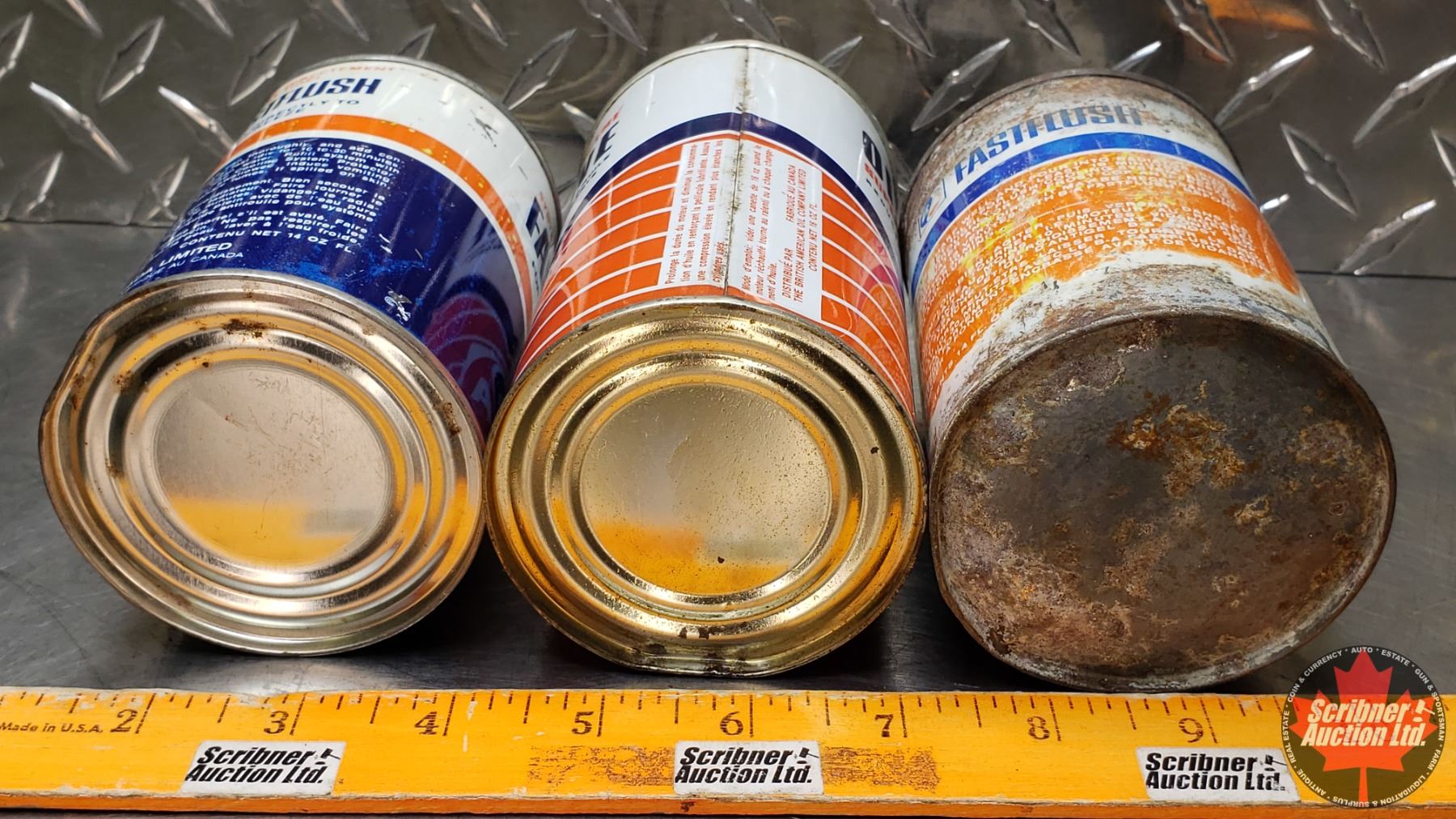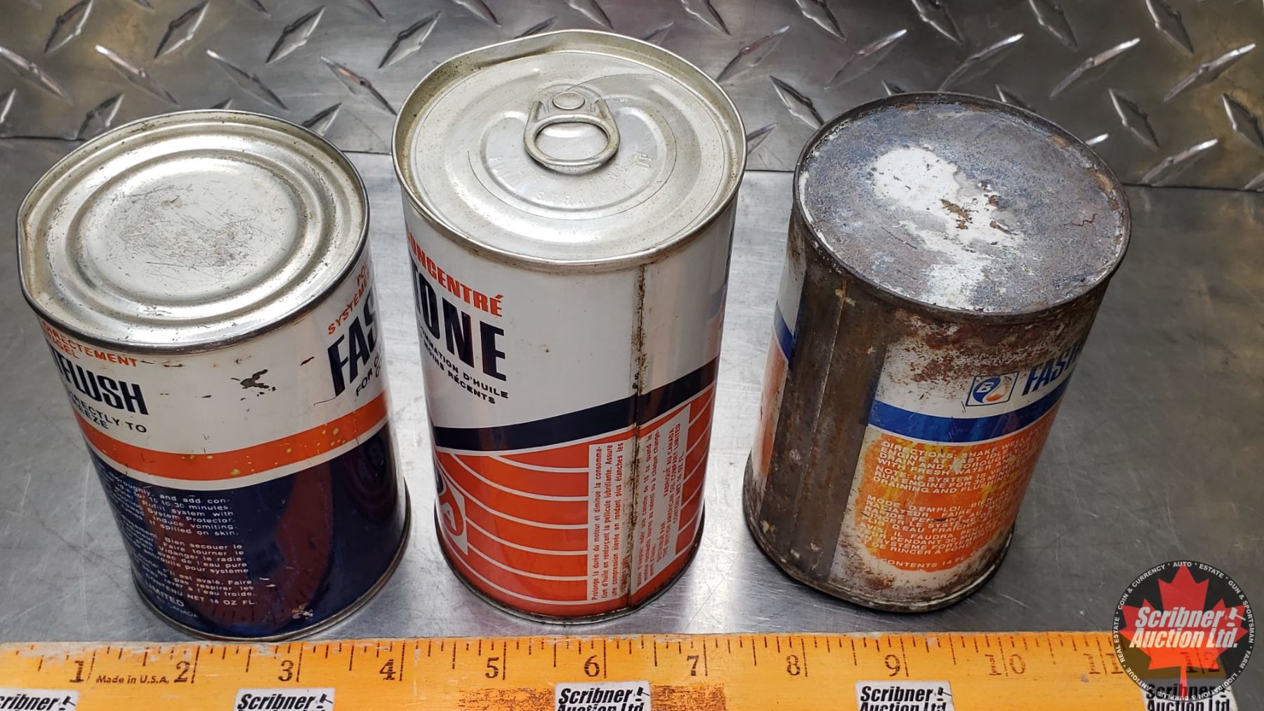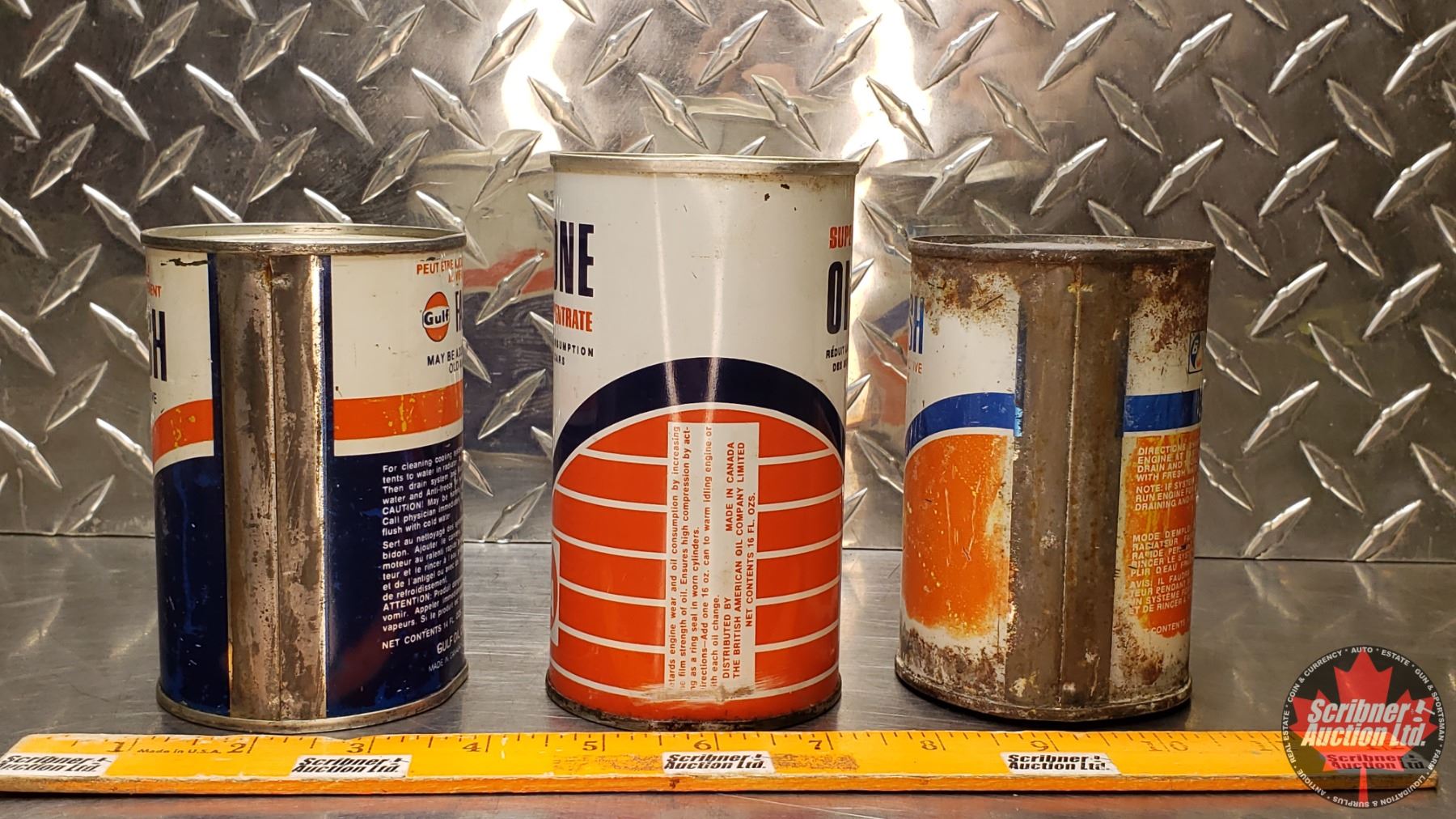 OIL TINS (3) : B/A Oiltone, B/A Fastflush & GULF Fastflush (All Full) ( 5-1/4"H Tallest) (SEE PICS!)