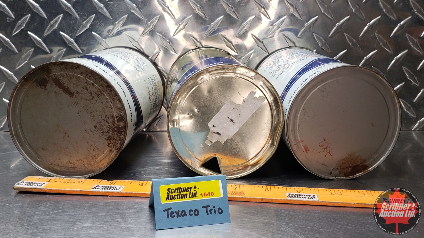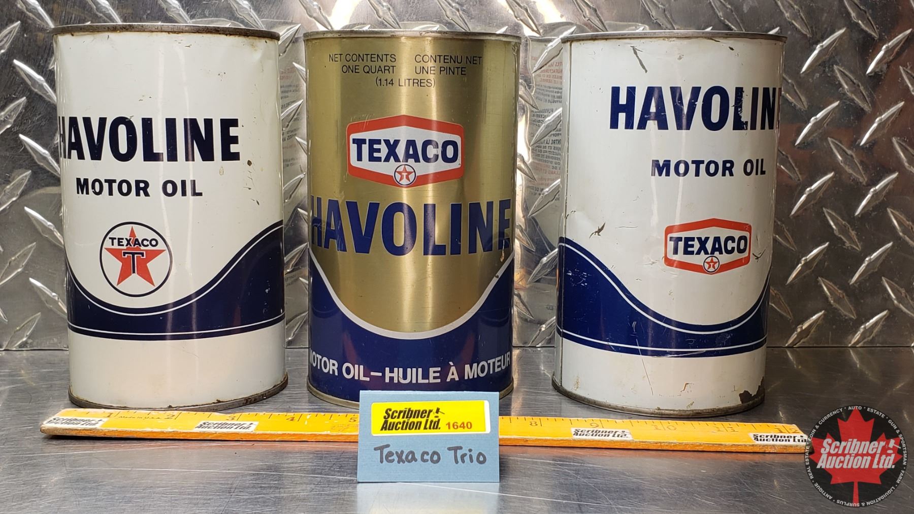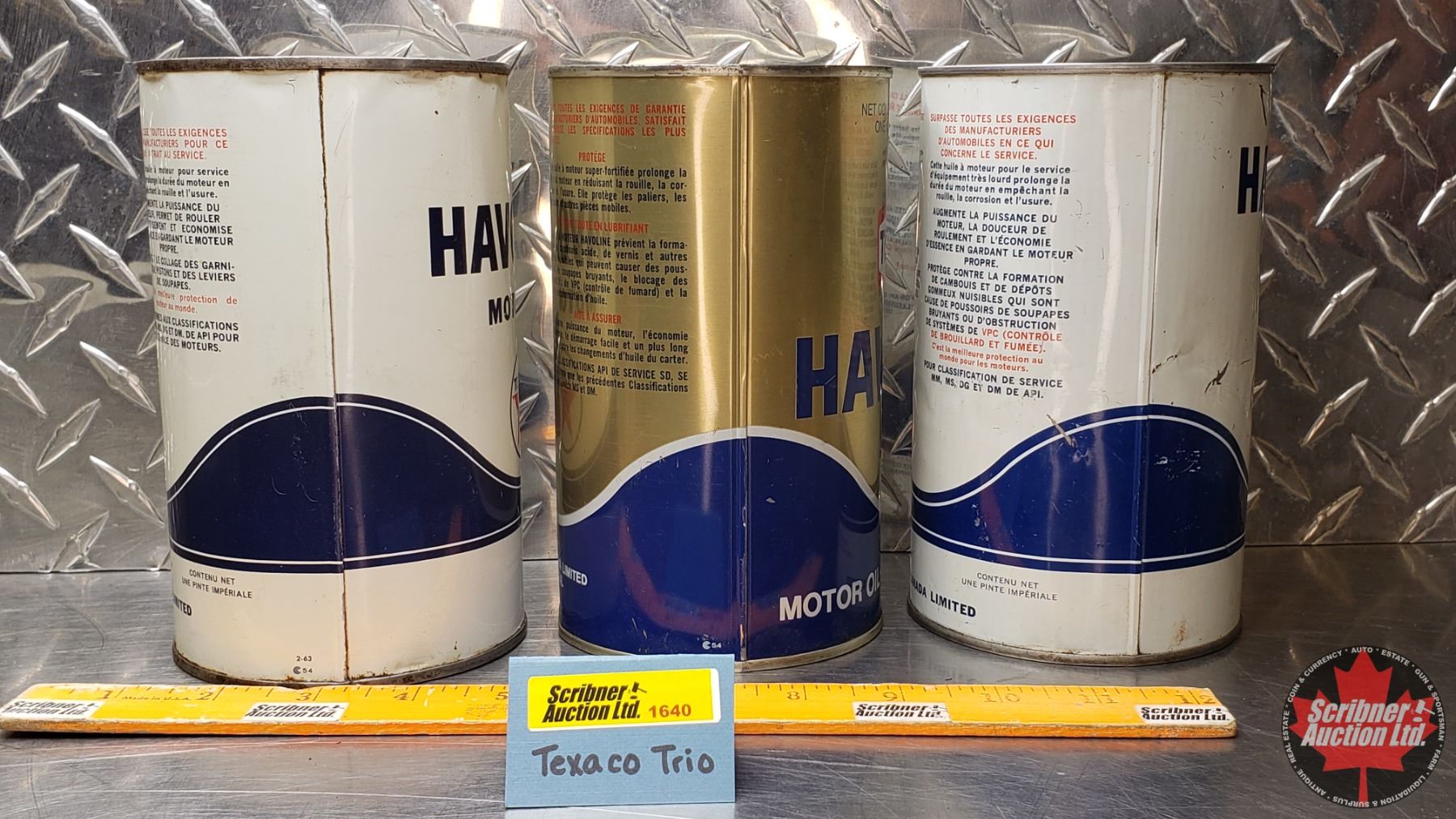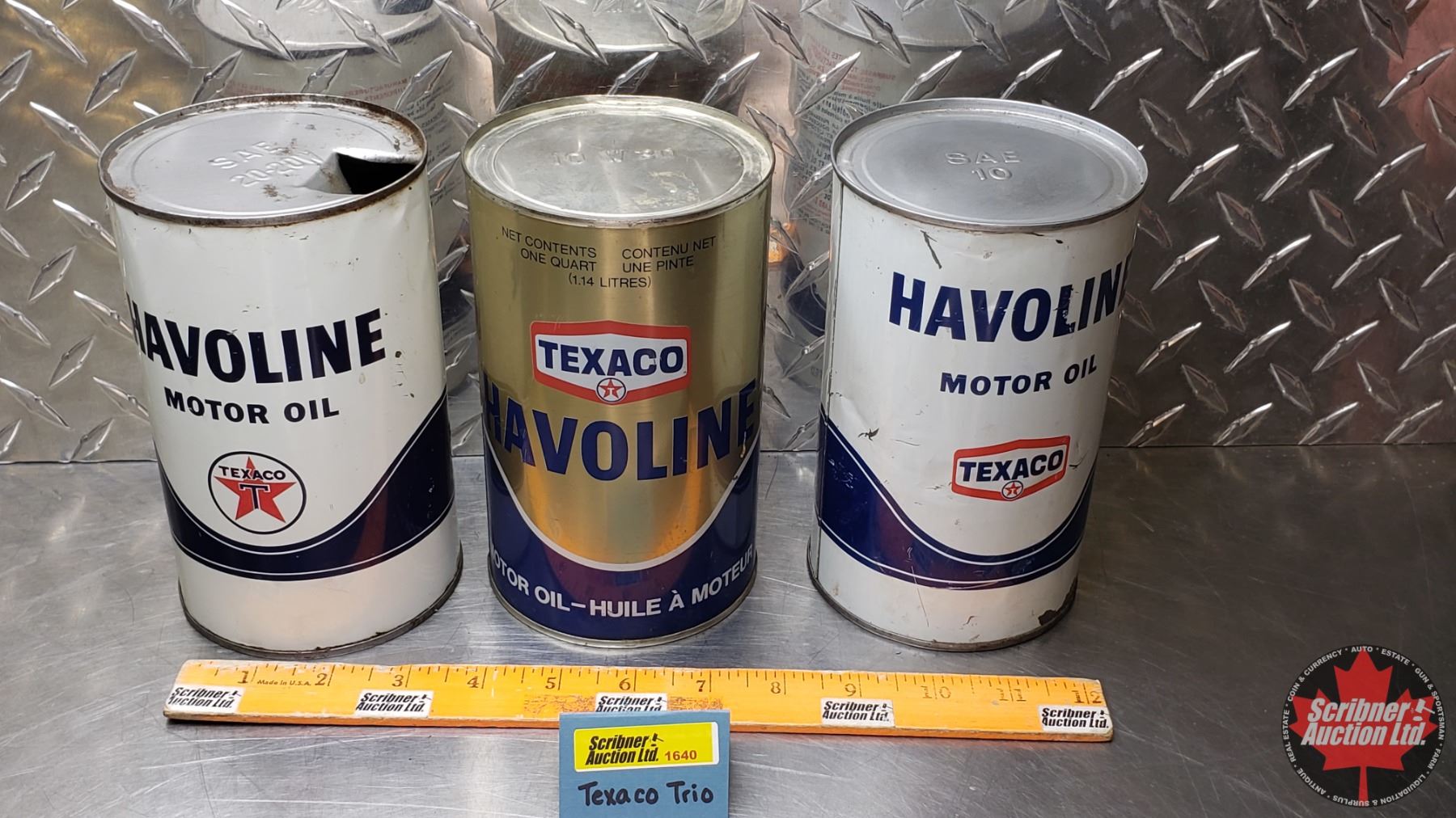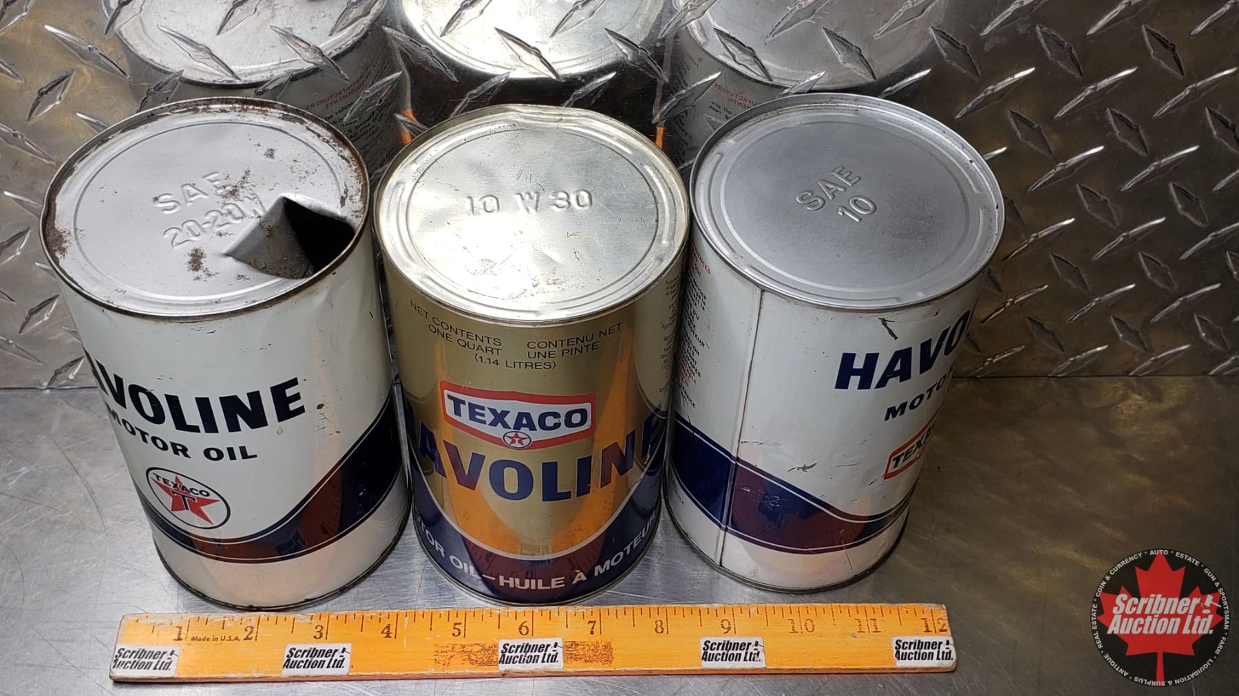 OIL TINS (3): TEXACO HAVOLINE MOTOR OIL (6-1/2"H x 4"Dia) (SEE PICS!)