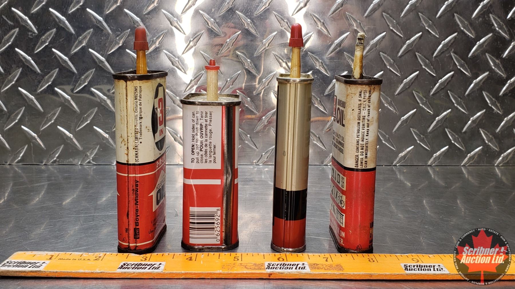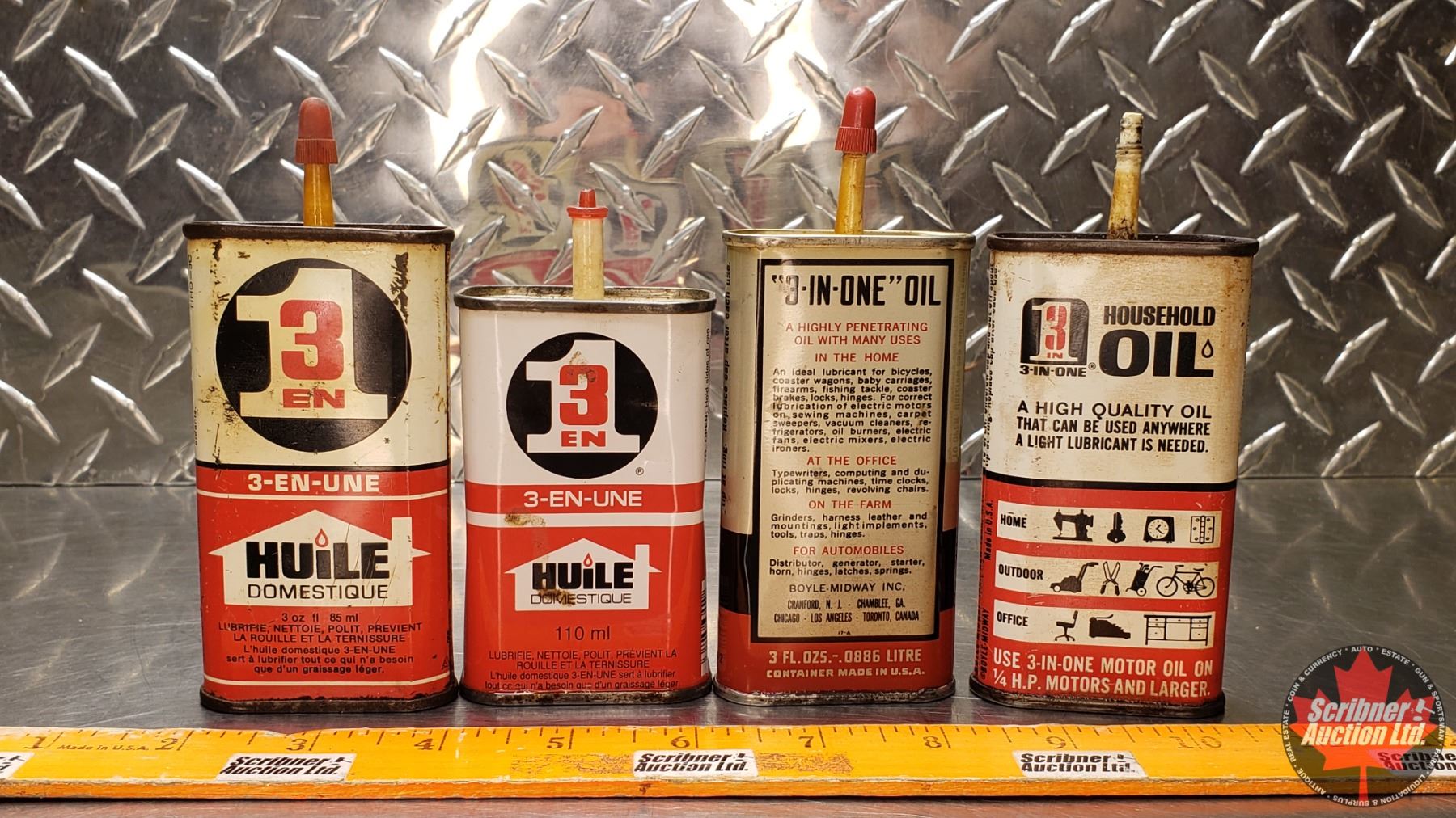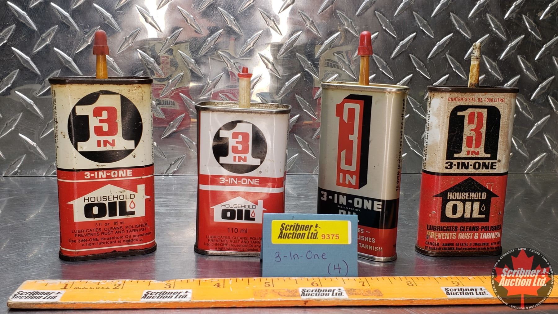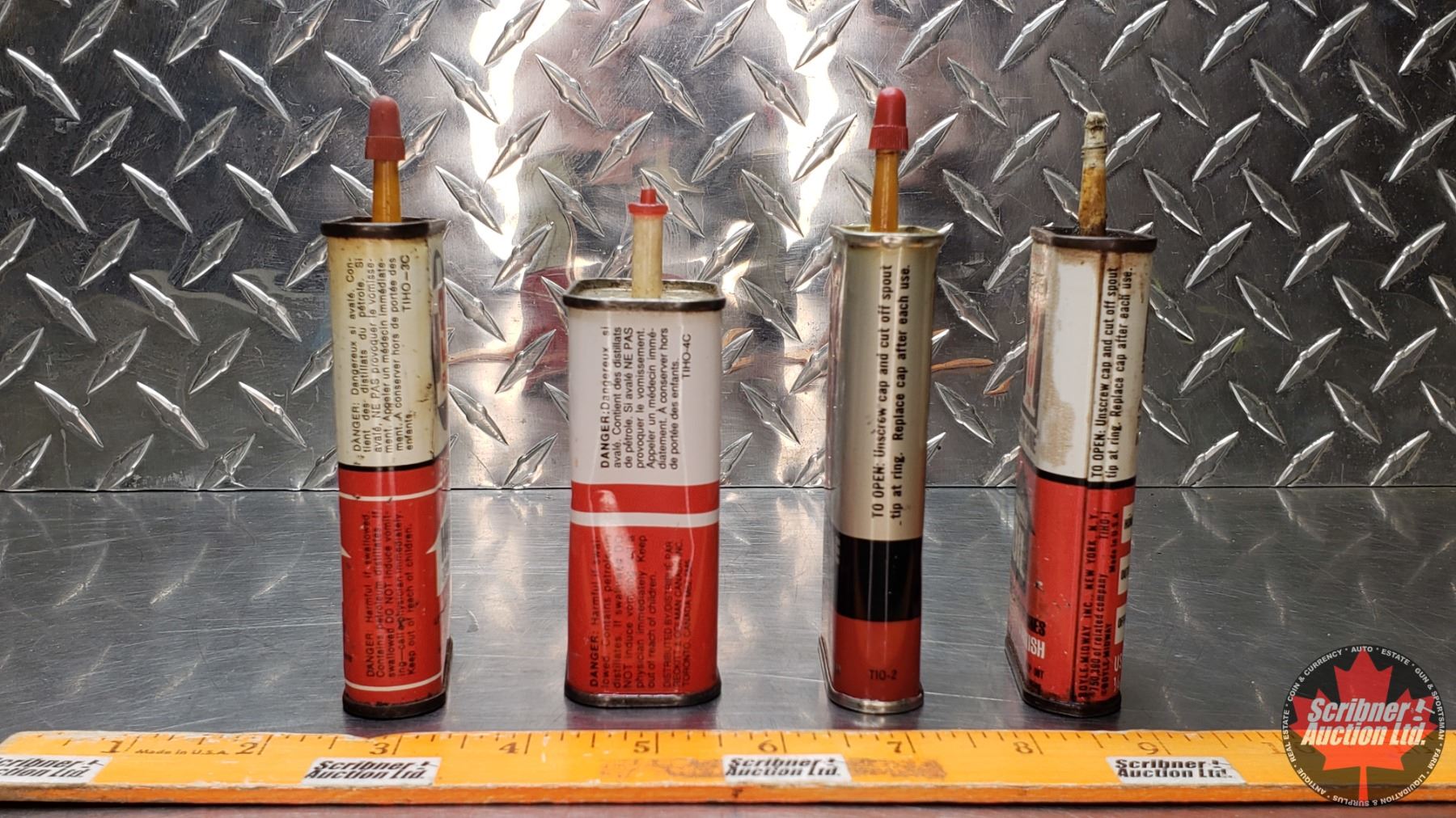 OIL TINS (4) : "3-IN-ONE" (One Partially Full) (5-1/2"H Tallest) (SEE PICS!)